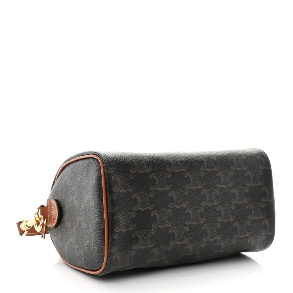 Celine Mini Vanity Case Tan Triomphe Canvas & Calfskin Leather Gold Hardware