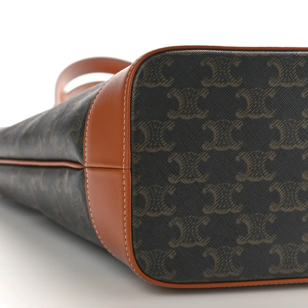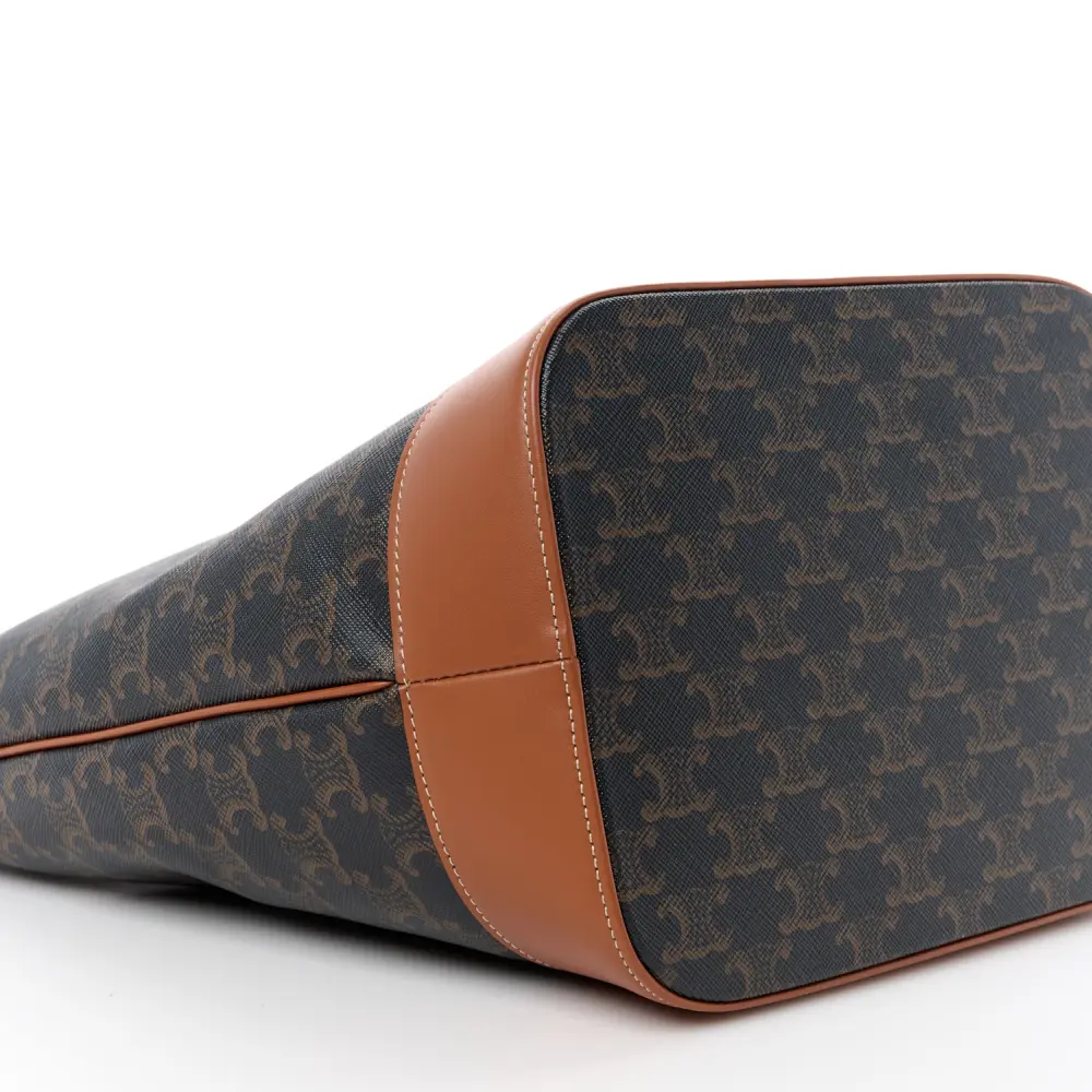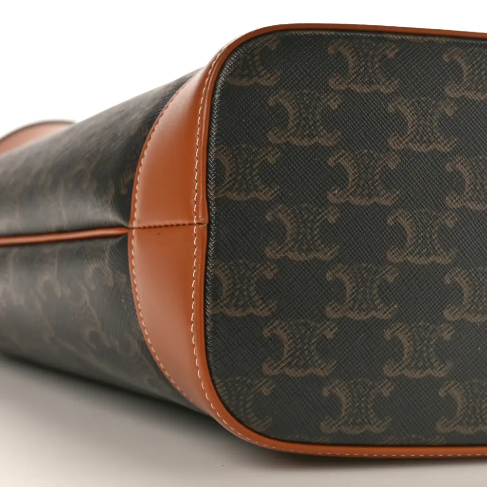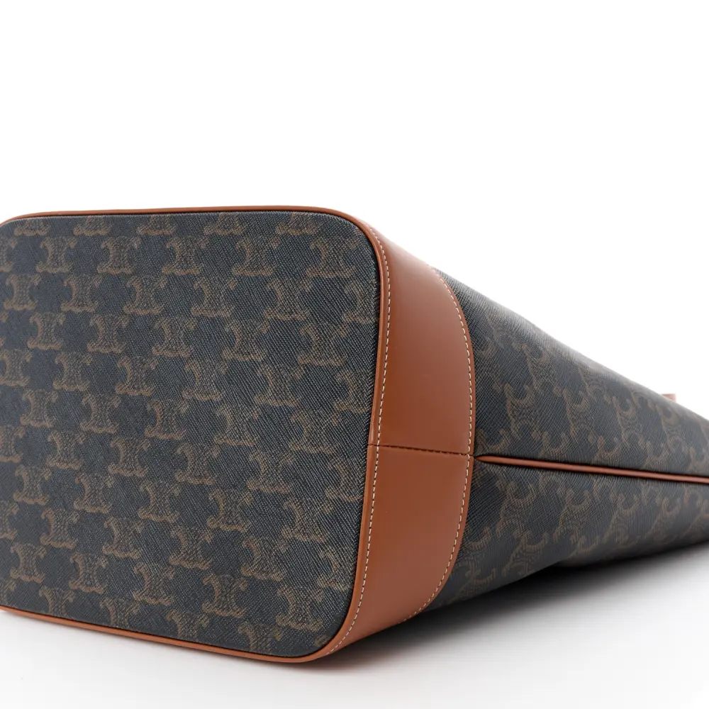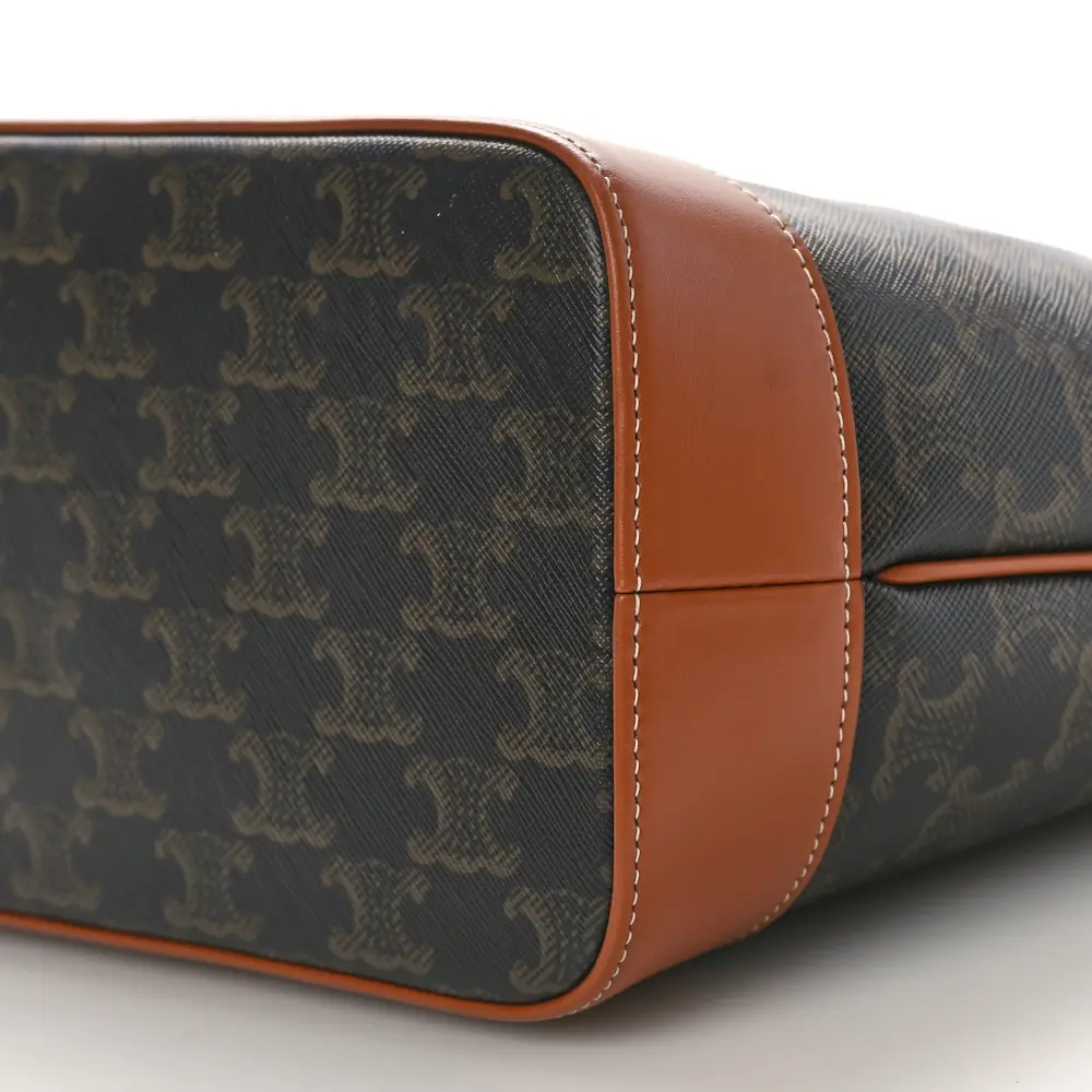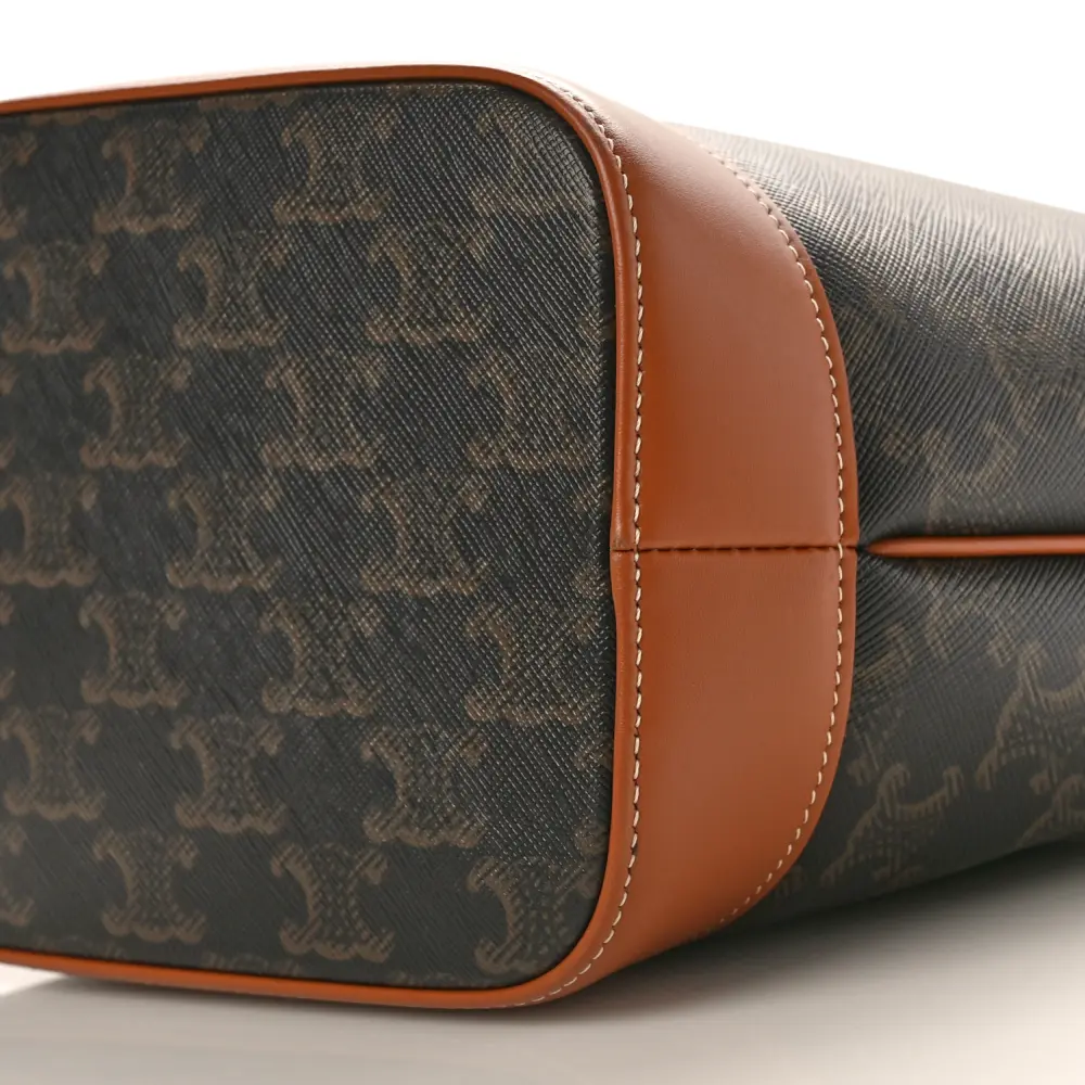 Celine Medium Bucket Bag Tan Triomphe Canvas & Calfskin Leather