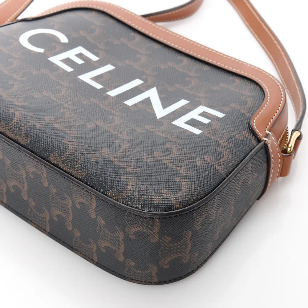 Celine Small Camera Bag Tan Triomphe Canvas Gold Hardware