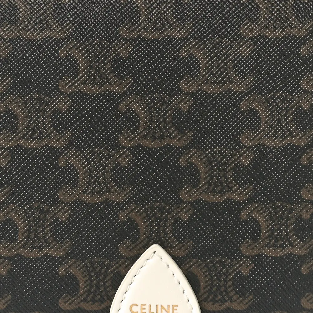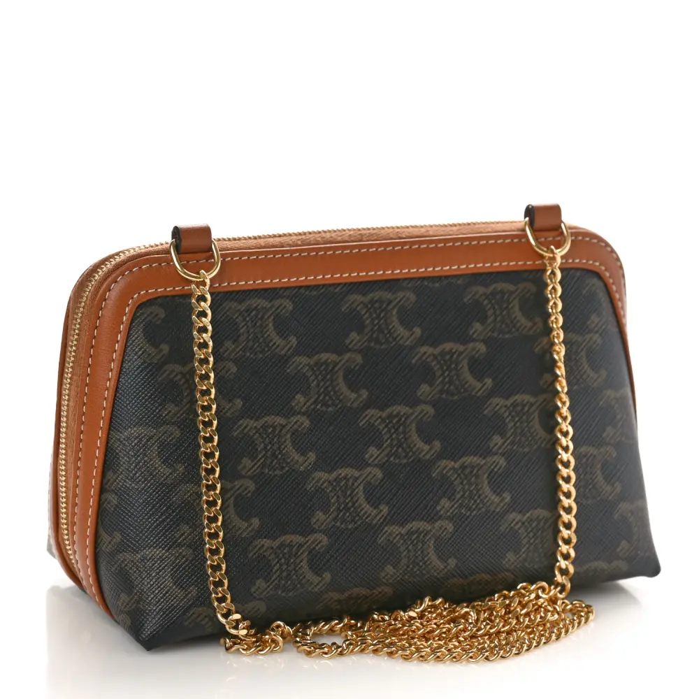 Celine Mini Clutch on Chain Tan Triomphe Canvas & Calfskin Leather Gold Hardware