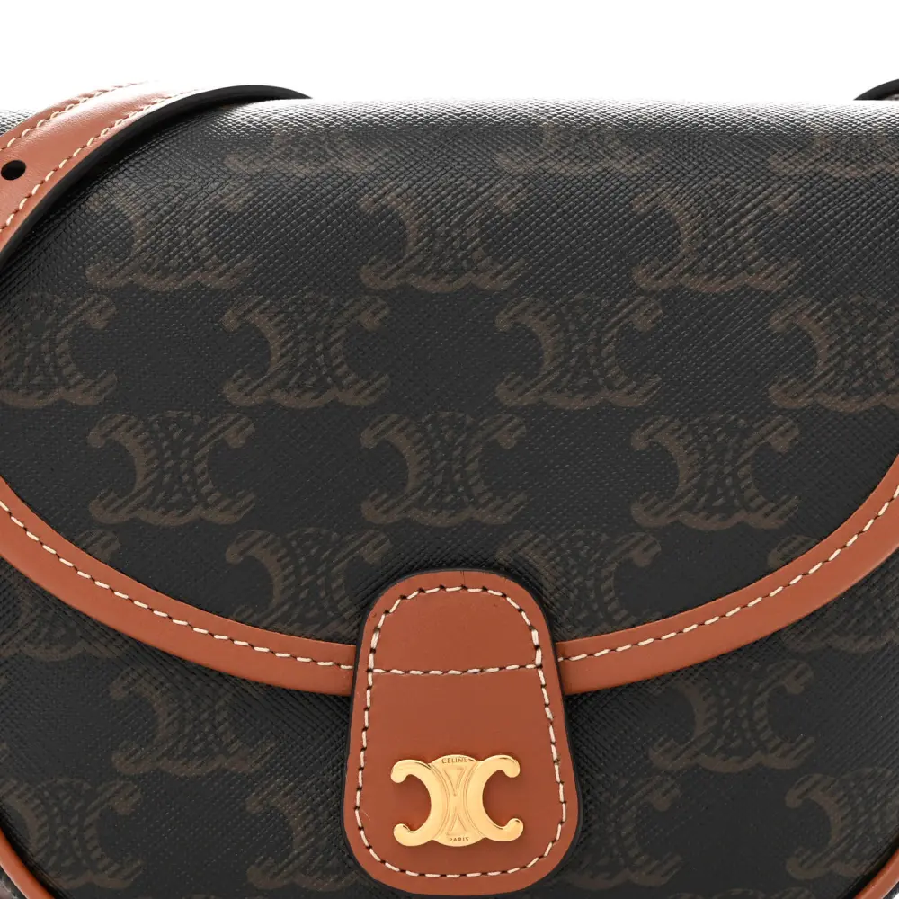 Celine Mini Besace Tan Canvas & Calfskin Leather Triomphe Gold Hardware