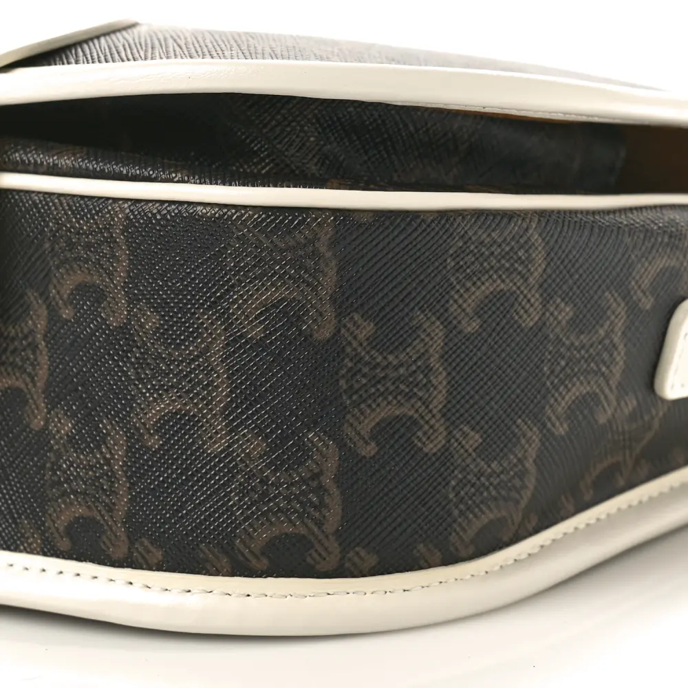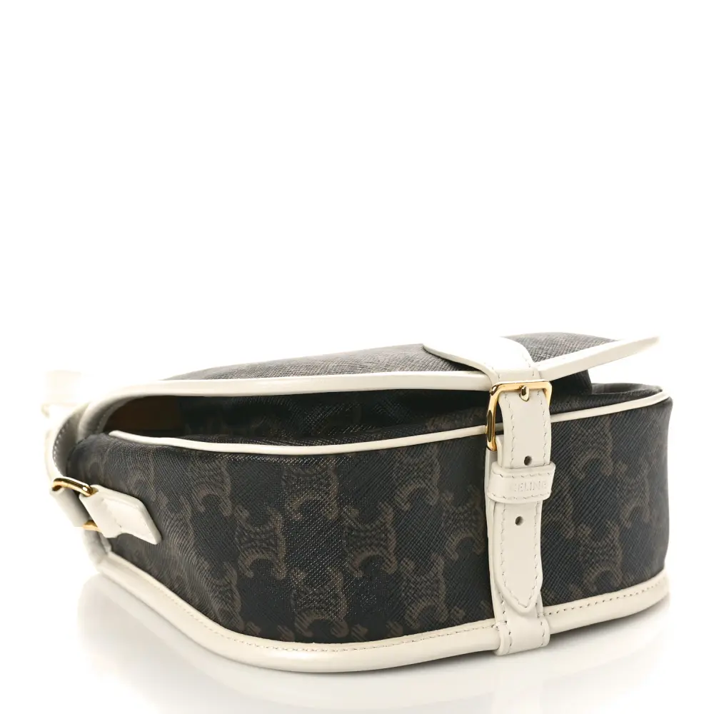 Celine Medium Folco Bag White Triomphe Canvas Gold Hardware