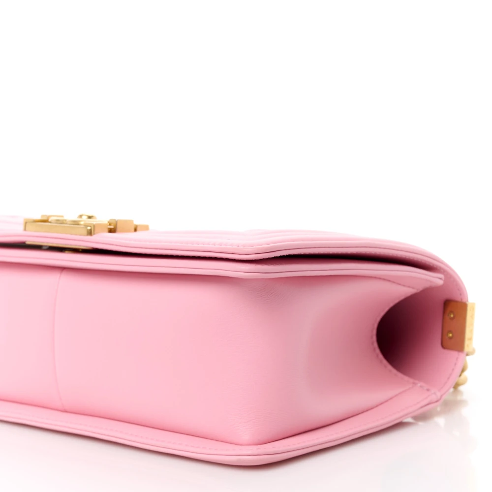 Chanel Boy Flap Medium Light Pink Quilted Calfskin Leather Aged Gold Hardware