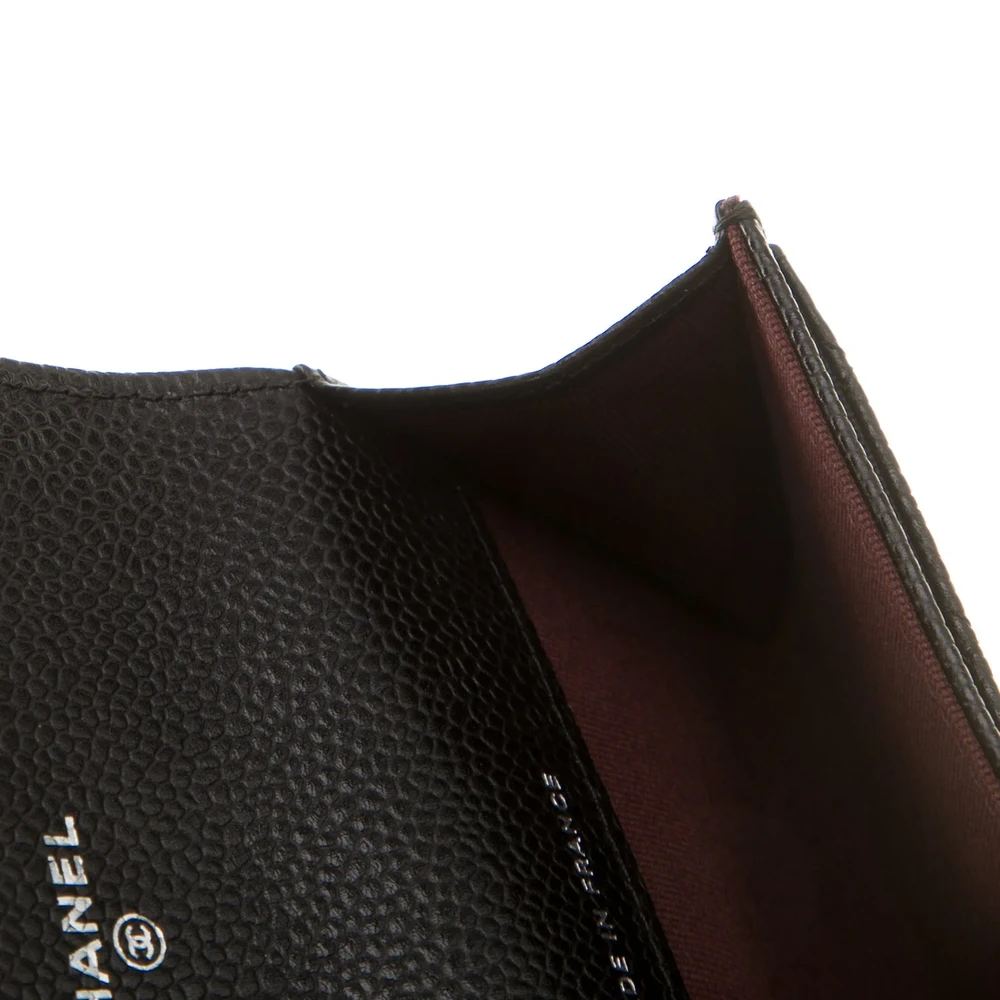 Chanel Small Interlocking CC Logo Wallet Black Quilted Caviar Leather Silver Hardware