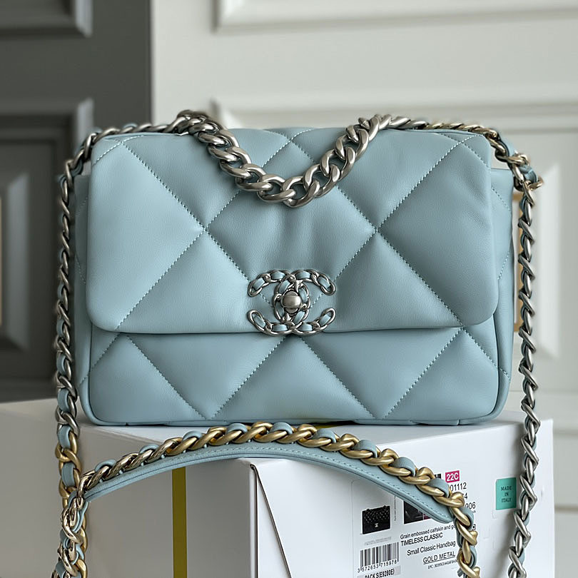 Chanel 19 Bag Light Blue Olive Green Grey Blue Navy Blue Yellow Caramel 26cm