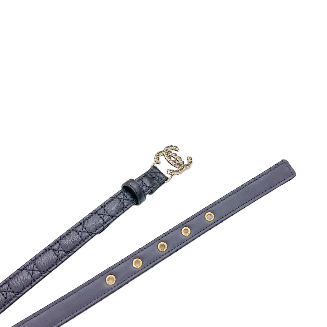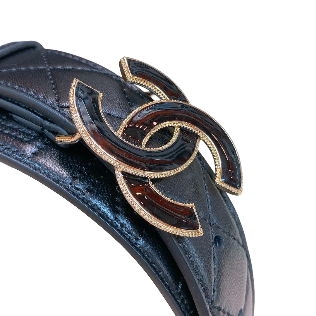 Chanel Women's CC Belt In Black/White Diamond Stitching Calfskin With Gold Hardware 30mm