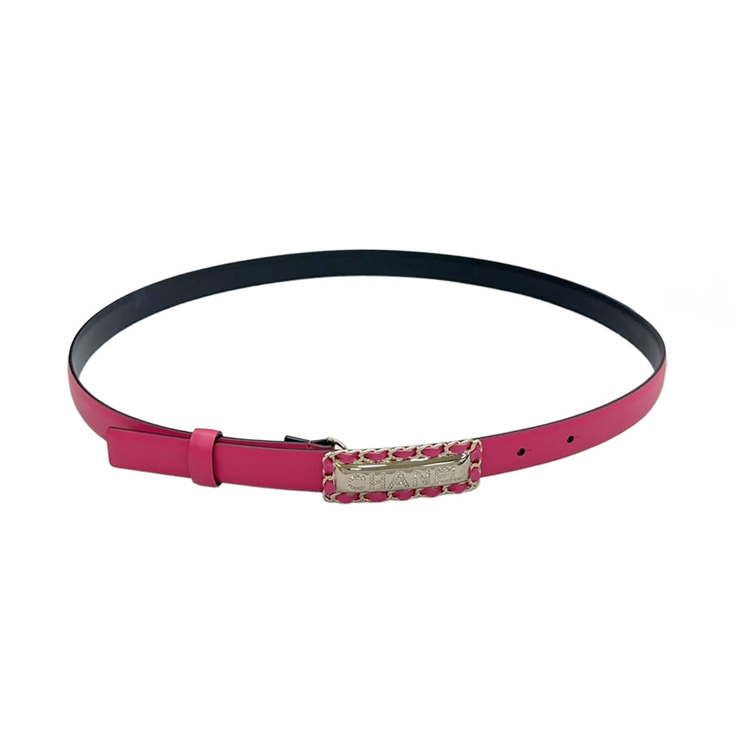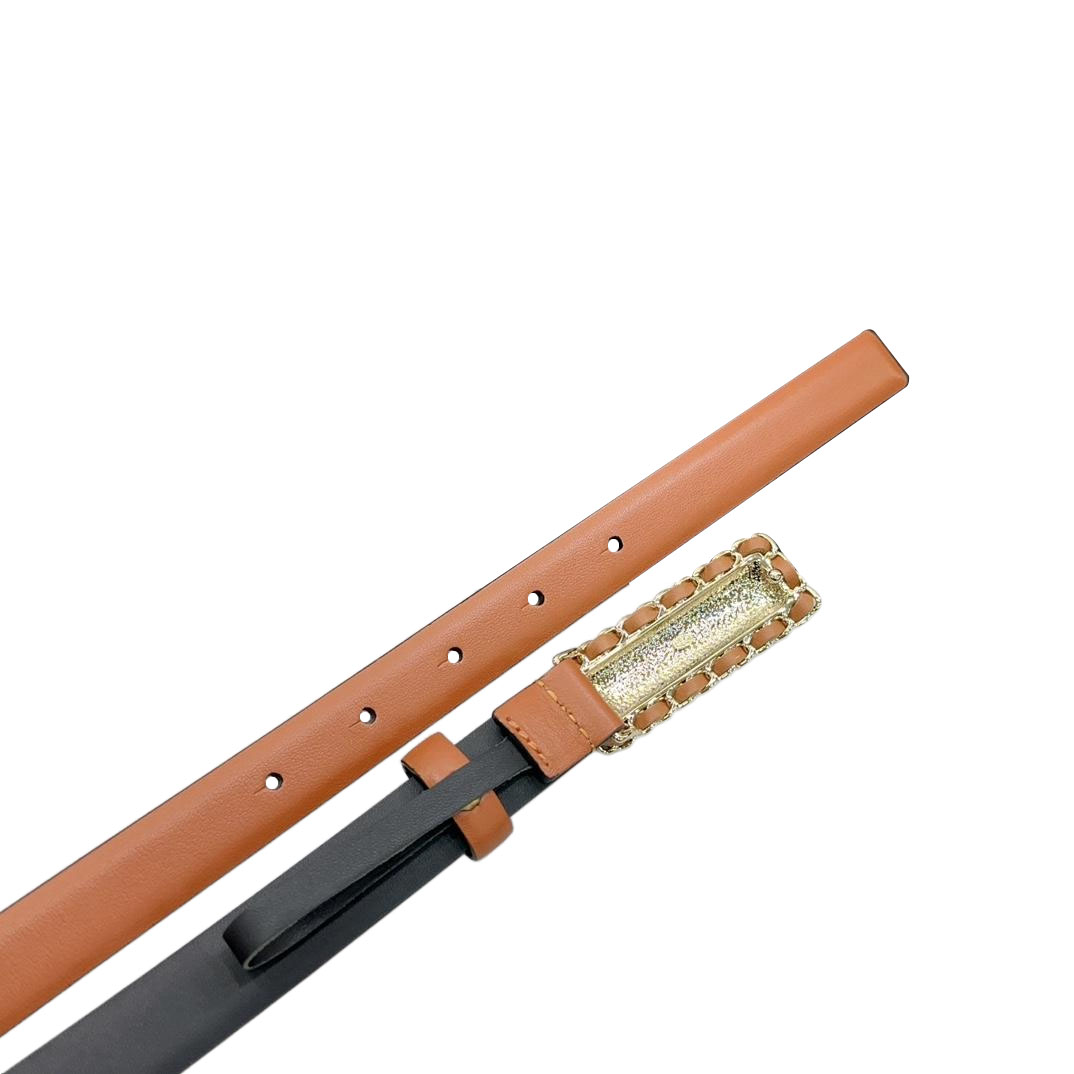 Chanel Women's Rectangled Buckle Thin Belt In Brown/Arrowroot/Champagne Gold/Pink/Pale Pink/Red/Black/White Calfskin With Gold/Silver Hardware 20mm