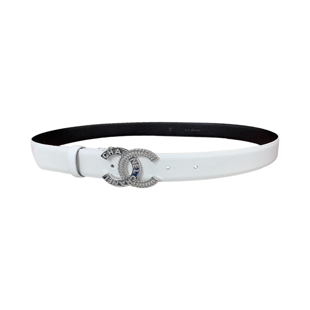 Chanel Women's CC Belt In Black/White/Beige/Red Lambskin With Gold/Silver Hardware 30mm