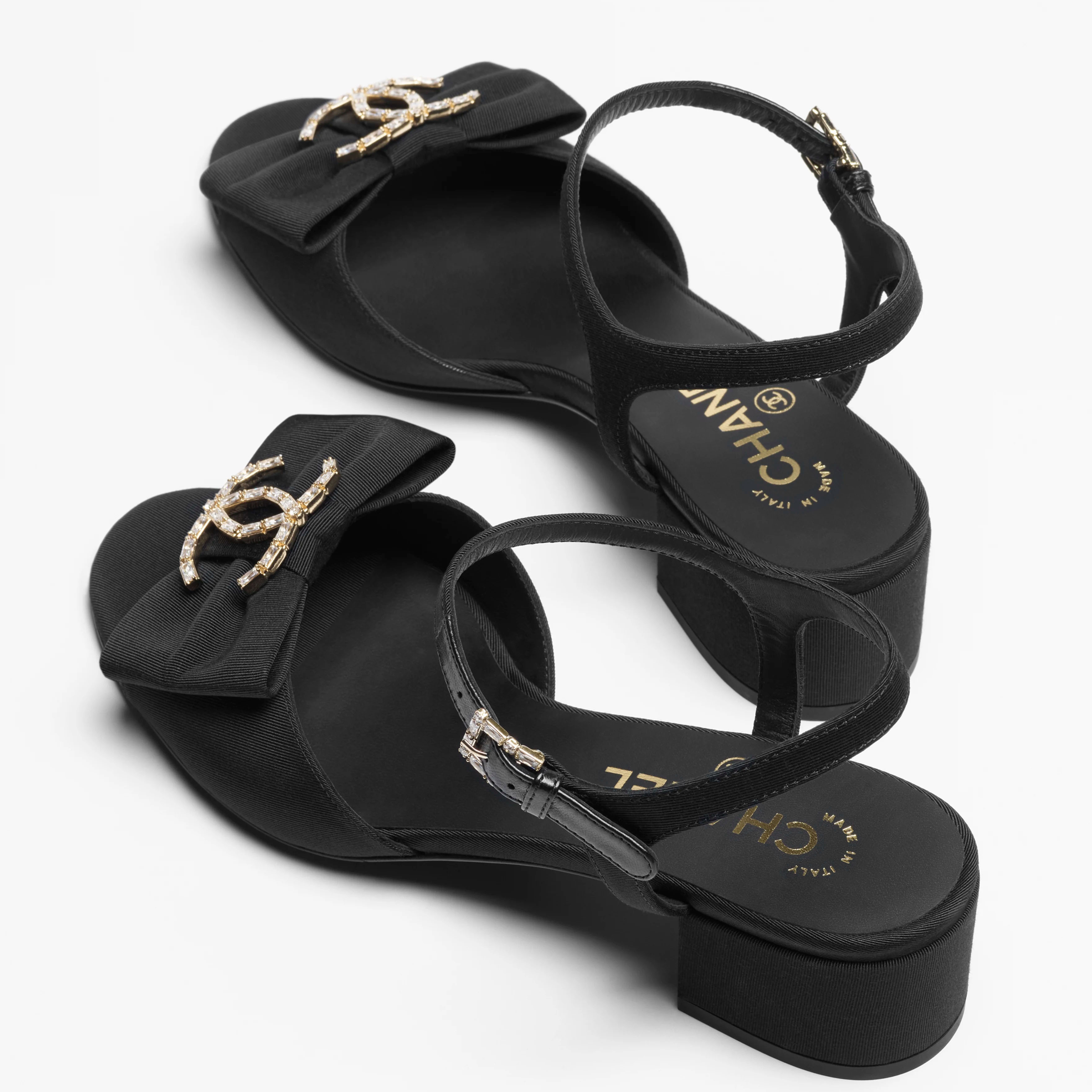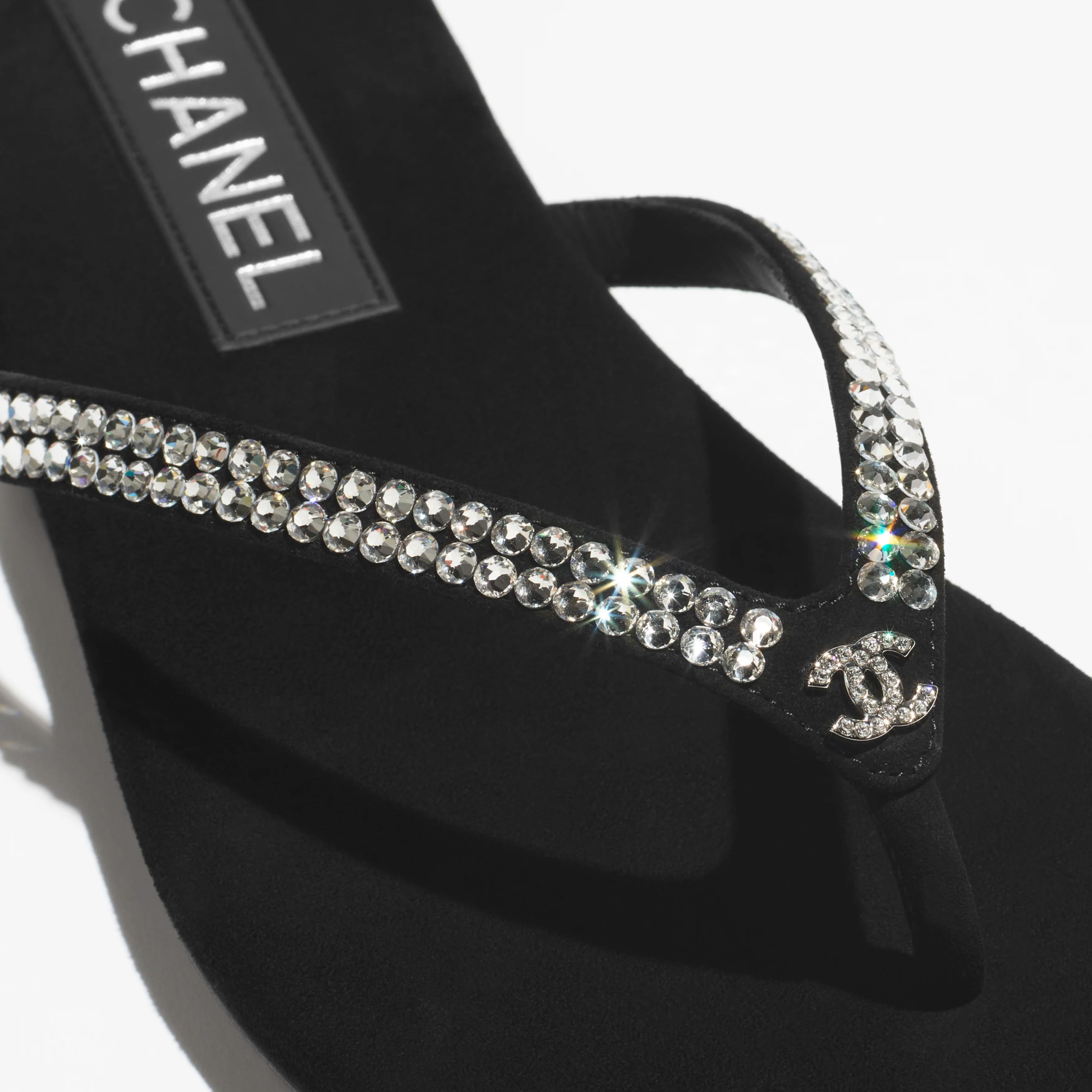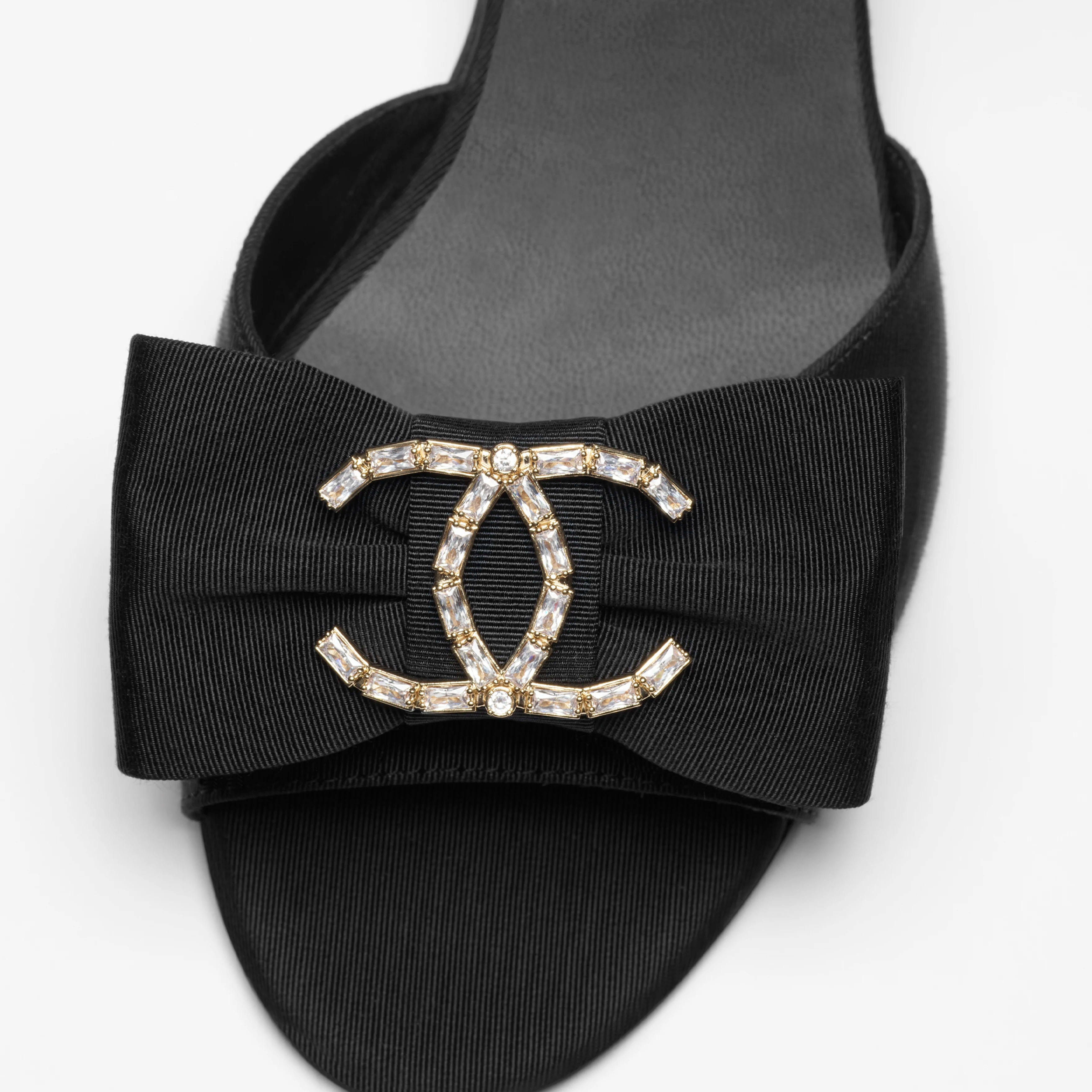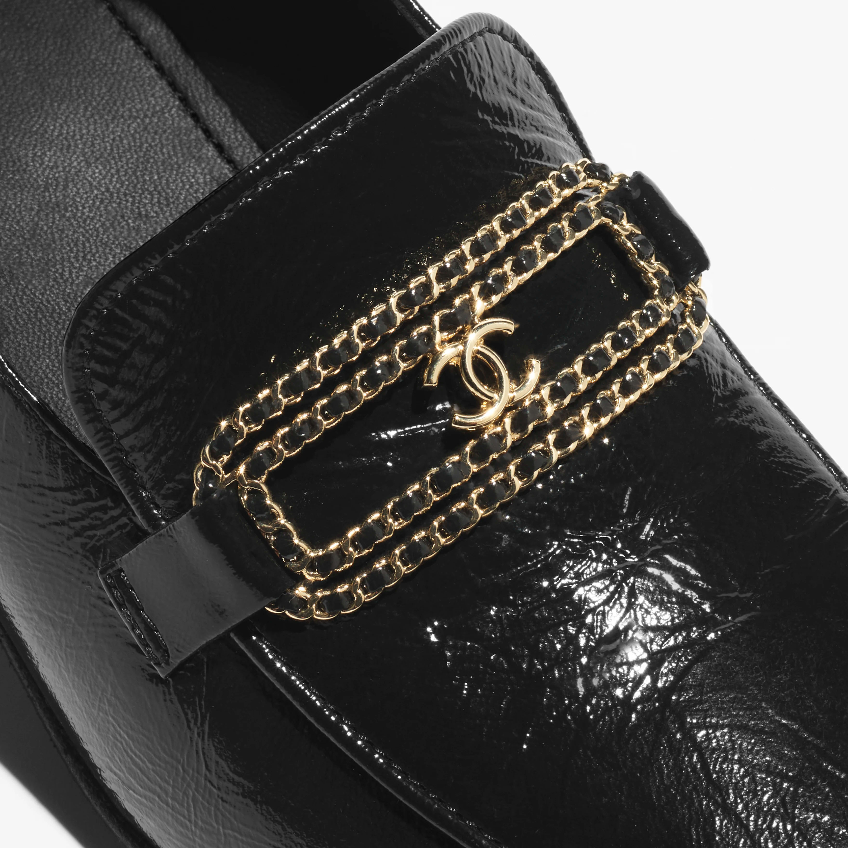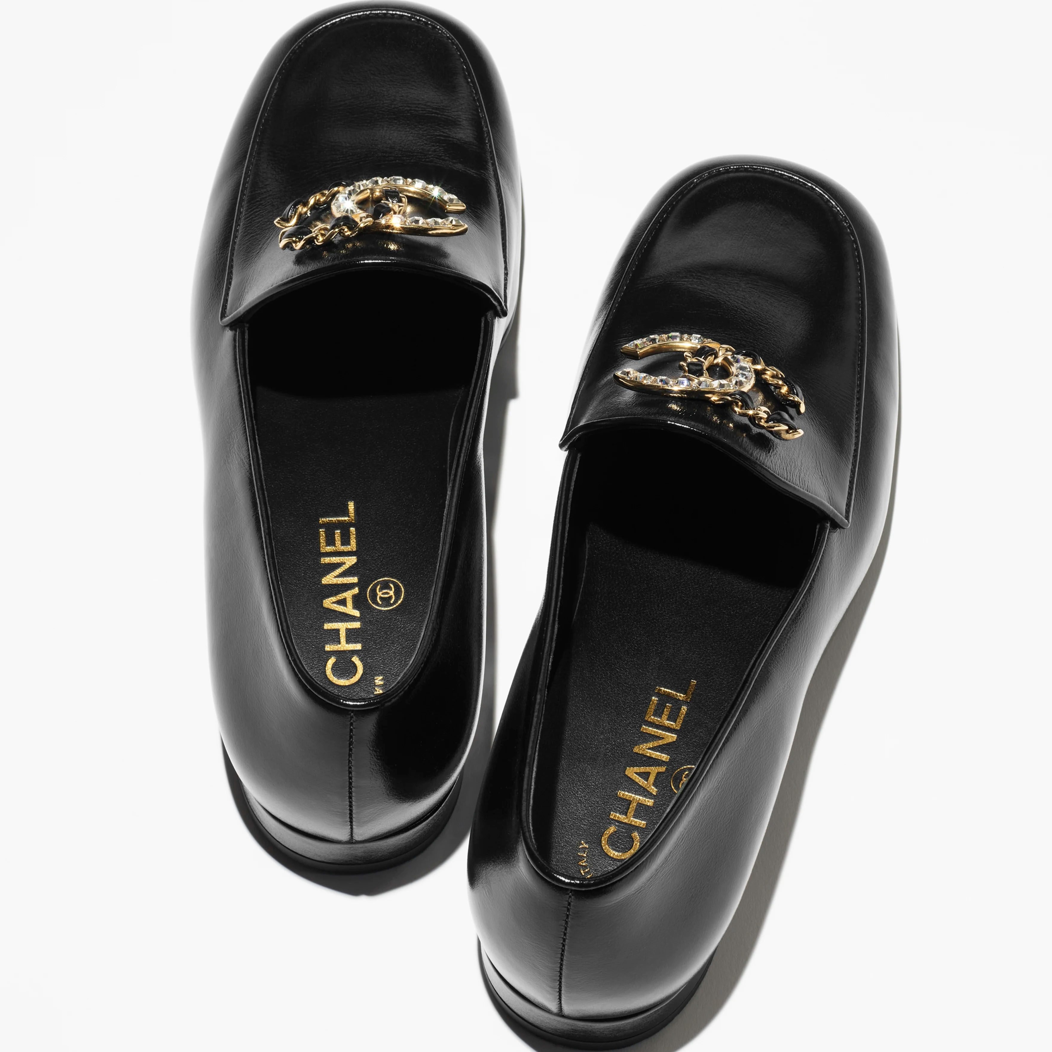 Chanel Black glossy calfskin, rhinestone and metal Loafers