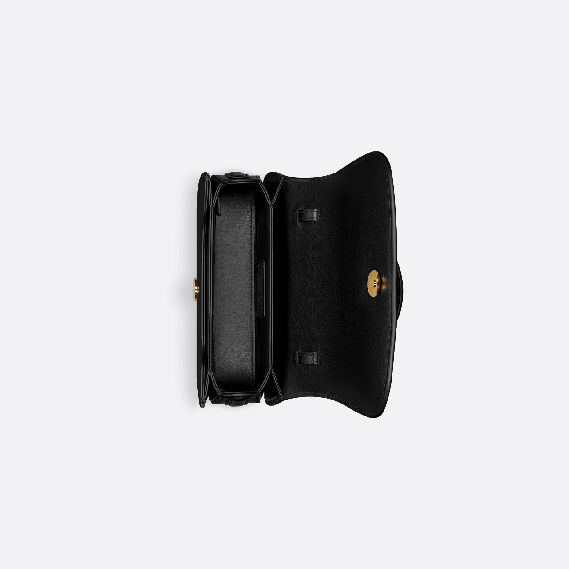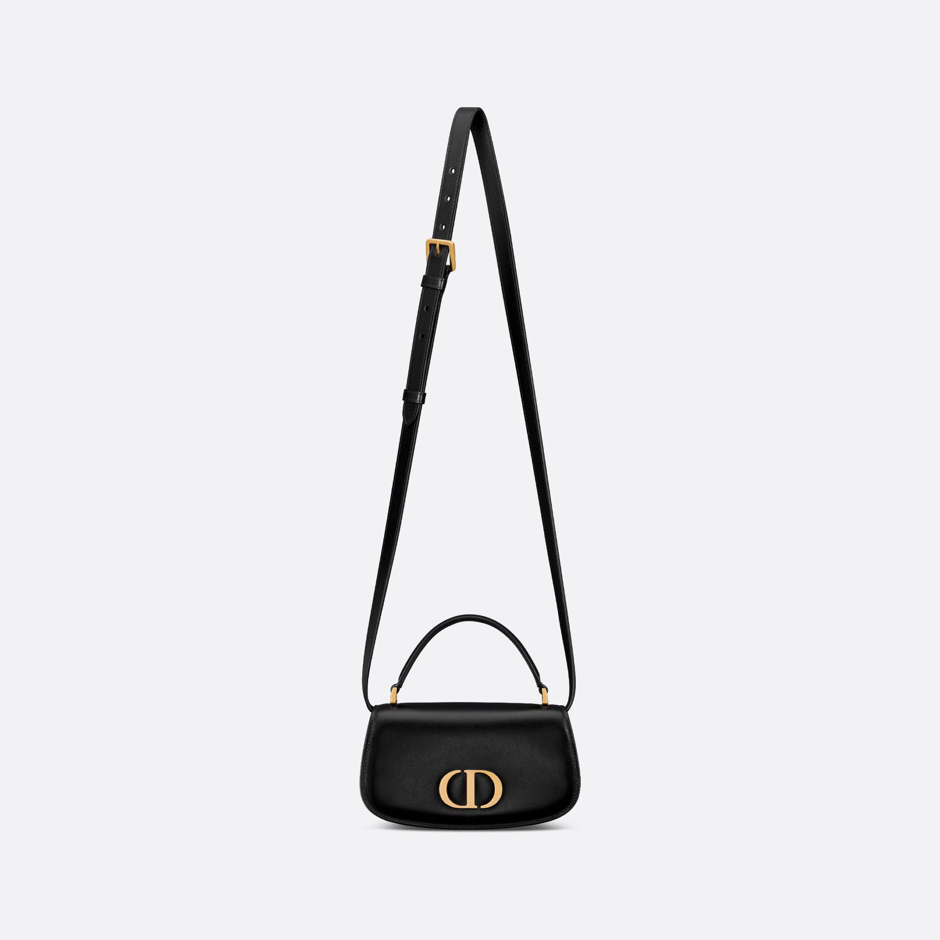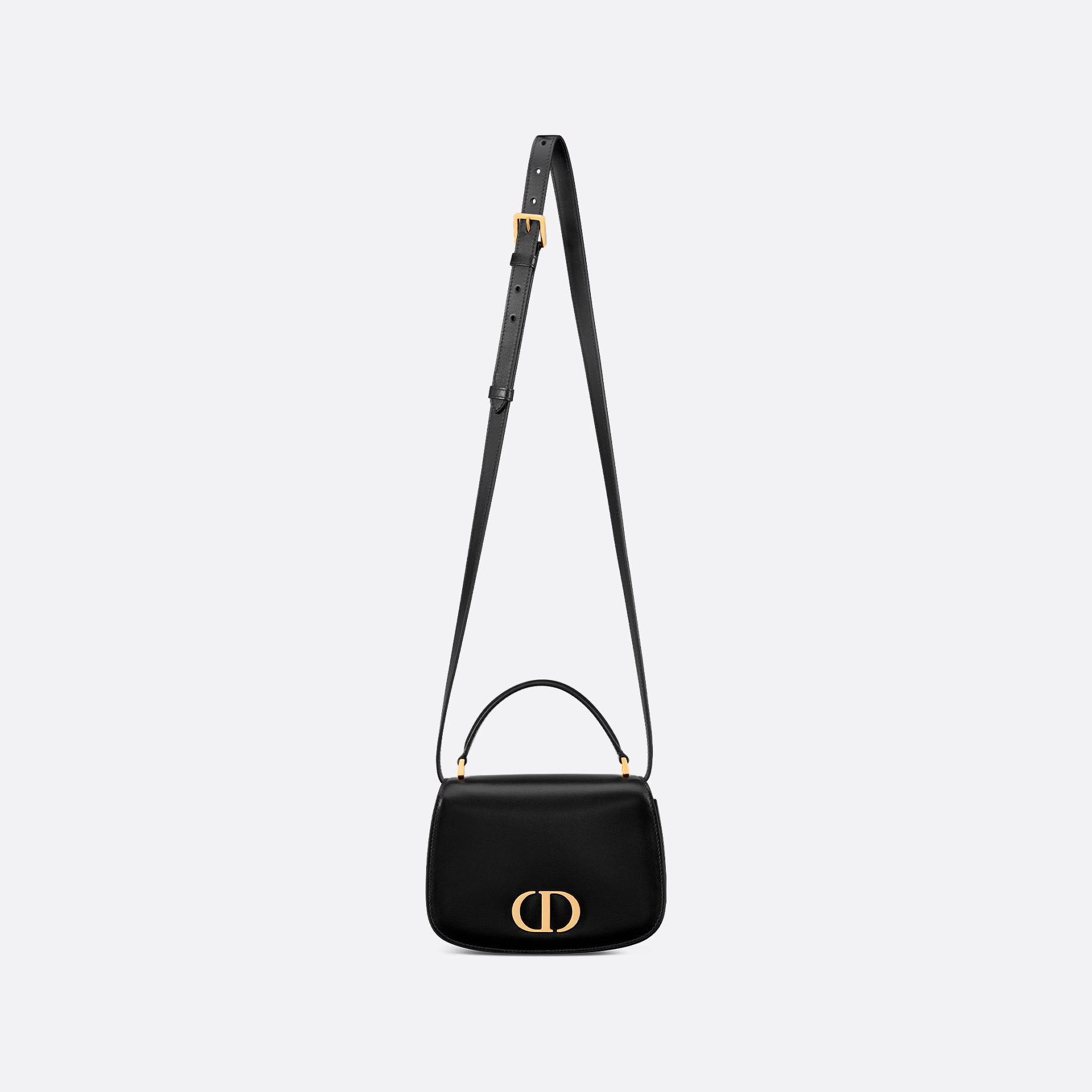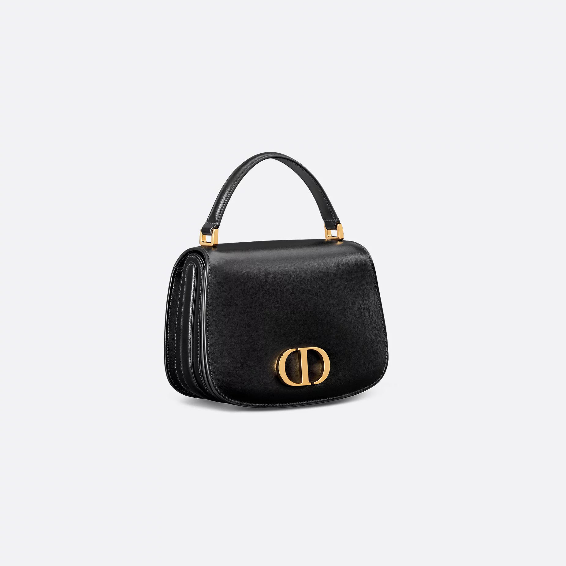 Dior Small 30 Montaigne Avenue Top Handle Bag In Black Ribbed Calfskin With Gold Hardware