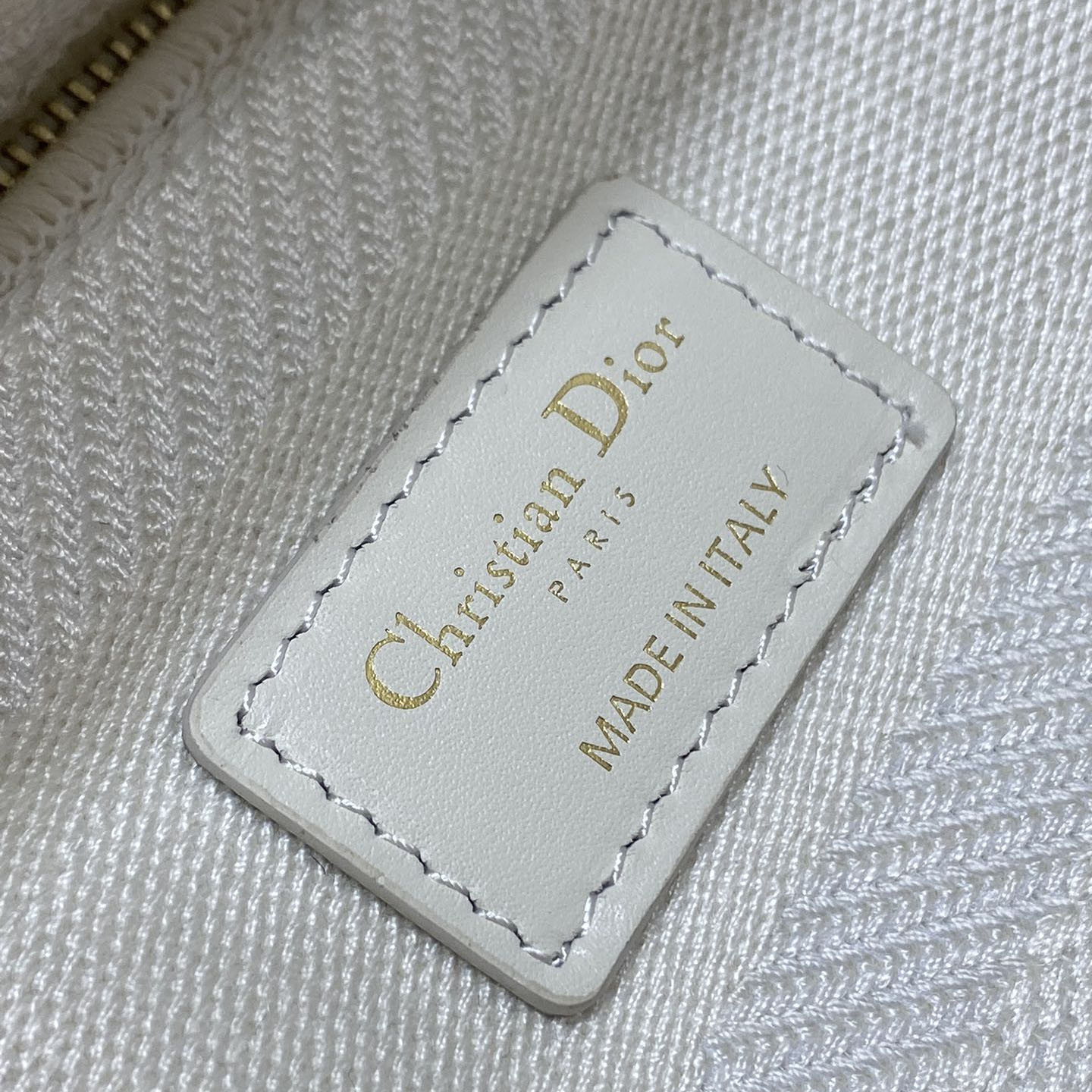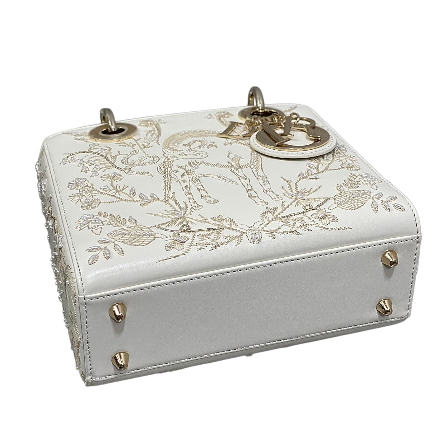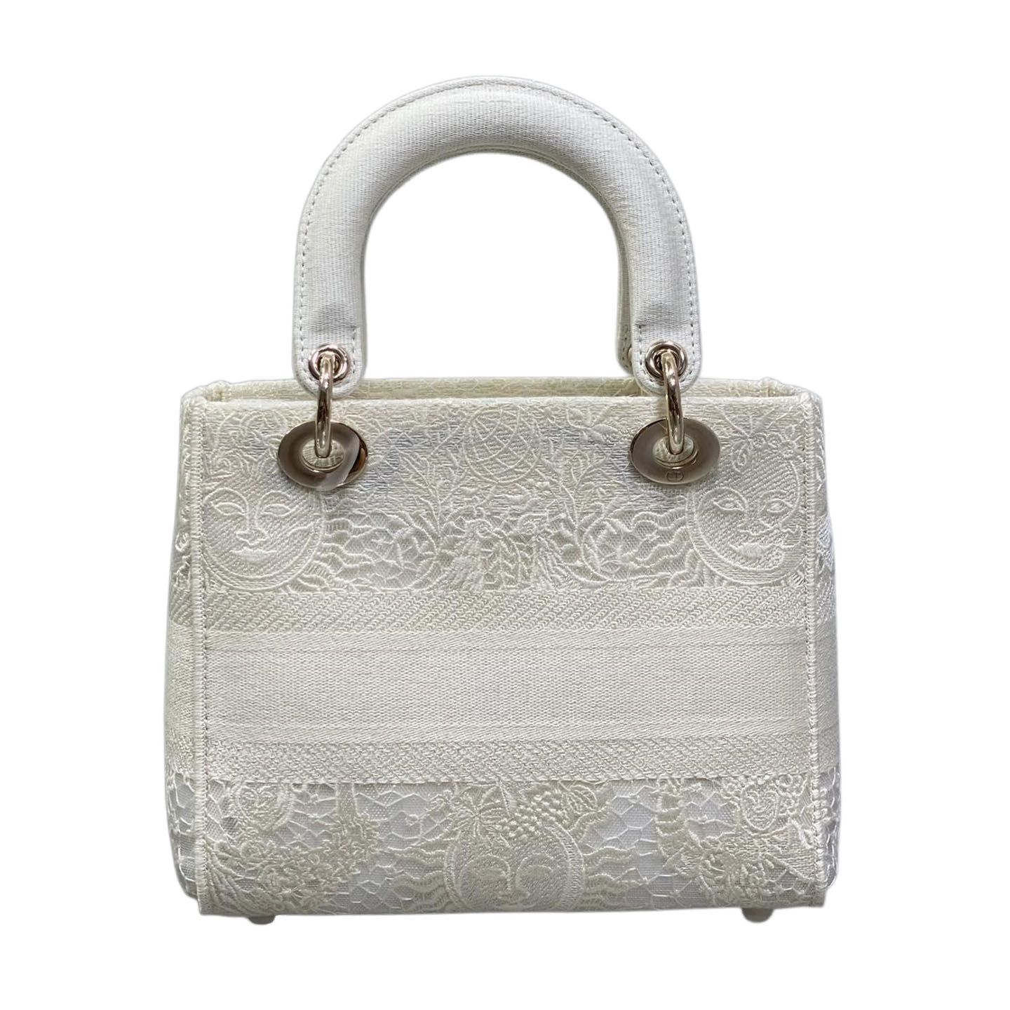 Dior Small Lady Dior Bag In White Calfskin Leather and White Satin Embroidered with Beads Light Gold Hardware
