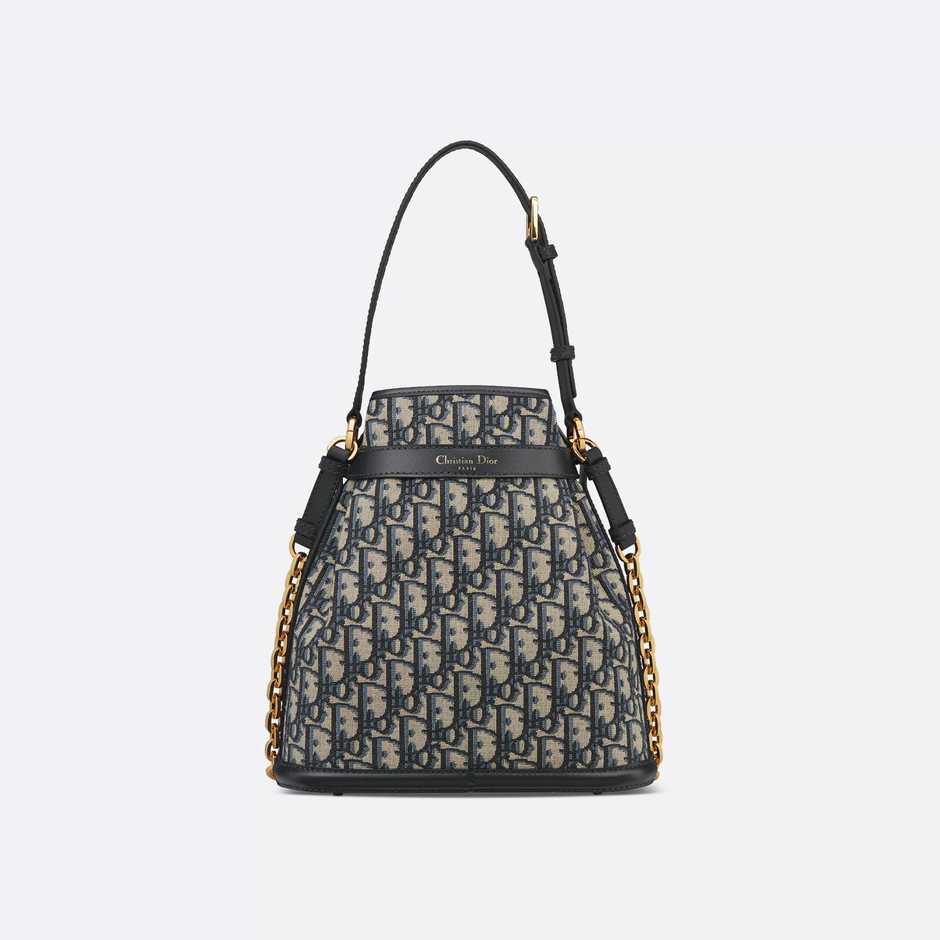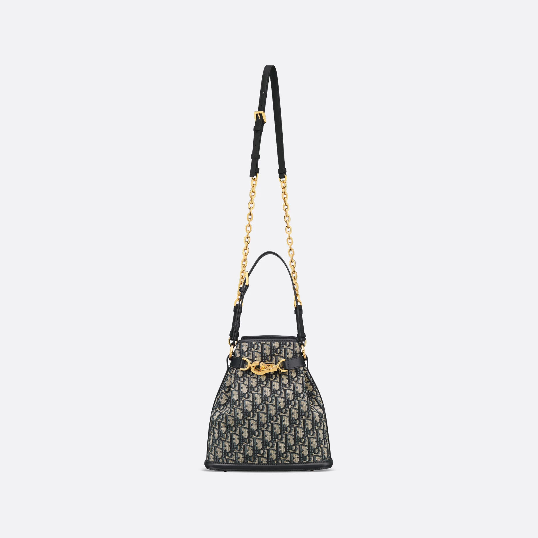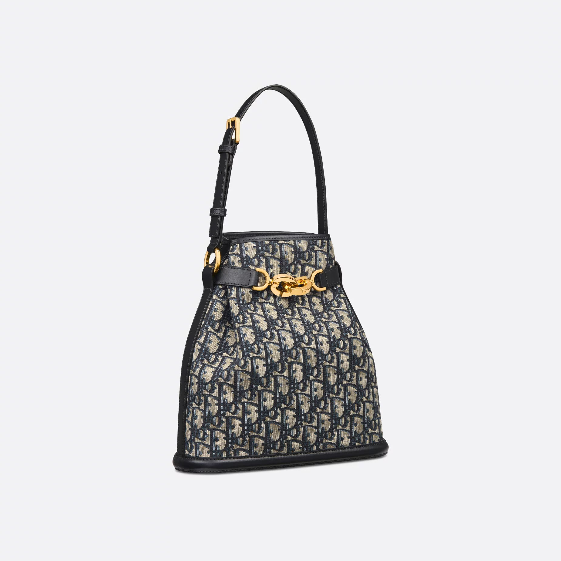 Dior Medium C'est Dior Bag In Black CD-Embossed Calfskin/Blue Dior Oblique Jacquard With Gold Hardware