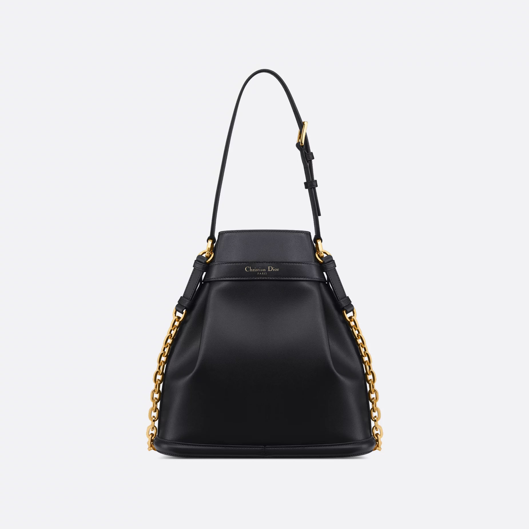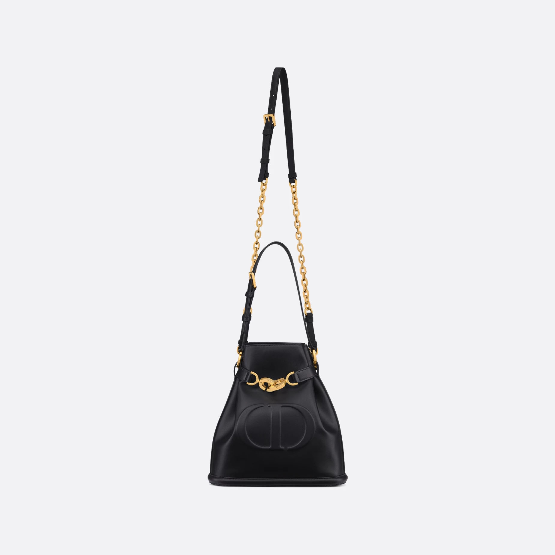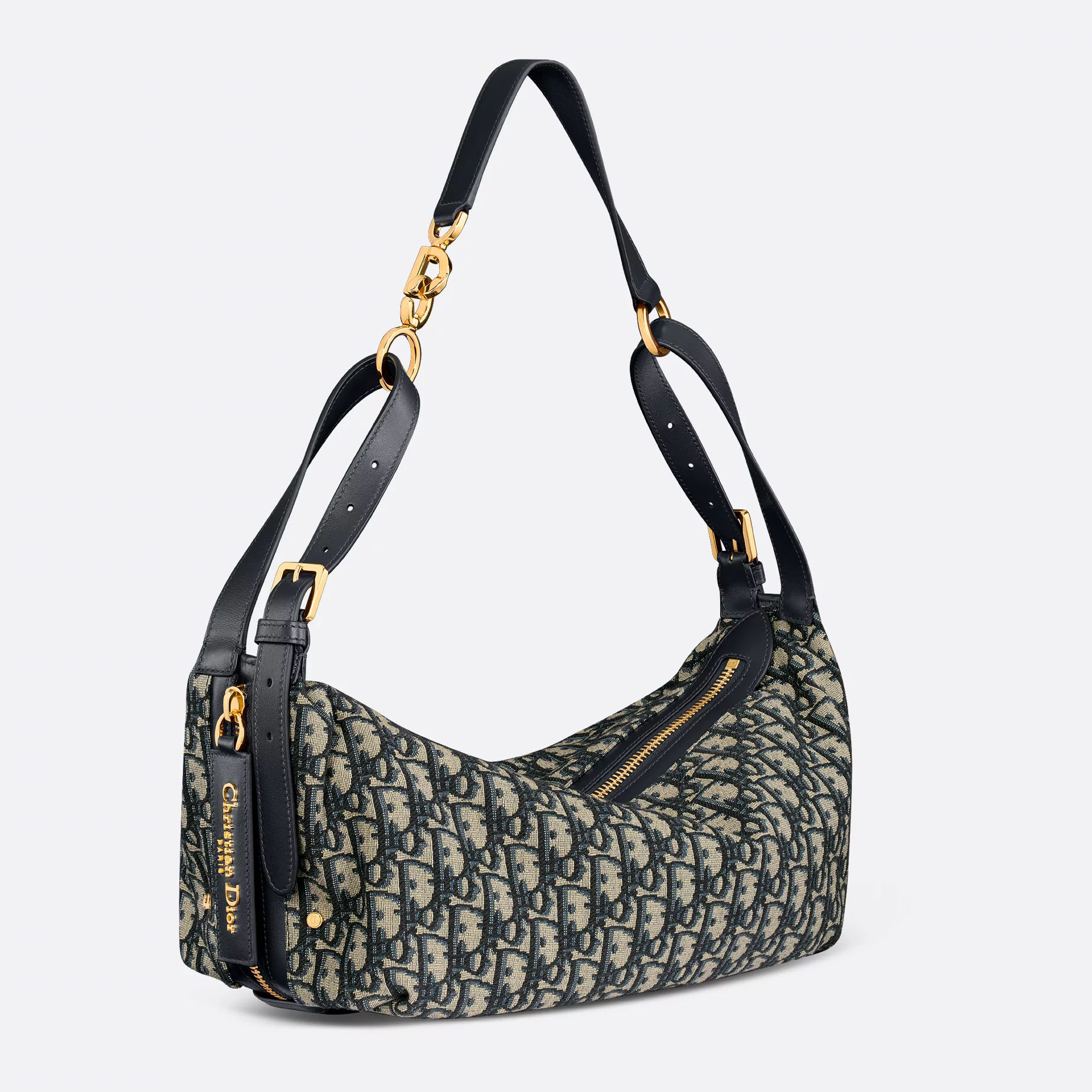 Dior Medium C'est Dior Bag In Black CD-Embossed Calfskin/Blue Dior Oblique Jacquard With Gold Hardware
