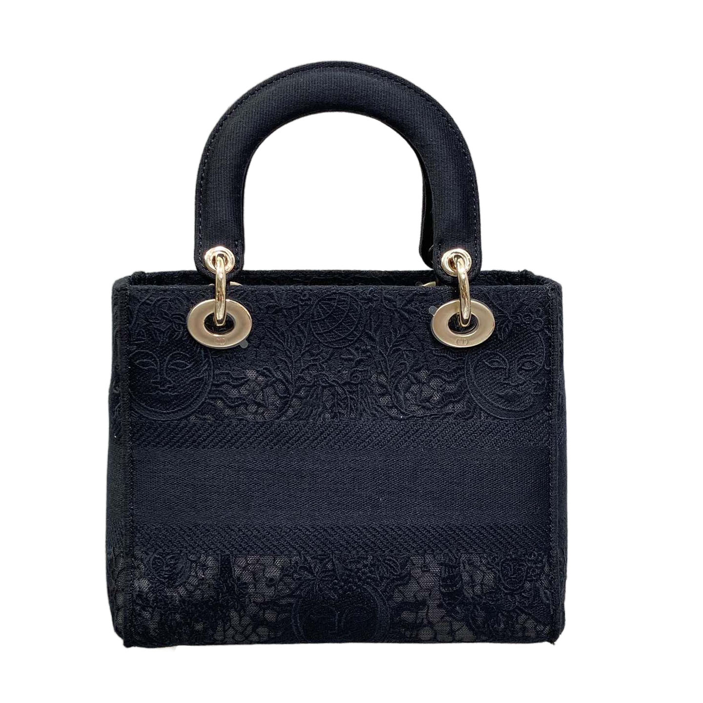 Dior Medium Lady D-Lite In White/Black Lace Embroidered Canvas Gold Hardware