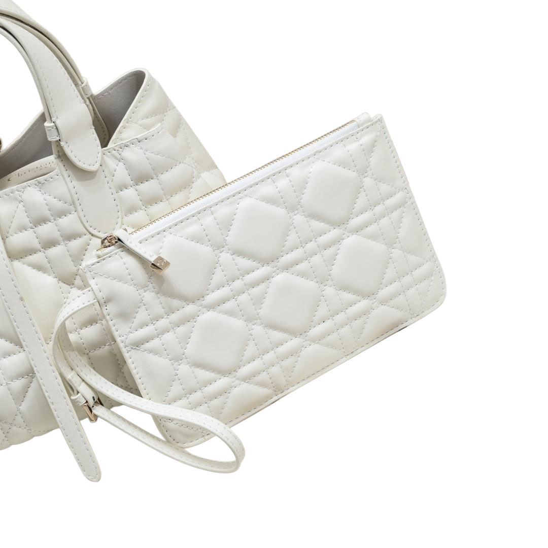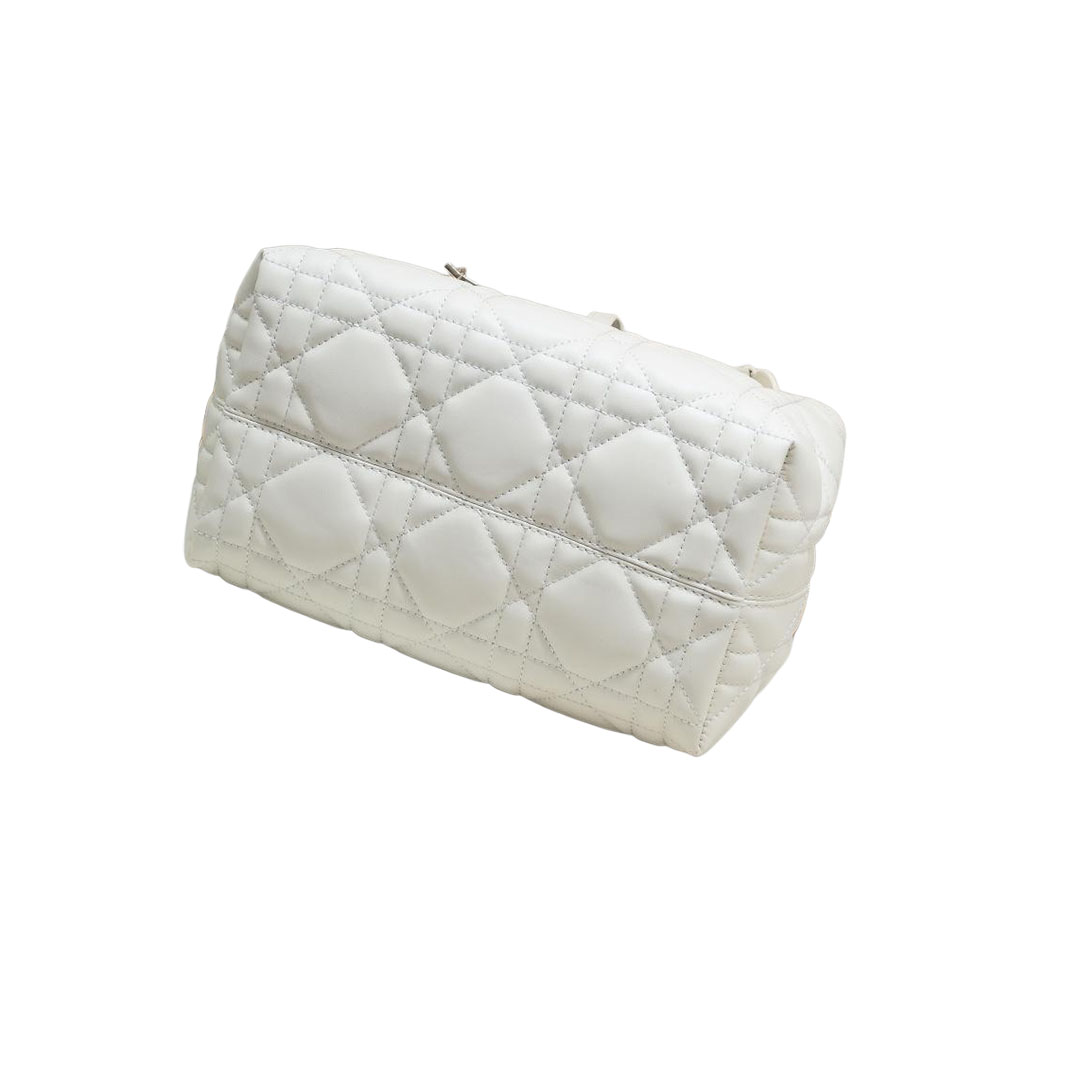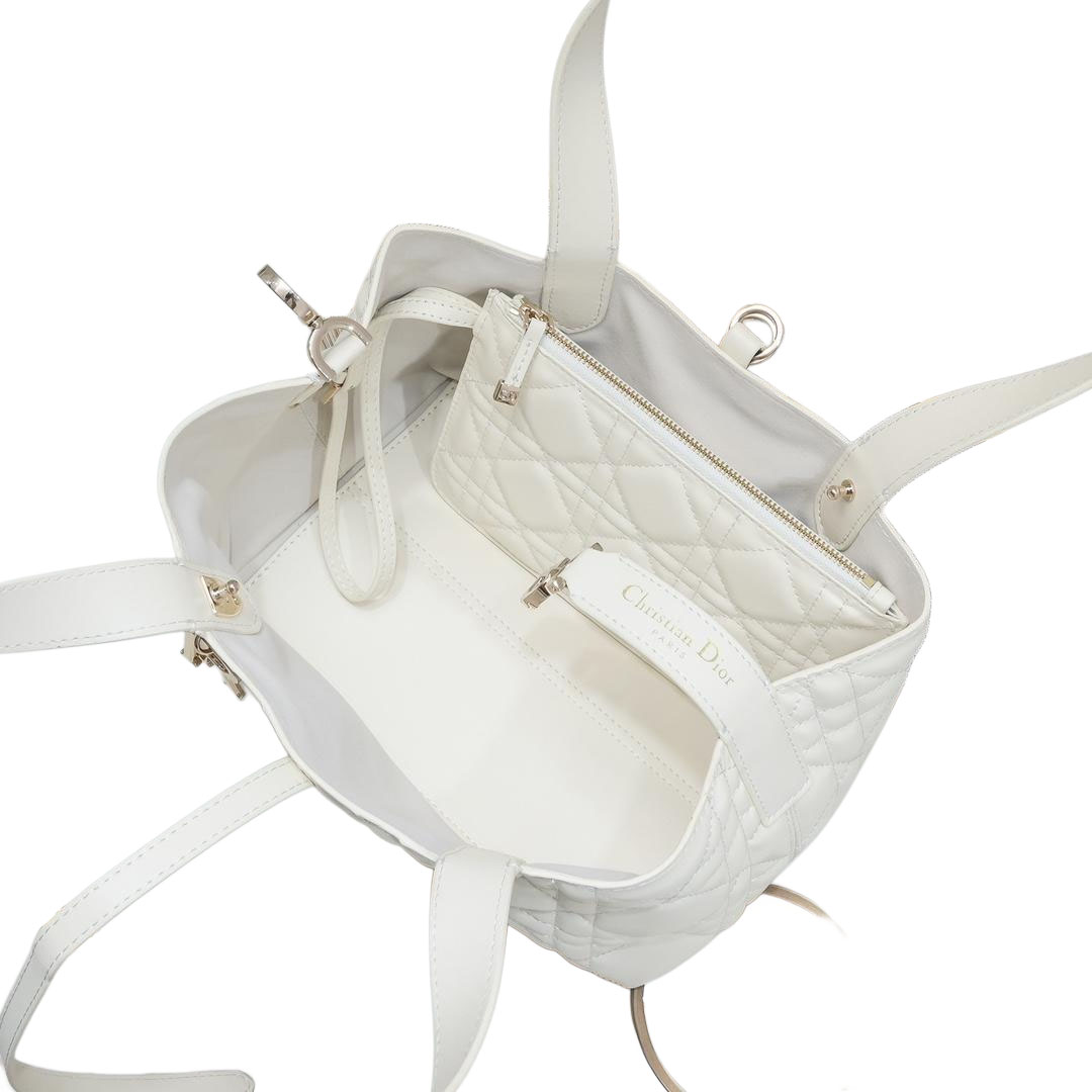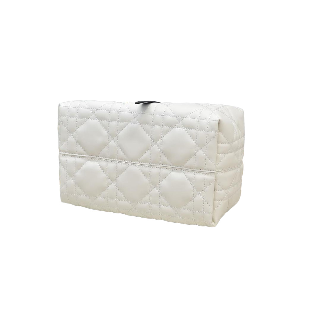 Dior Small Dior Toujours Bag In White Macrocannage Calfskin With Light Gold Hardware