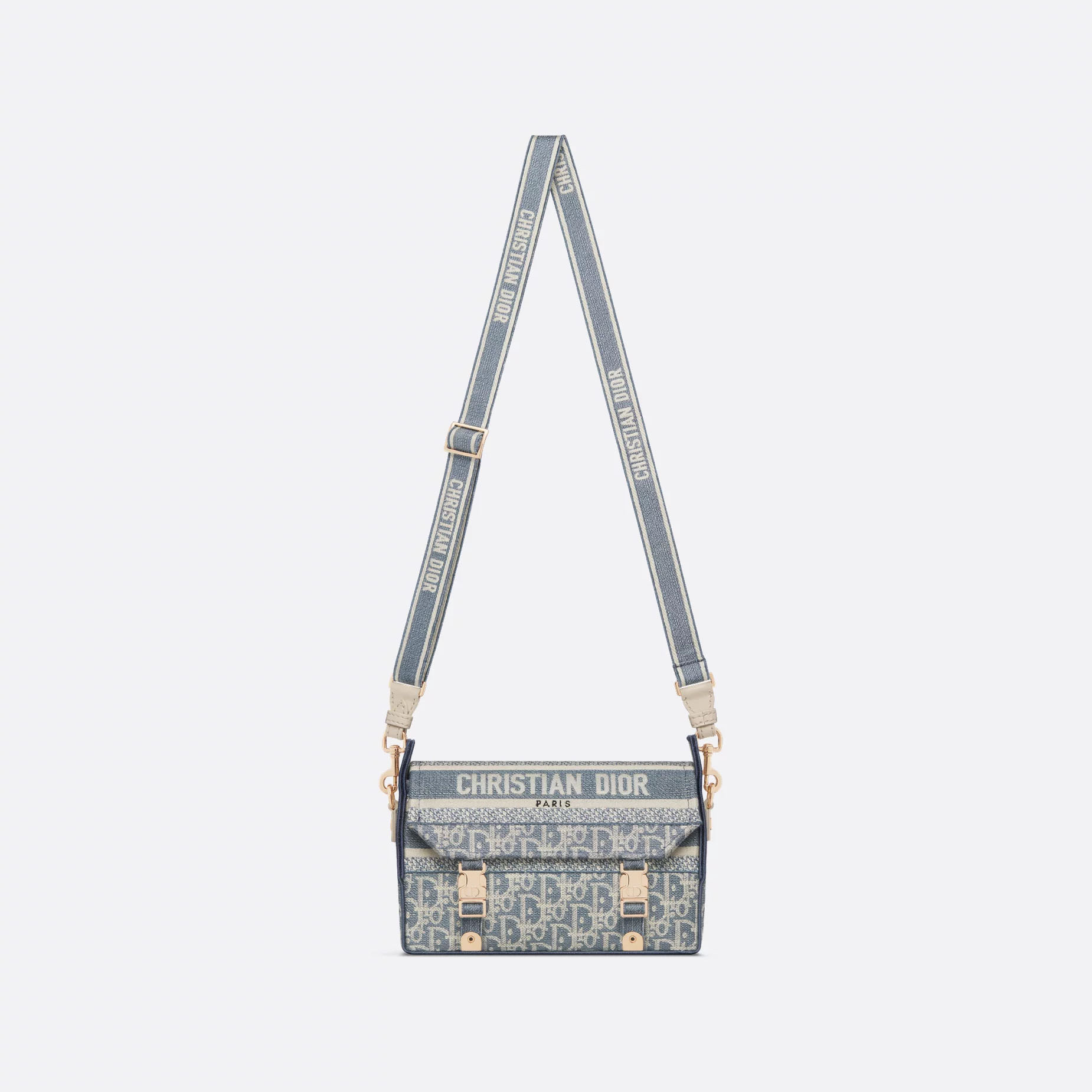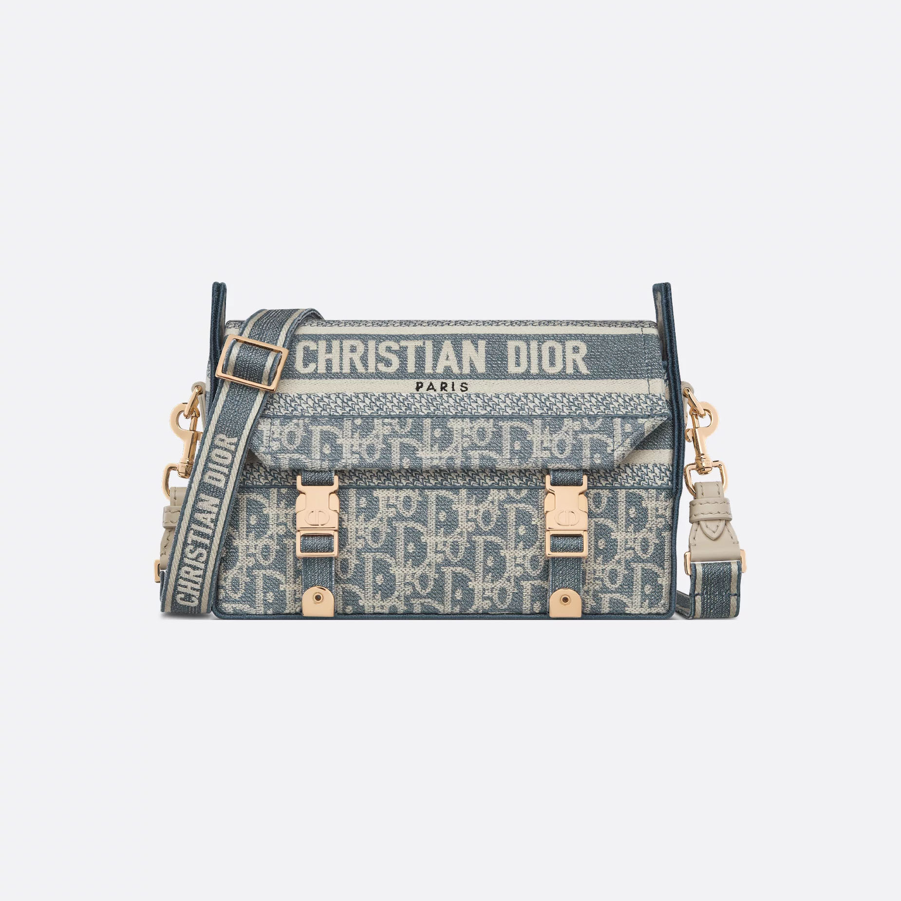 Dior Small Diorcamp Bag In Blue Dior Oblique Embroidery/Blue Dior Oblique Chambray-Effect Embroidery
