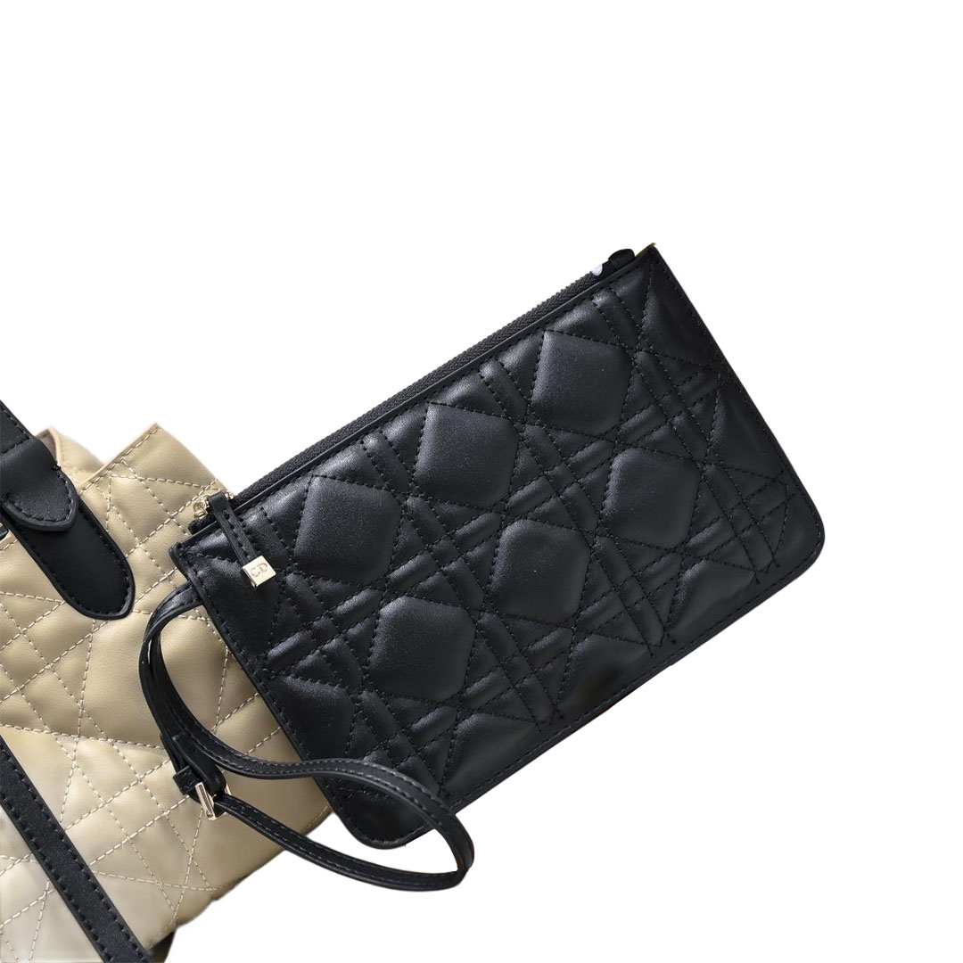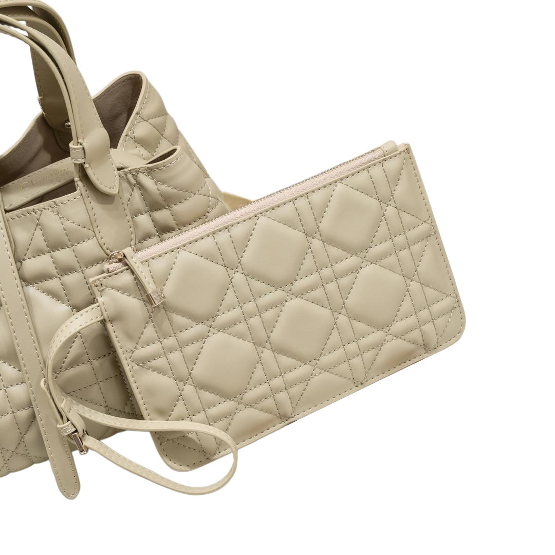 Dior Toujours Vertical Nano Tote Bag In Light Pink/Black/White/Beige Crossbody Bags Calfskin Leather Top-Handle Bags