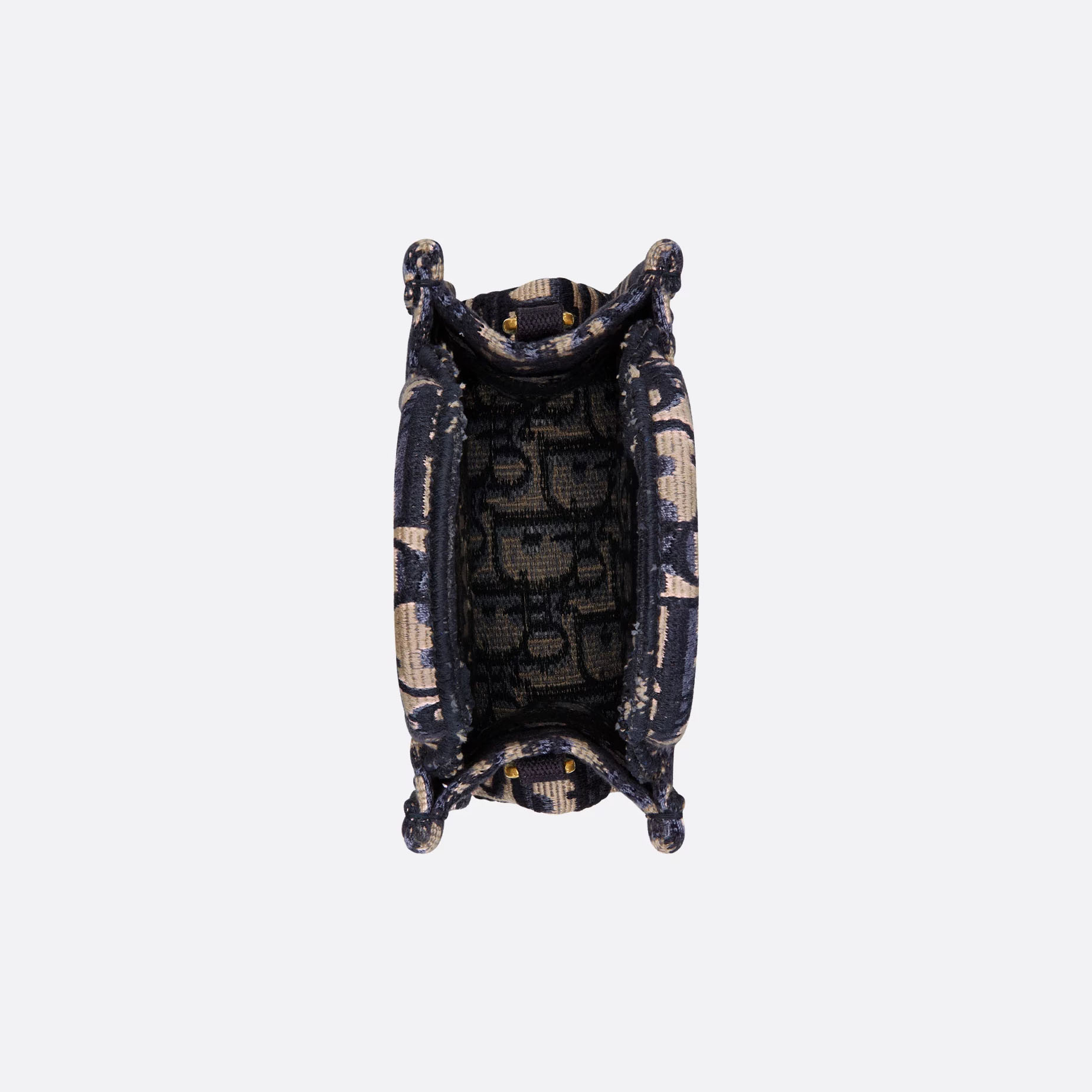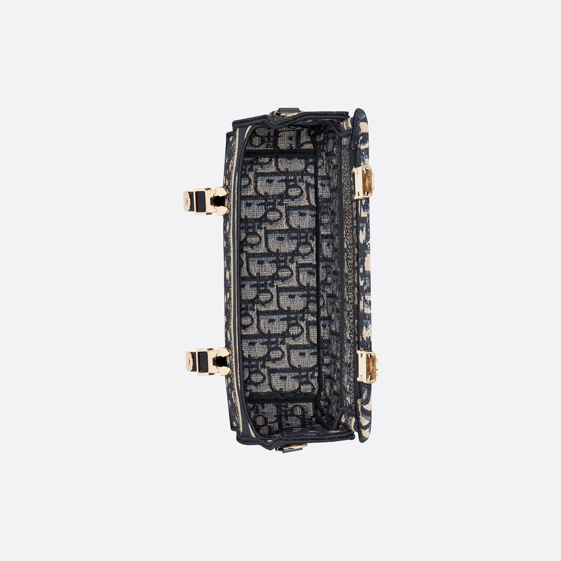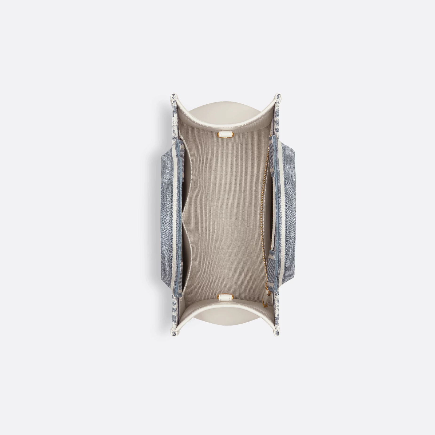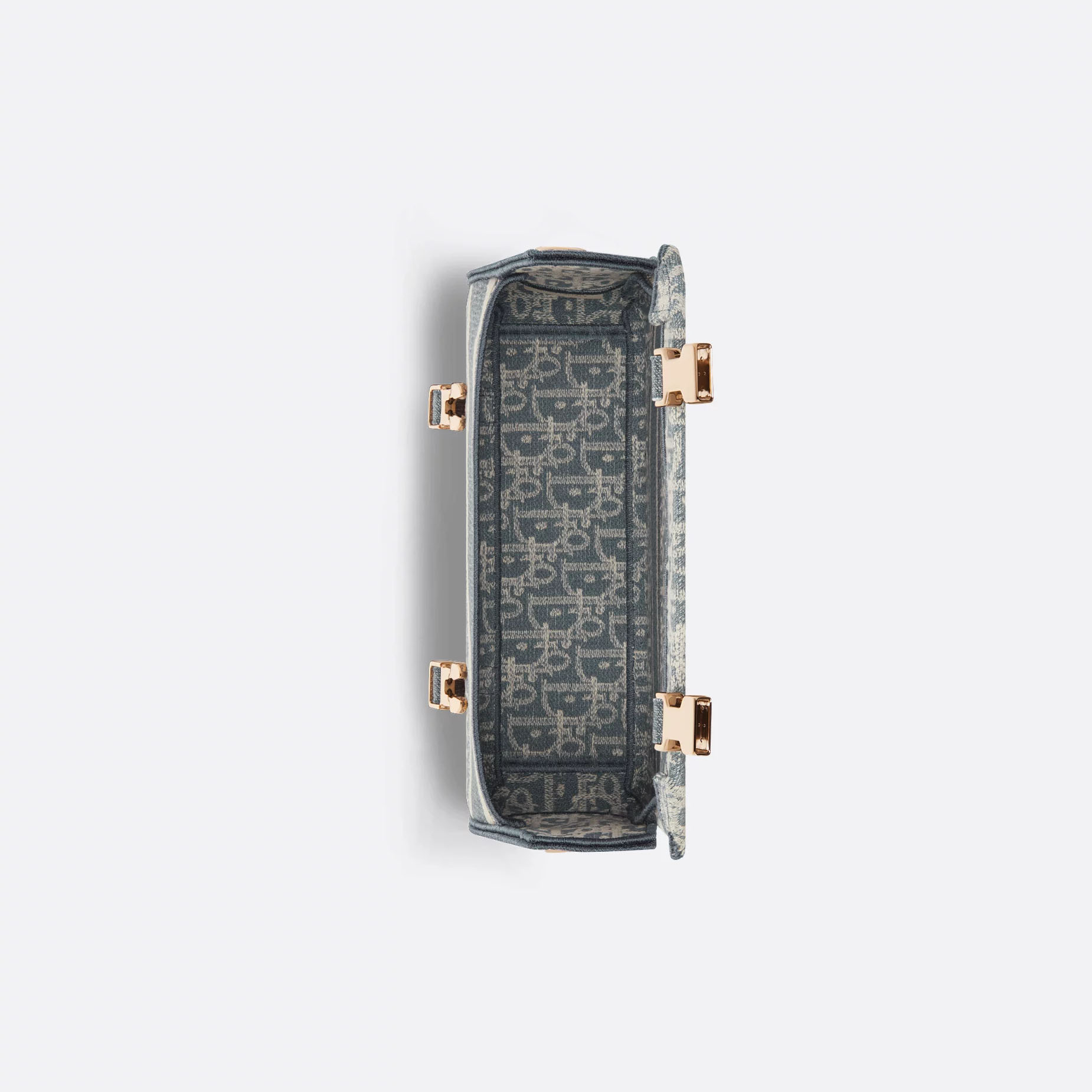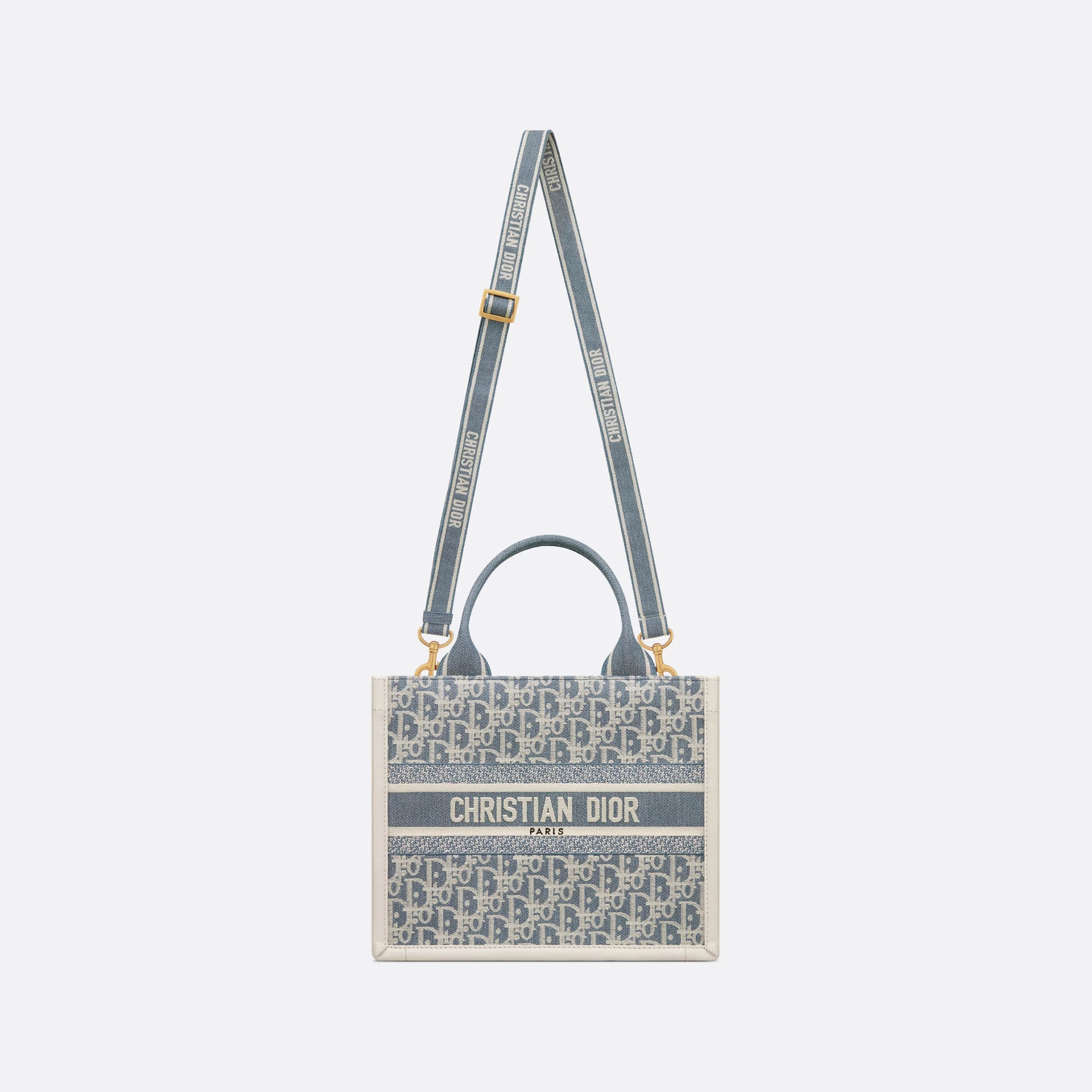 Dior Small Dior Book Tote In Blue Dior Oblique Chambray-Effect Embroidery Canvas and Calfskin Gold Hardware