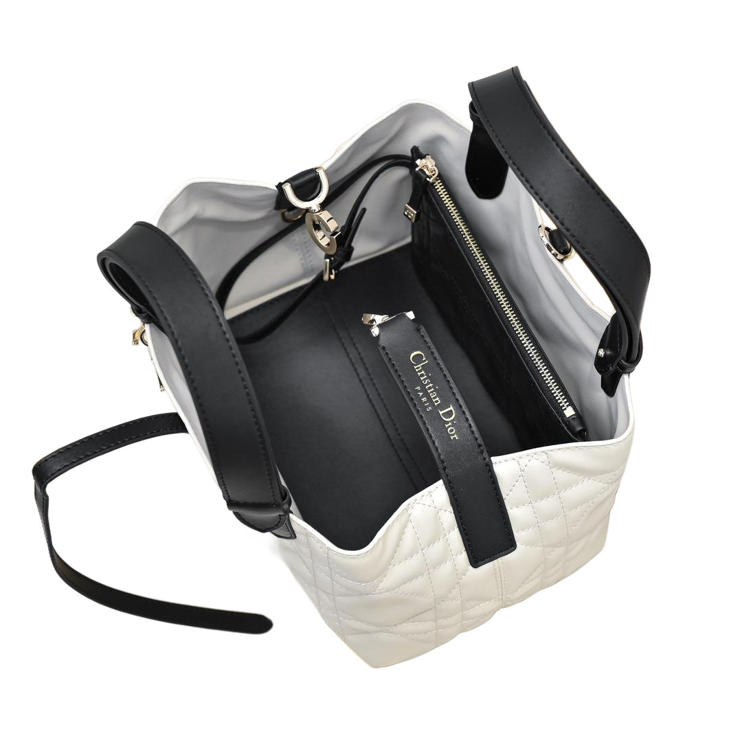 Dior Small Dior Toujours Bag In White And Black Macrocannage Calfskin With Light Gold Hardware