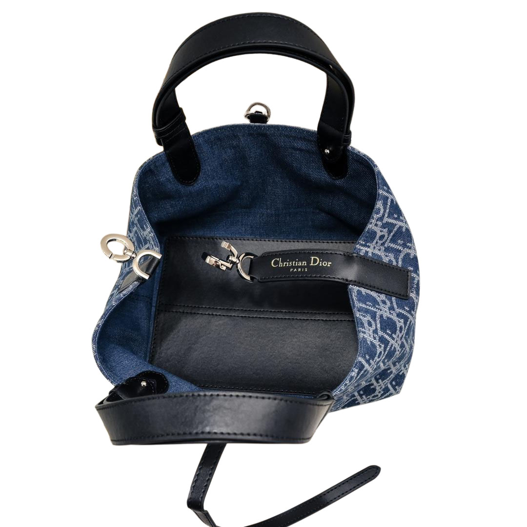 Dior Small Dior Toujours Bag In Blue Denim Dior Oblique Jacquard With Gold Hardware