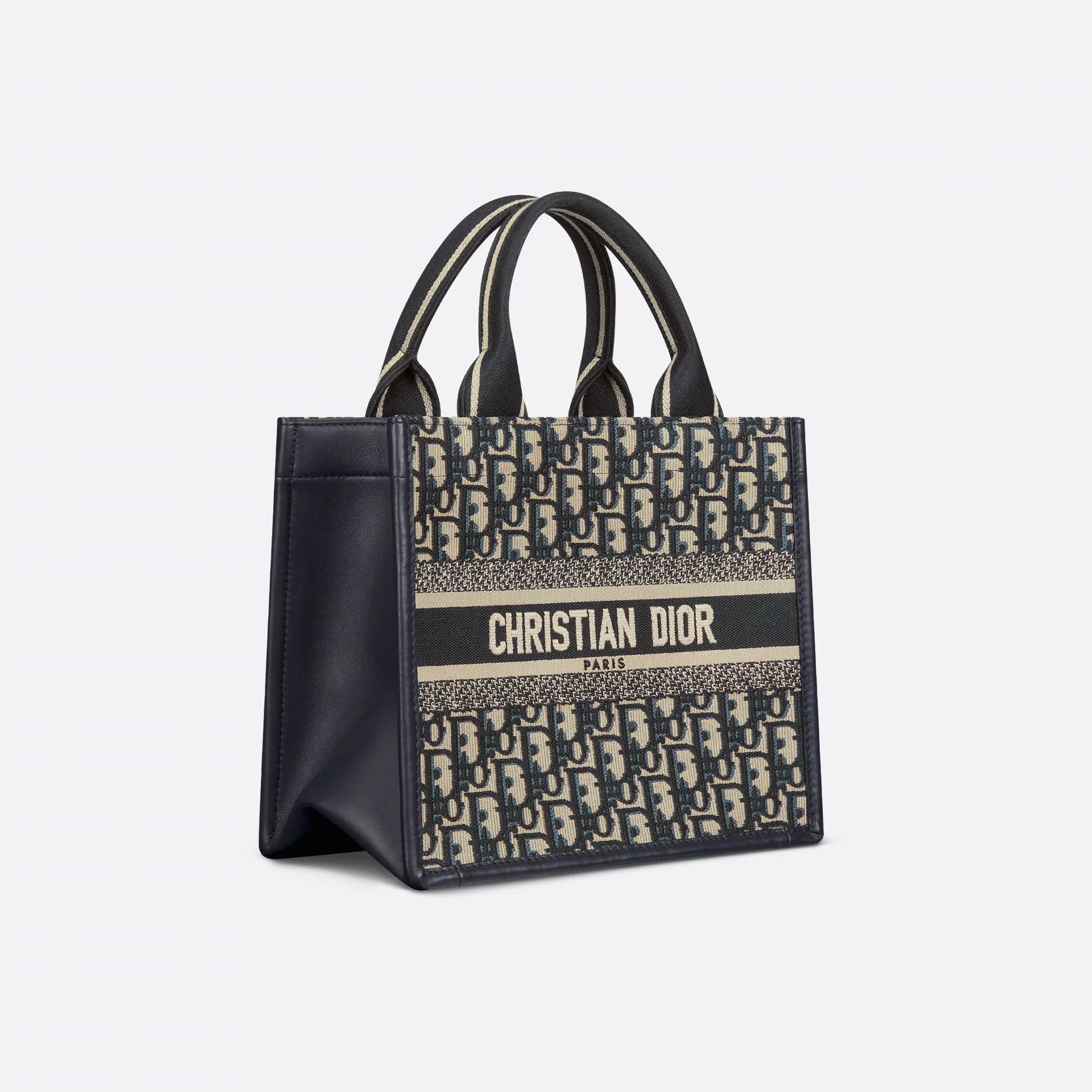 Dior Small Dior Book Tote In Blue Dior Oblique Embroidery Canvas and Calfskin Gold Hardware