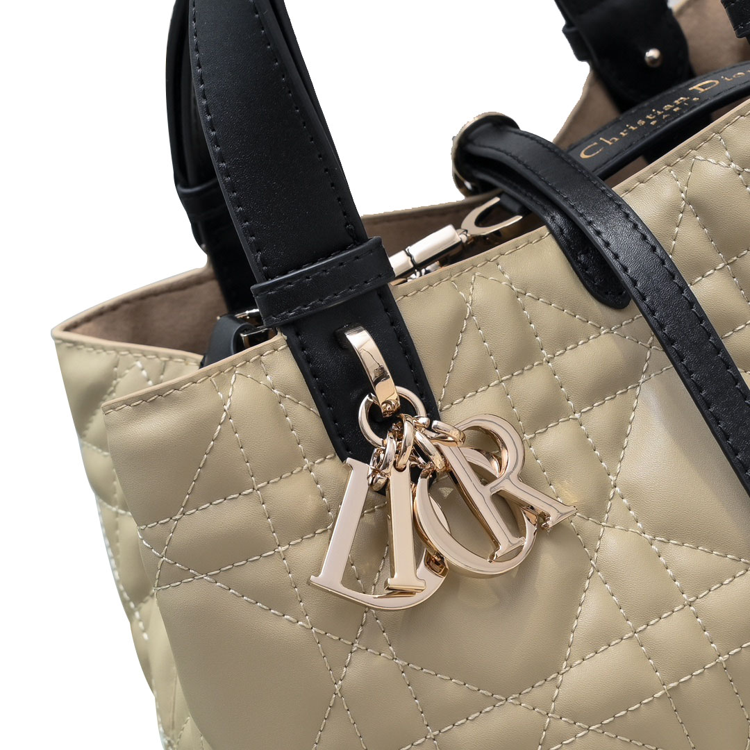 Dior Small Dior Toujours Bag In Beige And Black Macrocannage Calfskin With Light Gold Hardware
