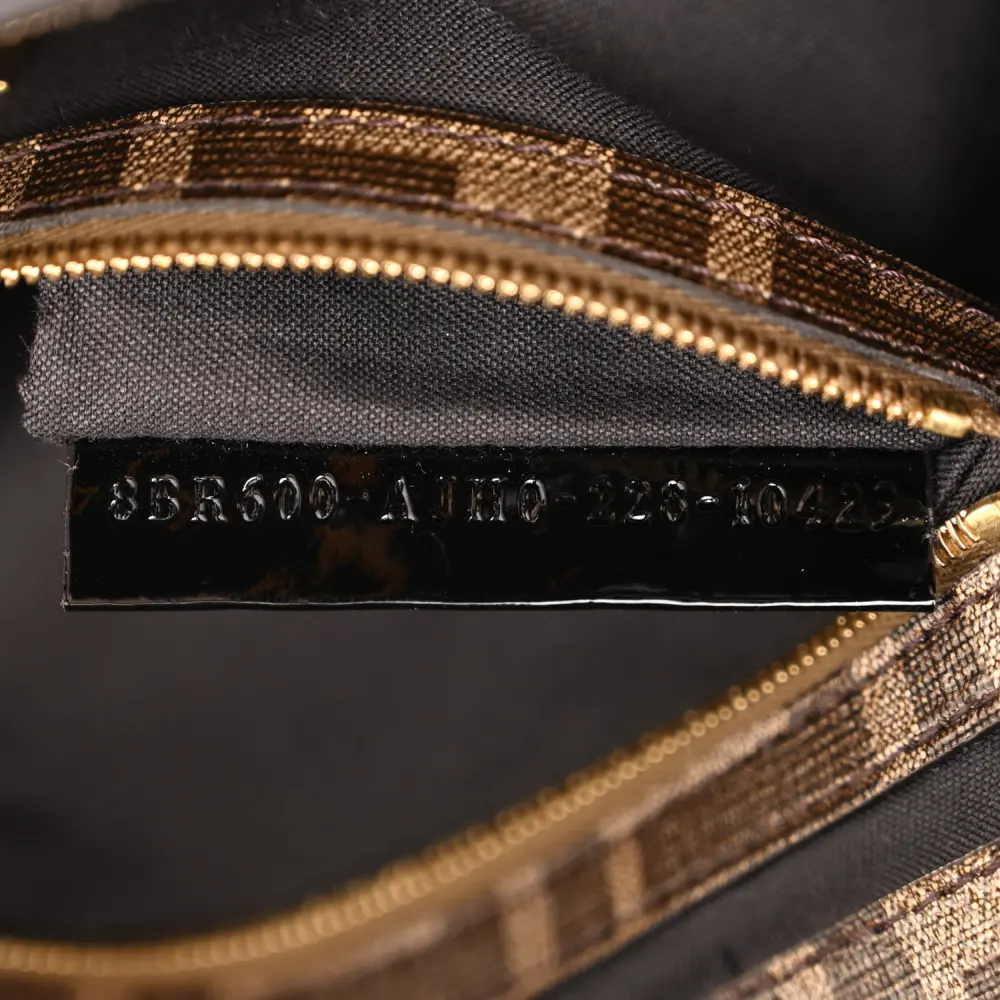 Fendi Nano FF 1974 Fendigraphy Hobo Charm Tobacco/Moro Jacquard Fabric Gold Hardware
