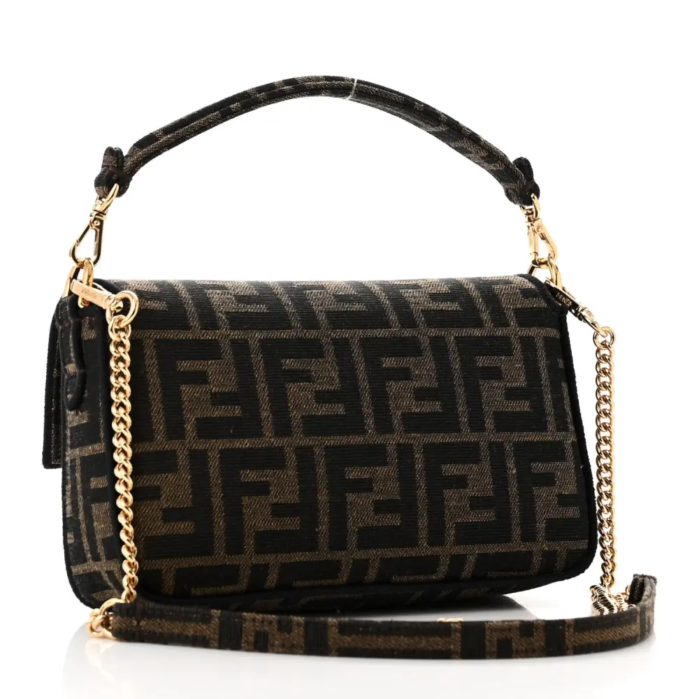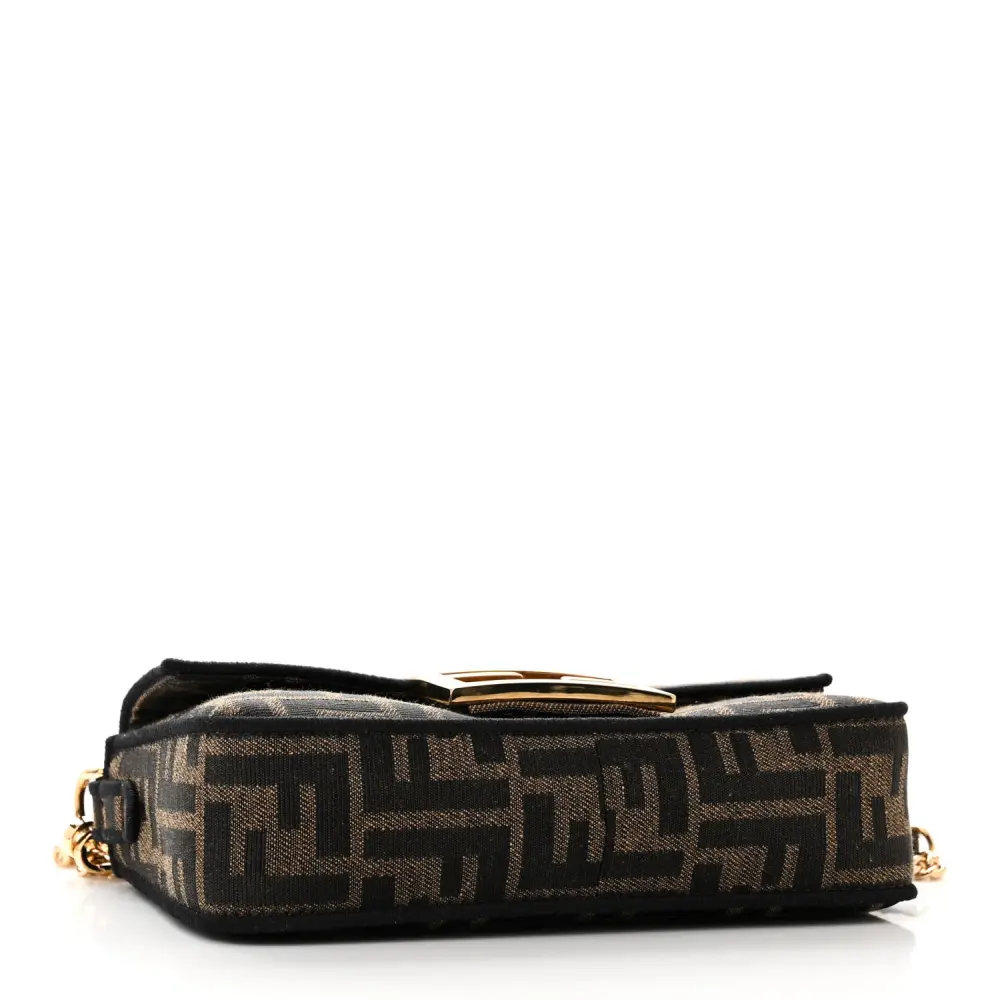 Fendi Mini FF 1974 Baguette Tobacco/Moro/Black Jacquard Fabric Gold Hardware