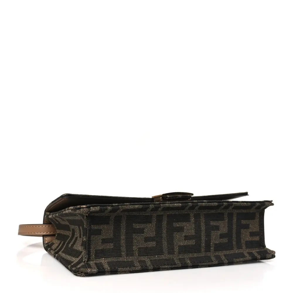 Fendi FF 1974 Midi Chain Baguette Tobacco/Moro Jacquard Fabric Aged Gold Hardware