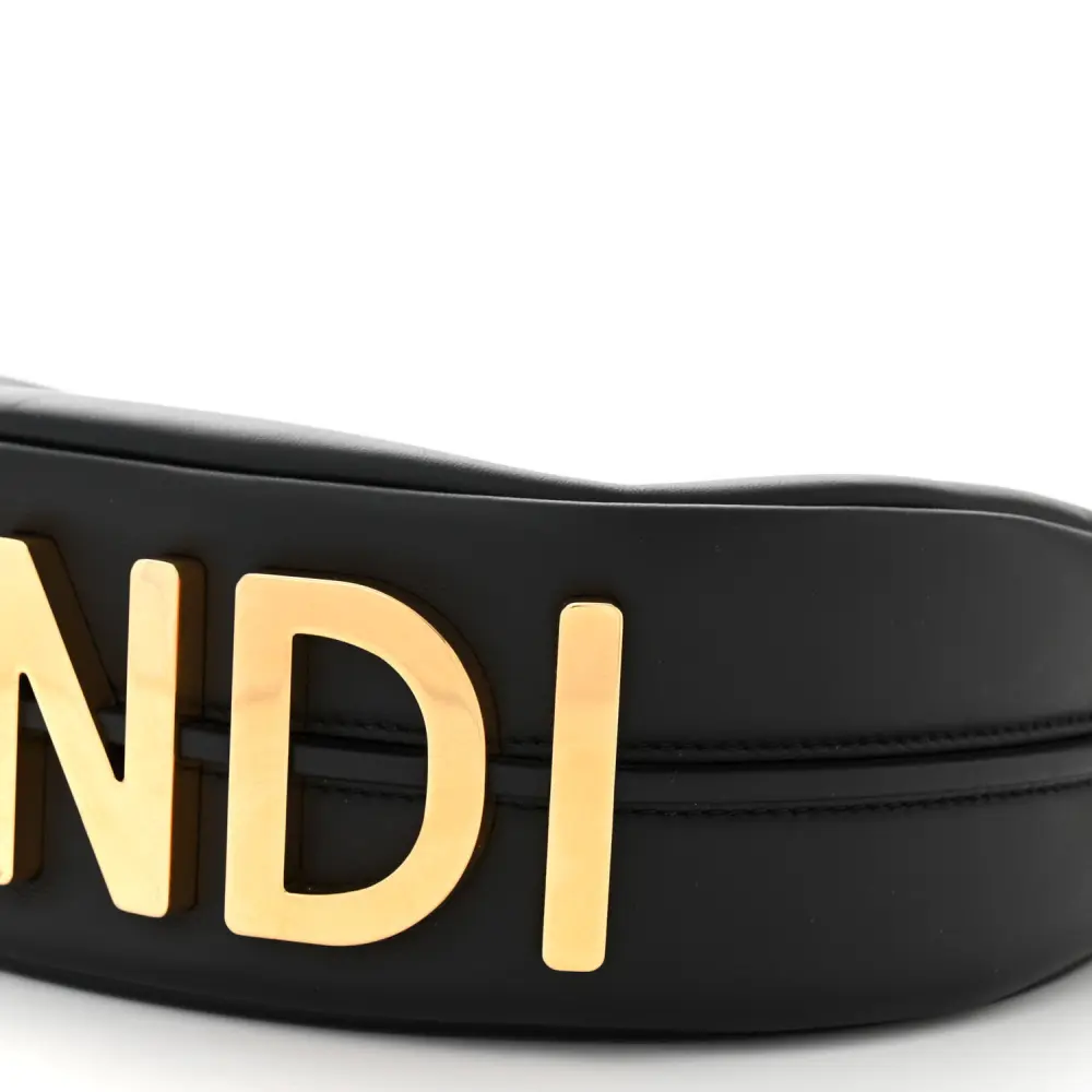 Fendi Nano Fendigraphy Hobo Charm Black Matte Grace Vitello Leather Gold Hardware