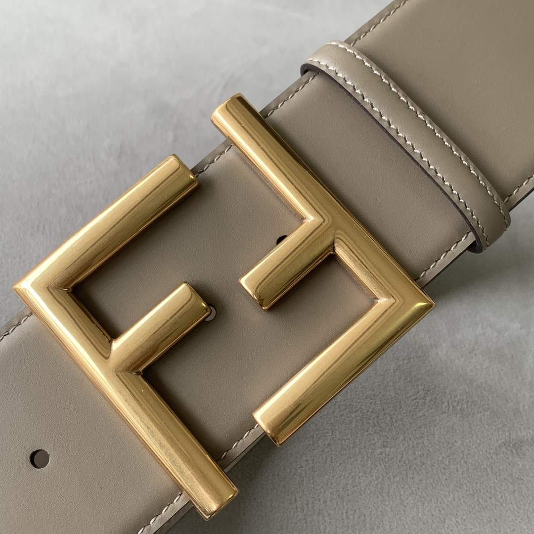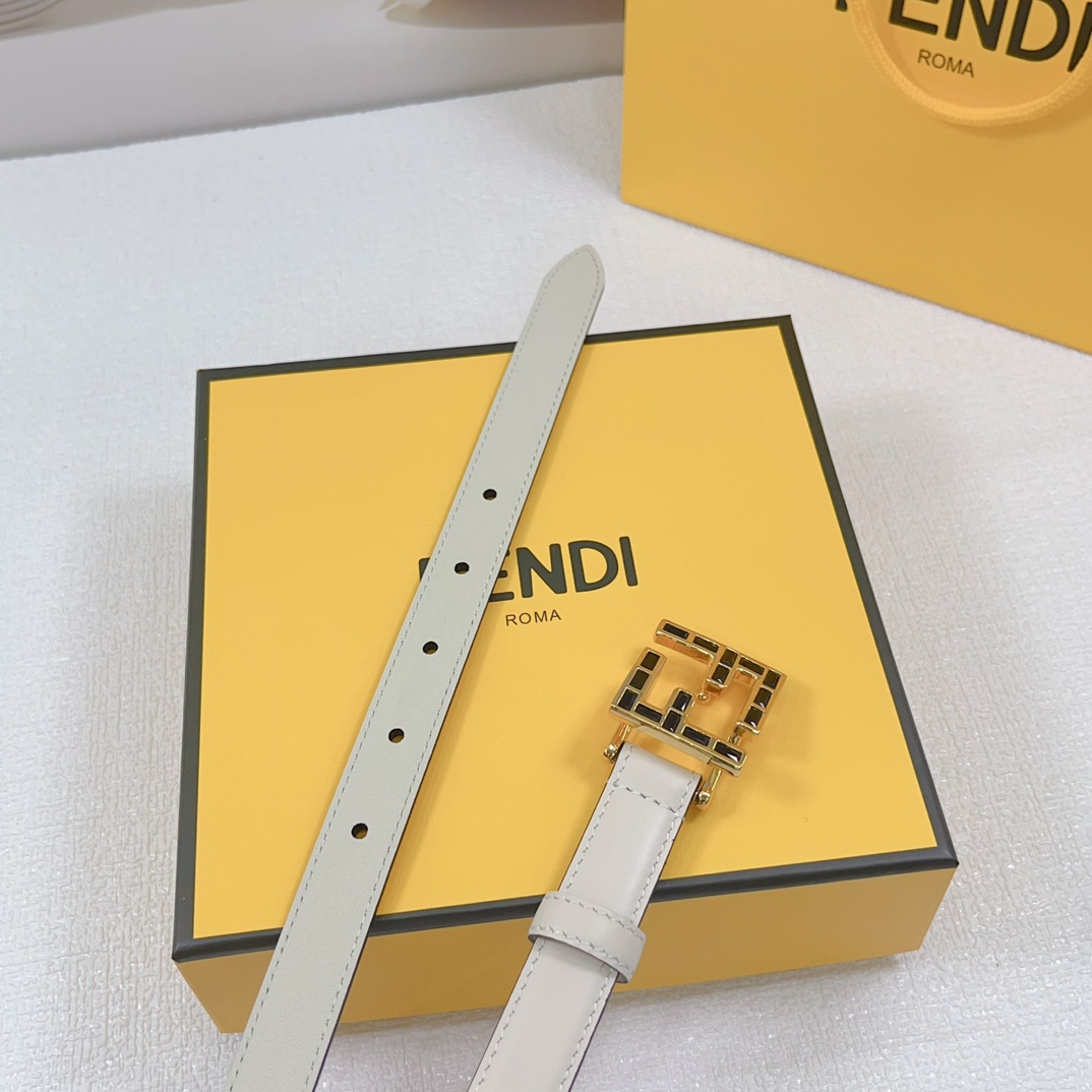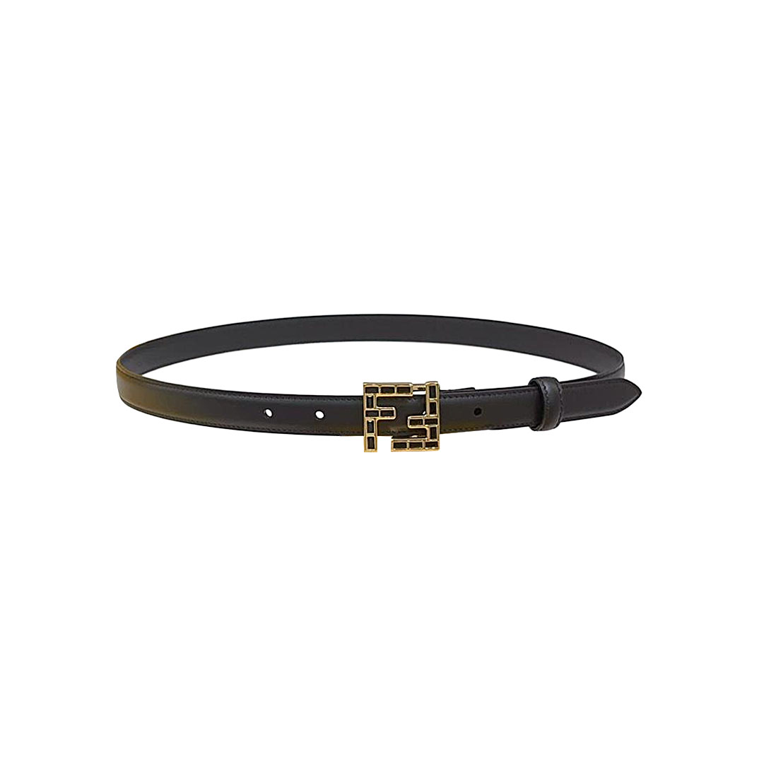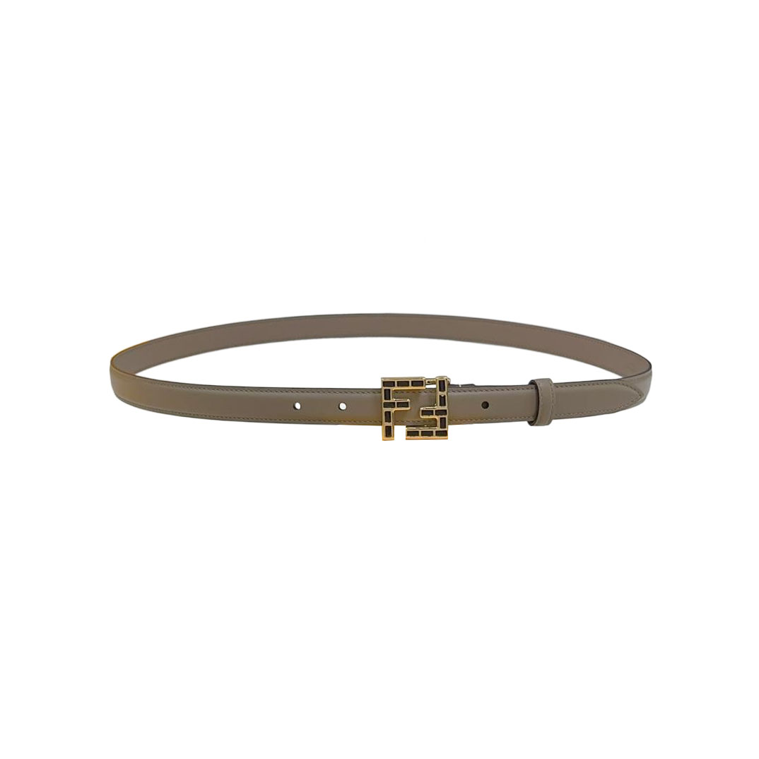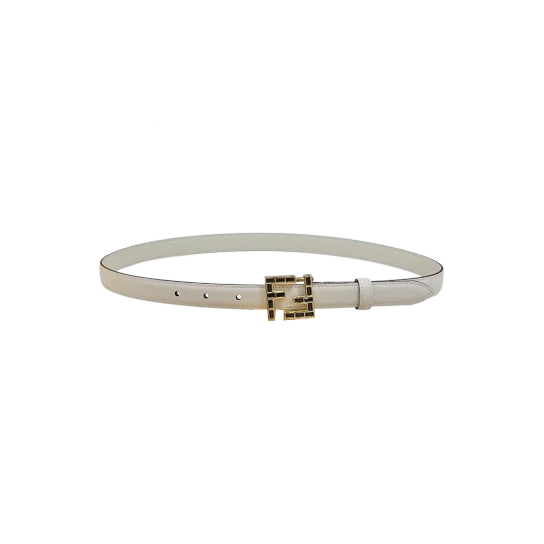 Fendi Women's FF Squared Buckle Belt In Black/Brown/Grey/Beige/White Calfskin With Gold Hardware 20mm