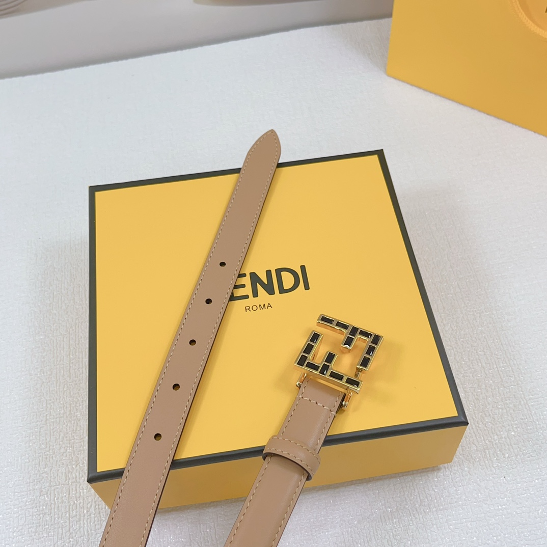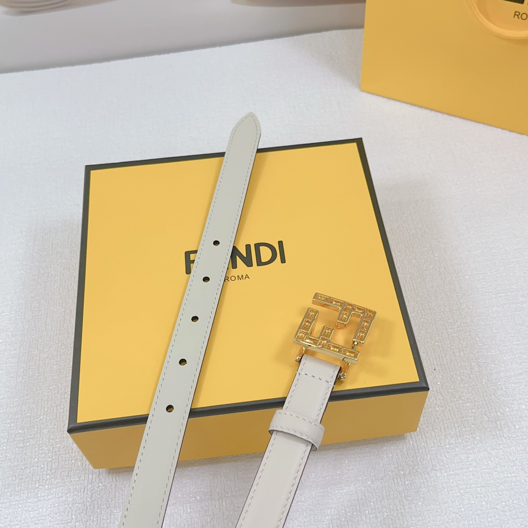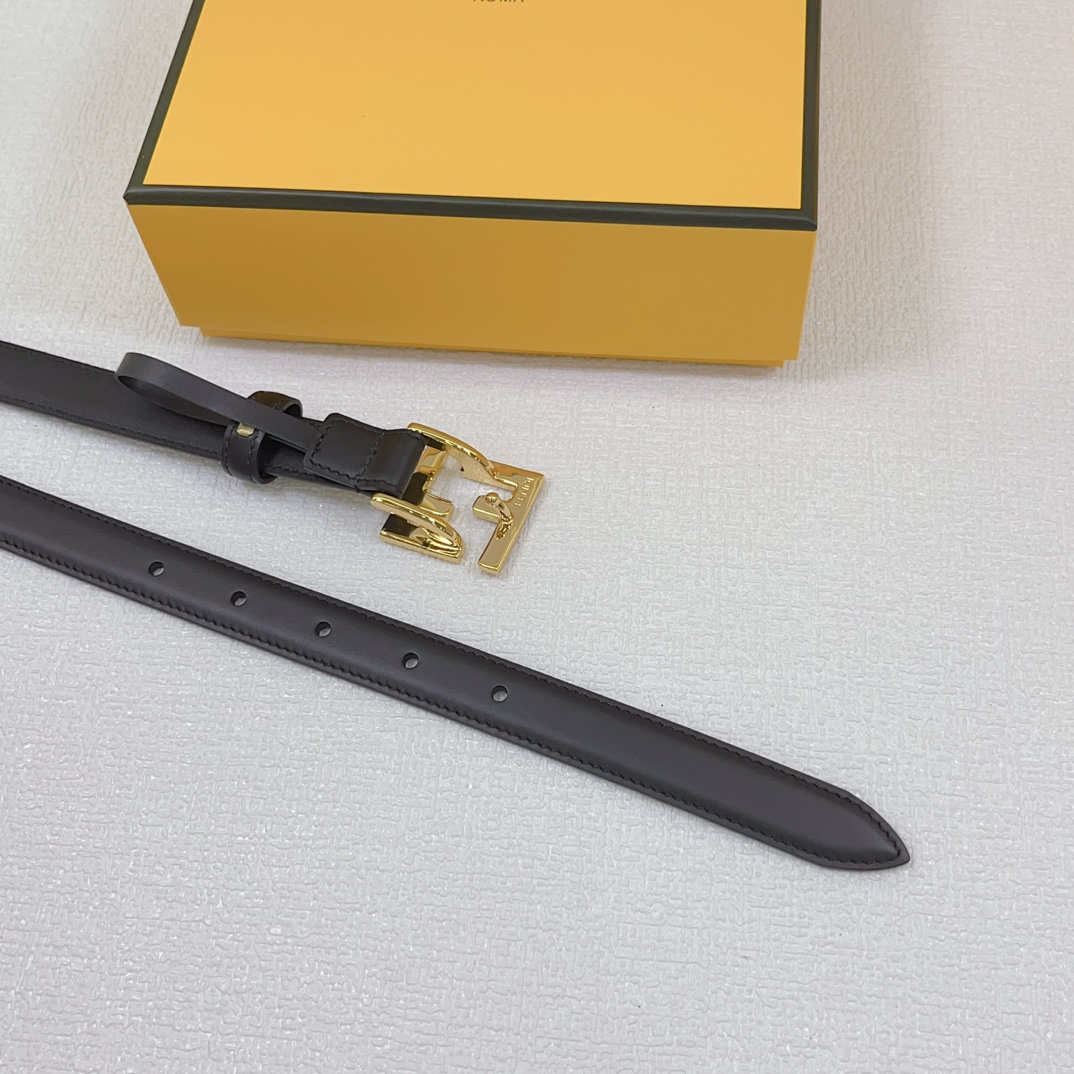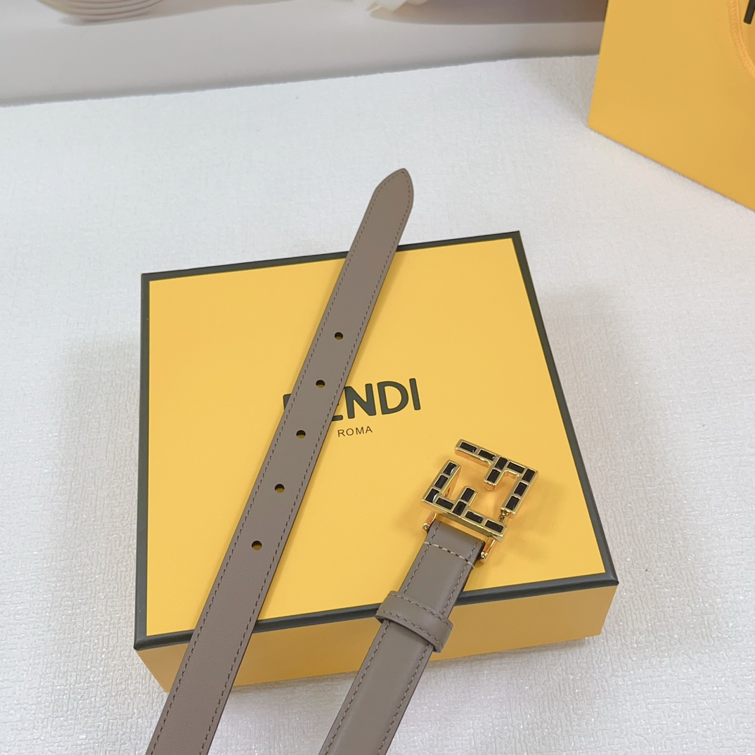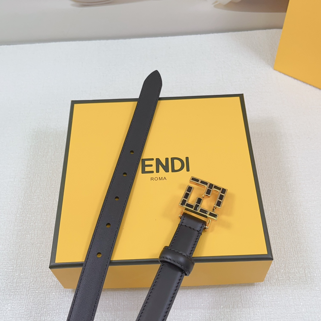 Fendi Women's FF Squared Buckle Belt In Black/Brown/Grey/Beige/White Calfskin With Gold Hardware 20mm