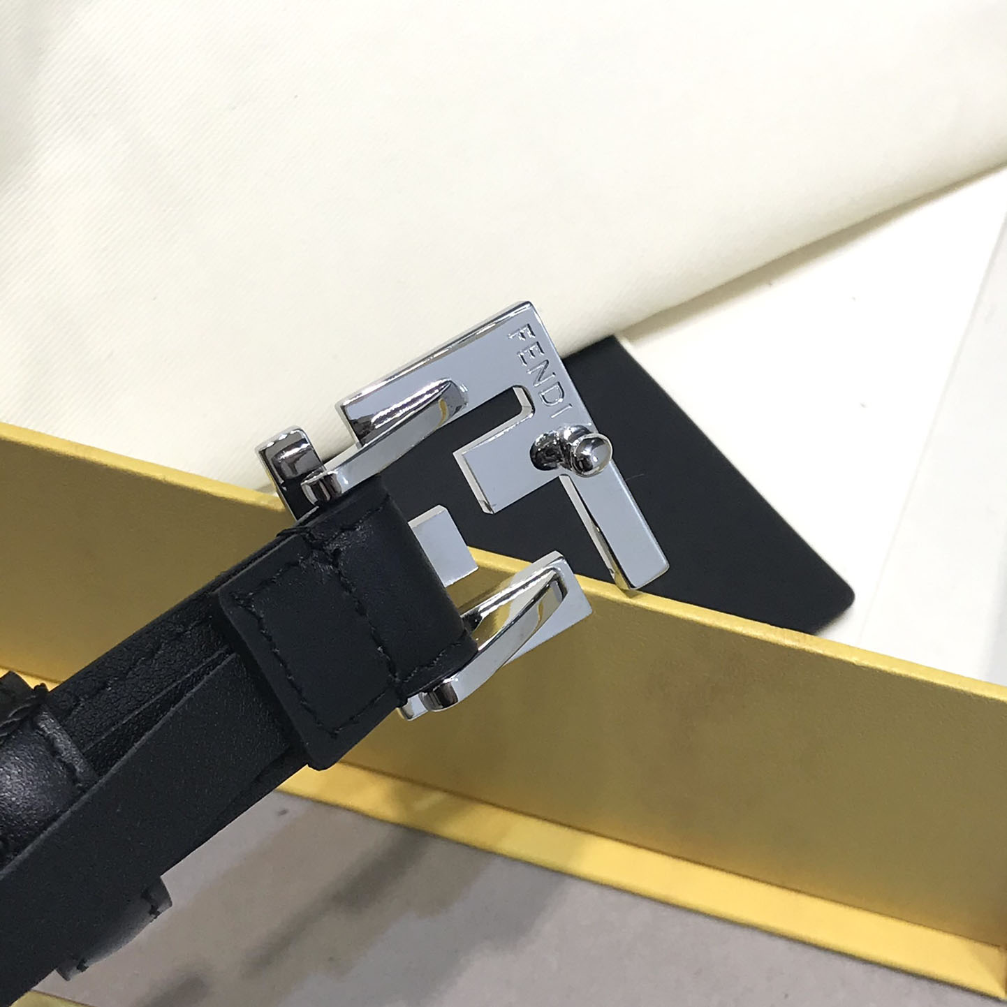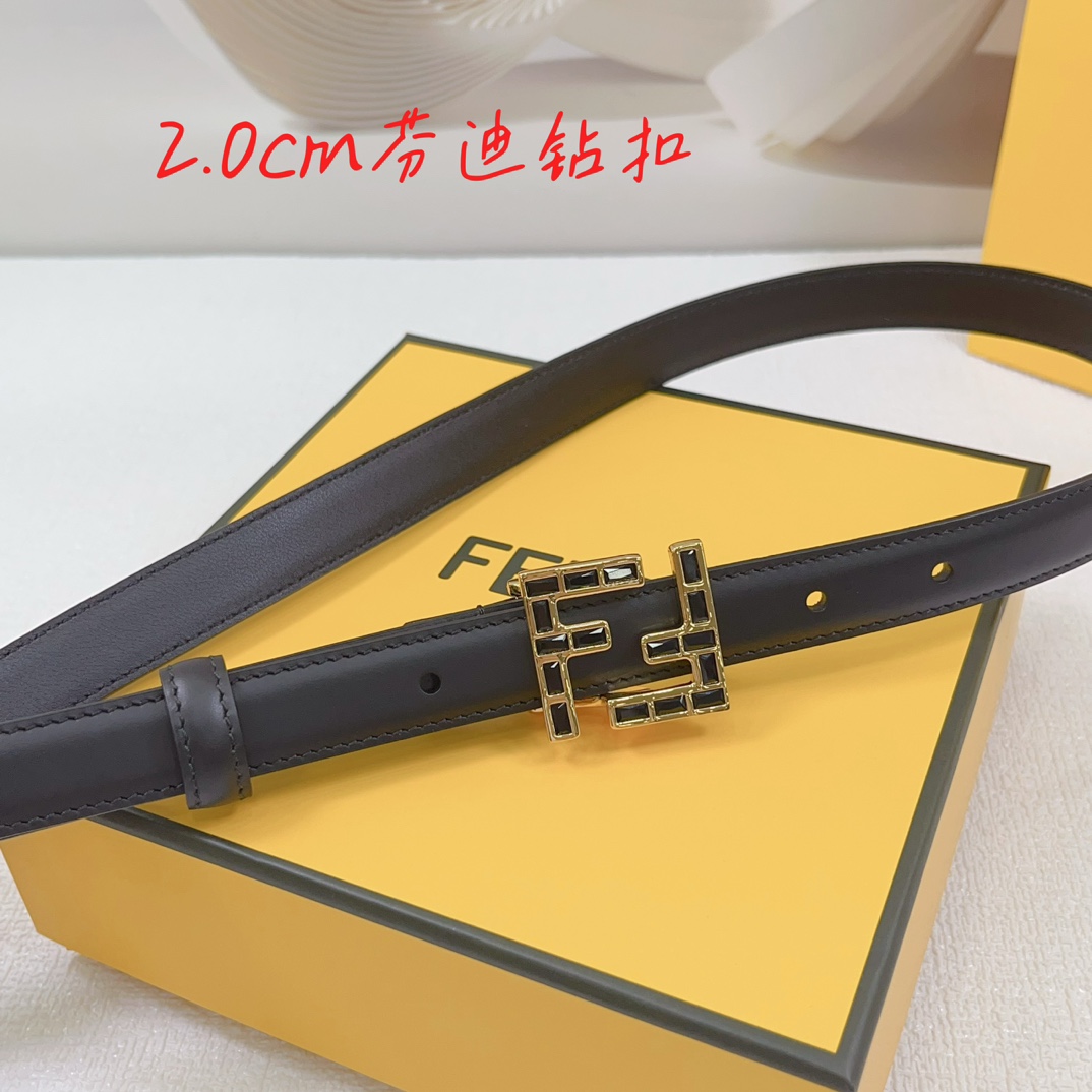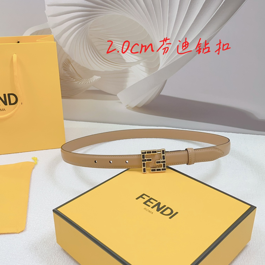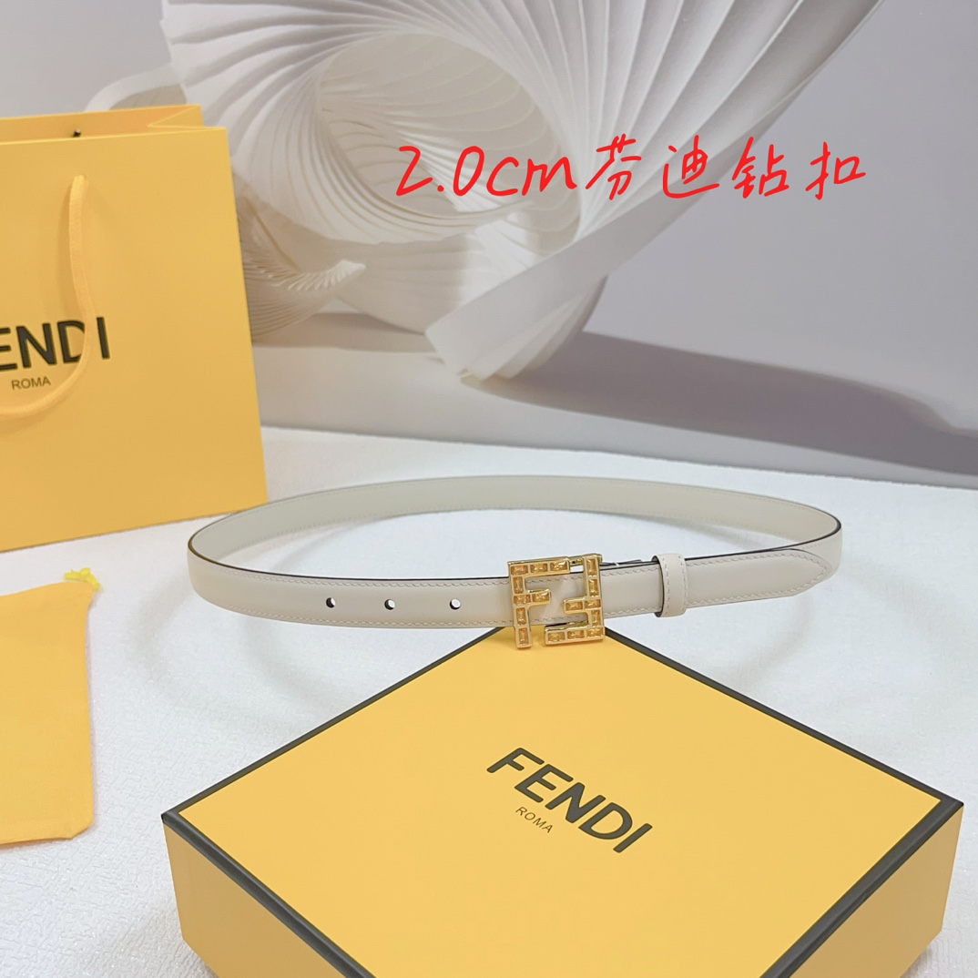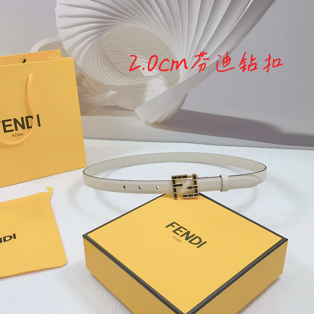 Fendi Women's FF Squared Buckle Belt In Black/Brown/Grey/Beige/White Calfskin With Gold Hardware 20mm