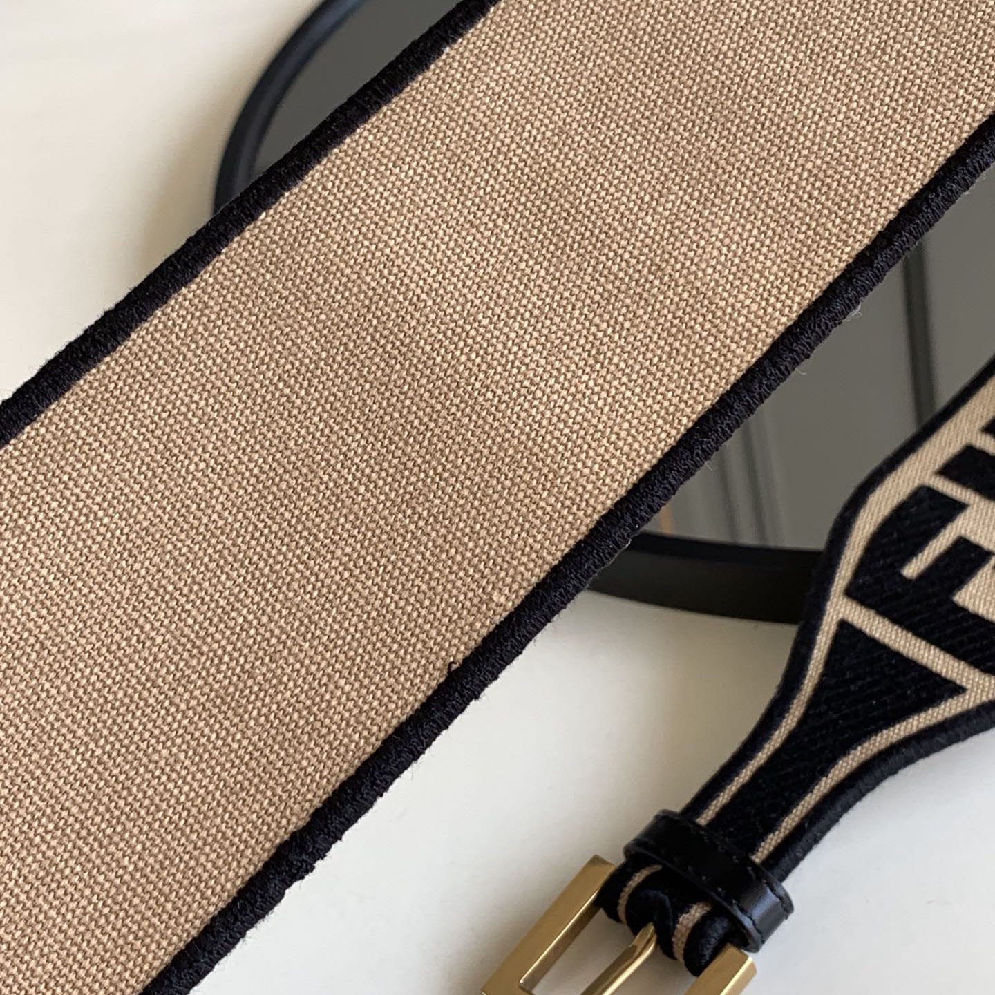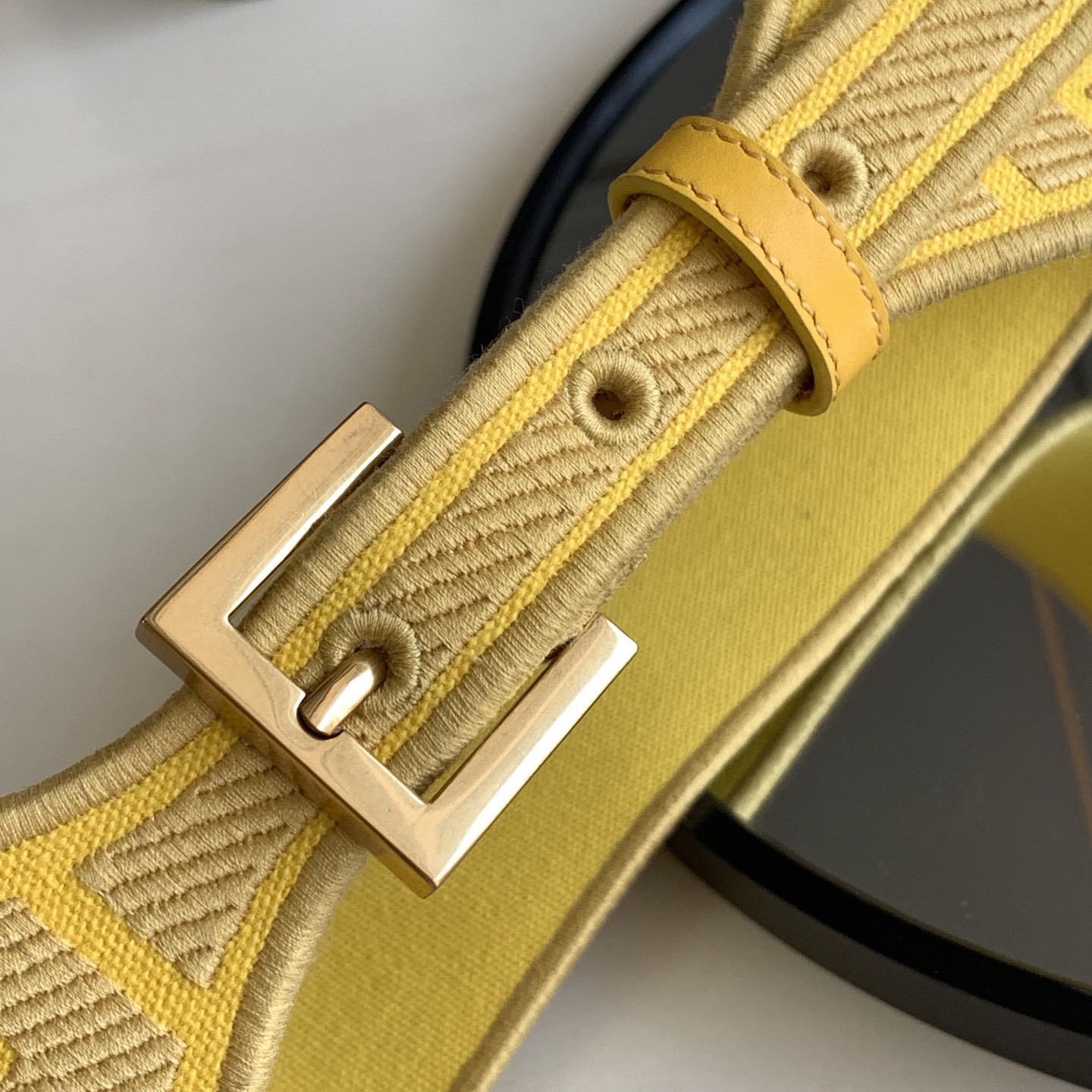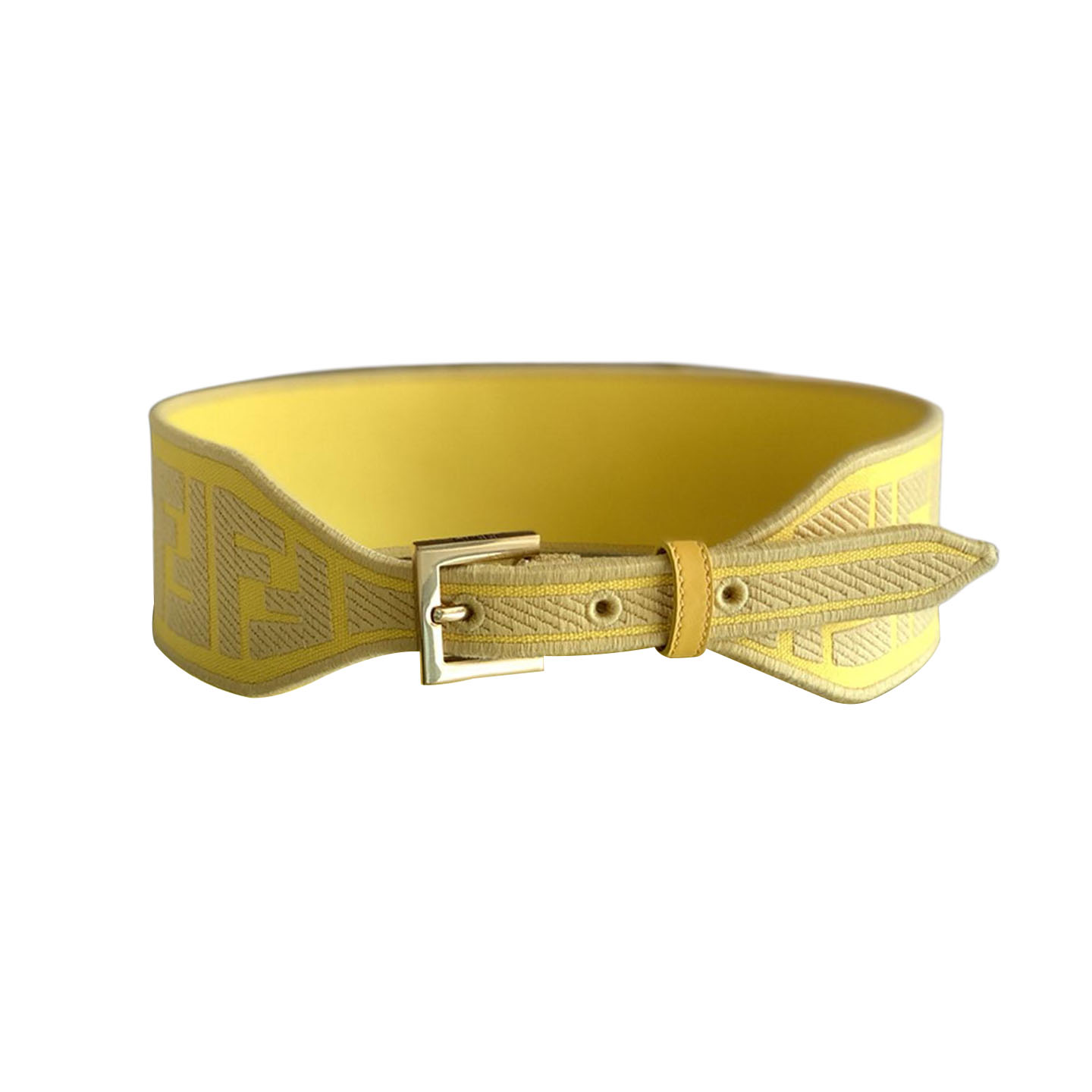 Fendi Women's Belt In Green/Black/Beige/Yellow FF Logo Embroidery Canvas With Gold Hardware 60mm