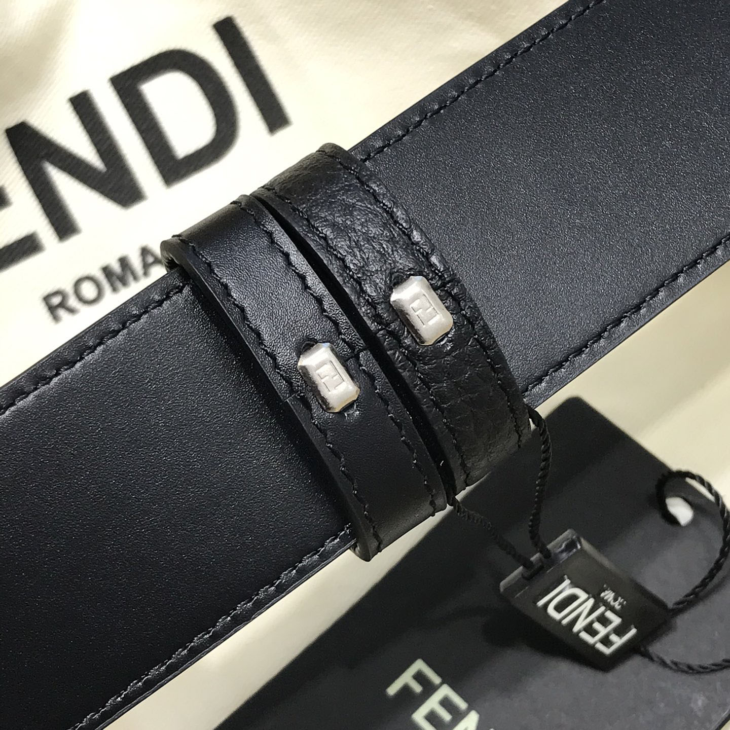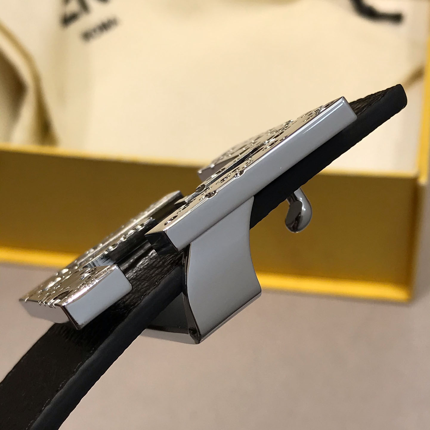 Fendi Men's Square Buckle Belt In Black Calfskin With Black Hardware 38mm