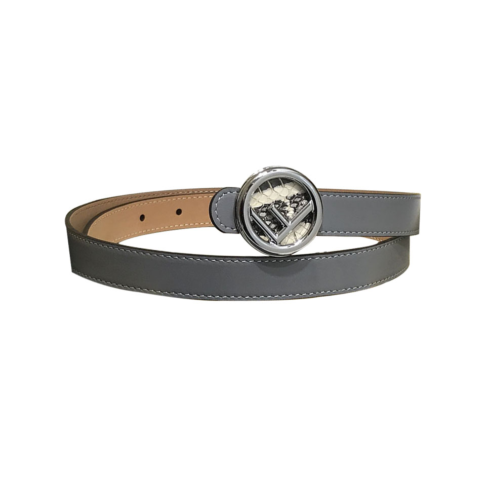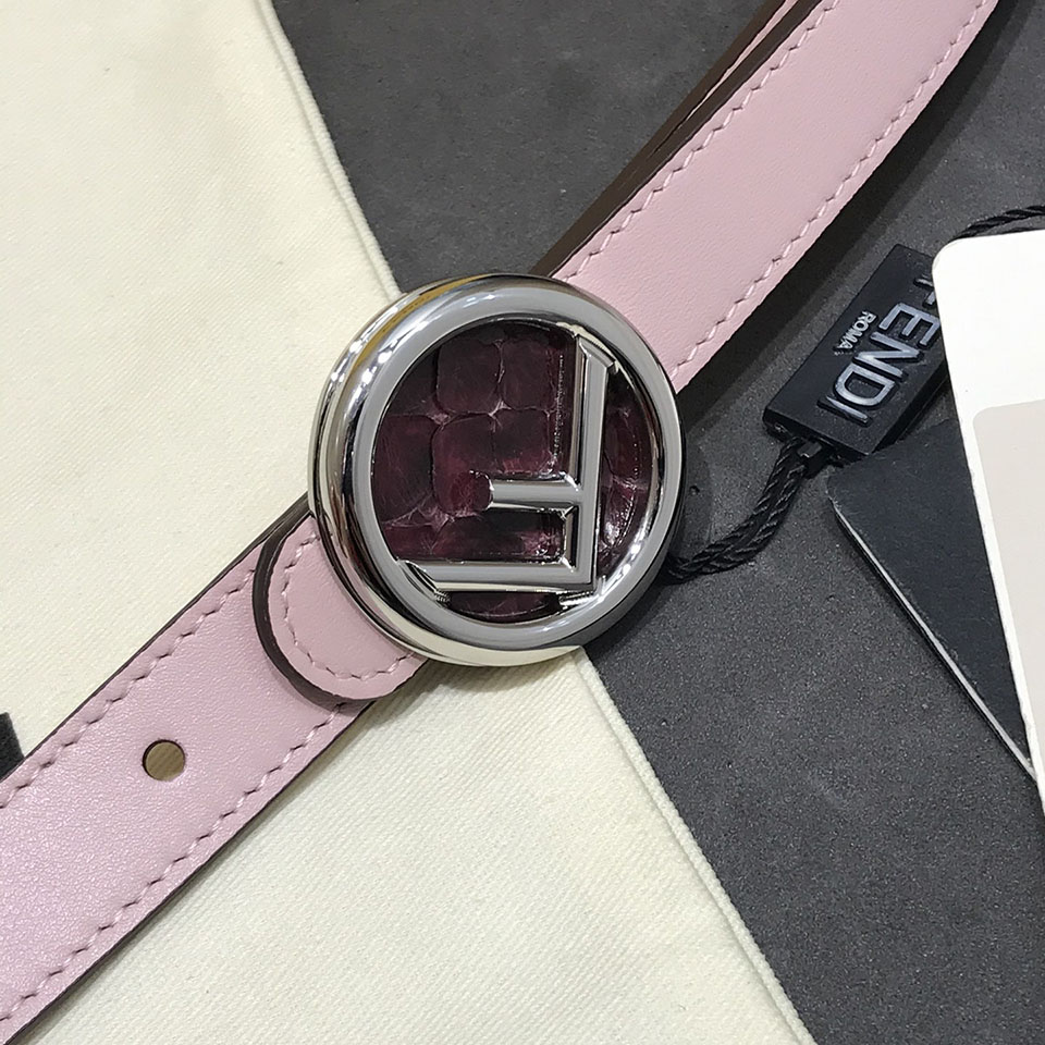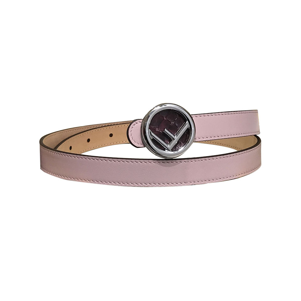 Fendi Women's F Logo Round Buckle Belt In Black/Brown/Grey/Pink Calfskin With Gold/Silver Hardware 20mm