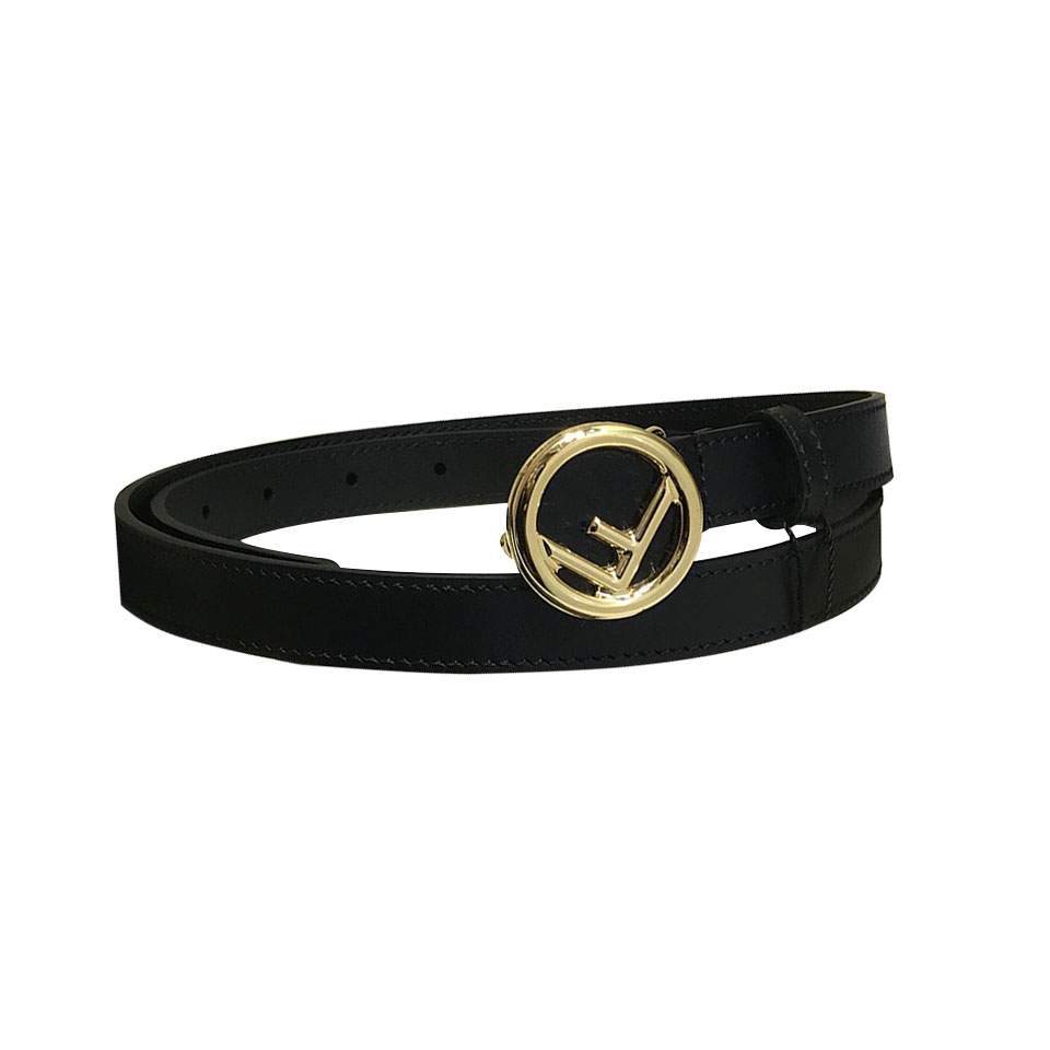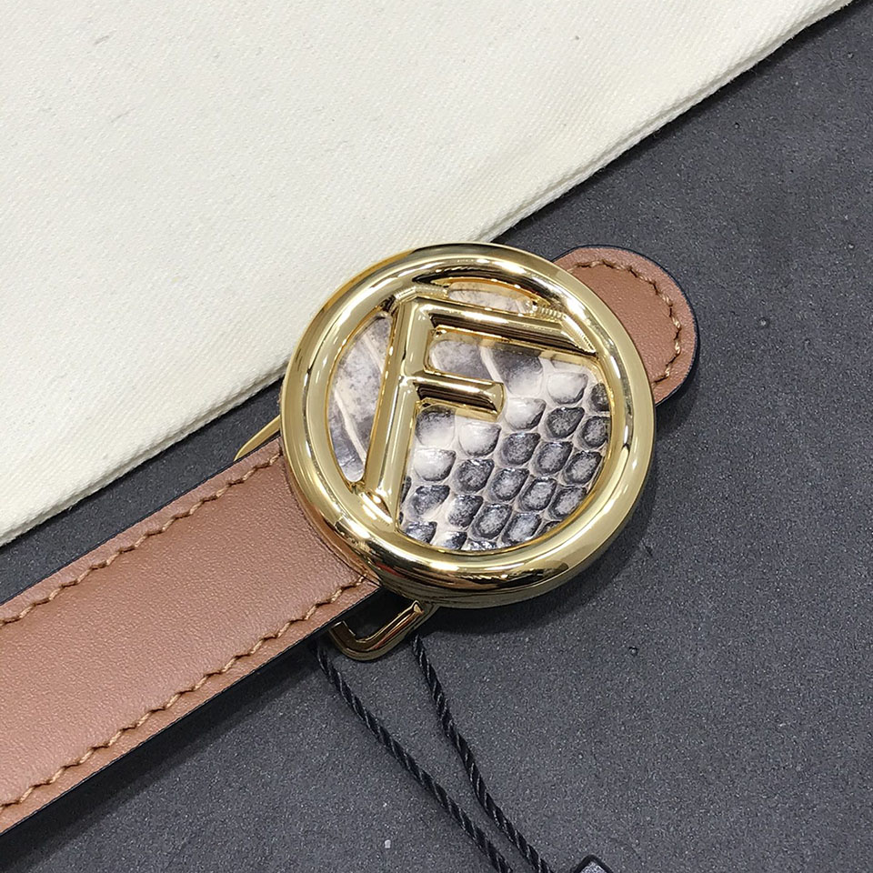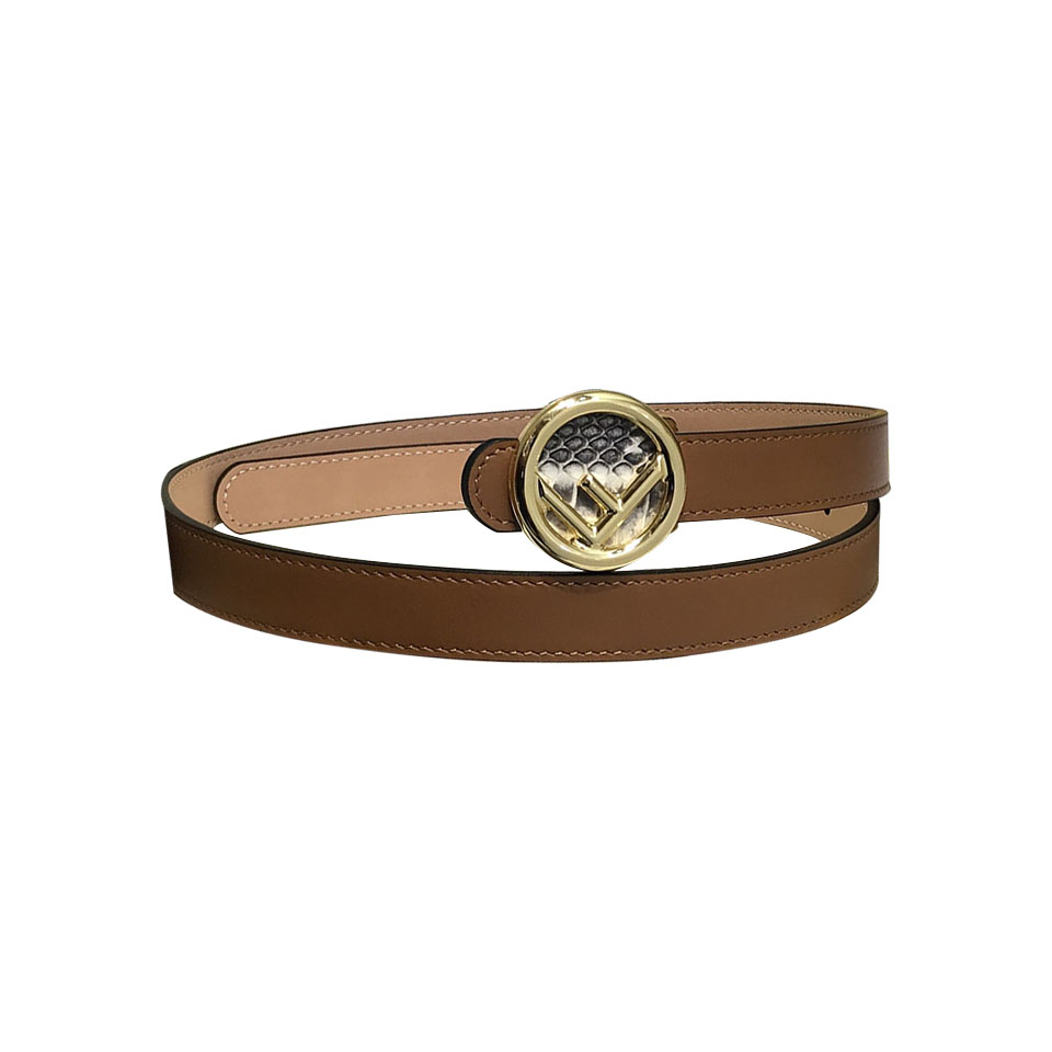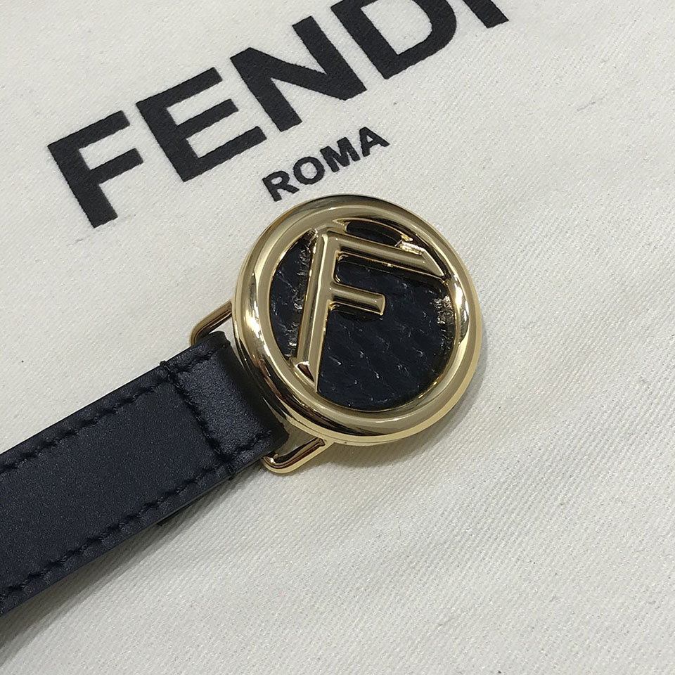 Fendi Women's F Logo Round Buckle Belt In Black/Brown/Grey/Pink Calfskin With Gold/Silver Hardware 20mm