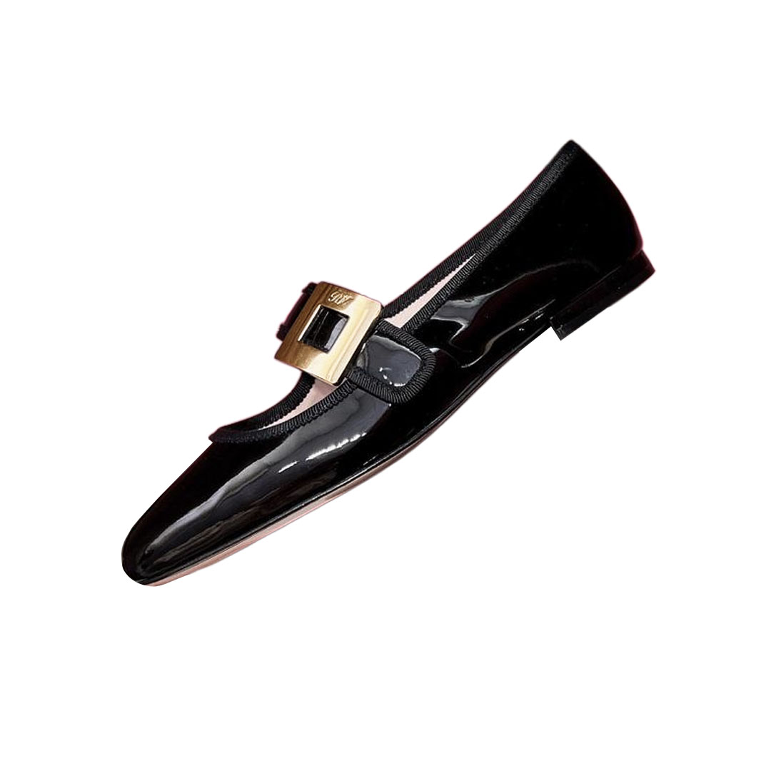 Roger Vivier Très Vivier Mary Janes In White/Black Patent Leather With Metal Buckle (Heel Height 0.5cm)