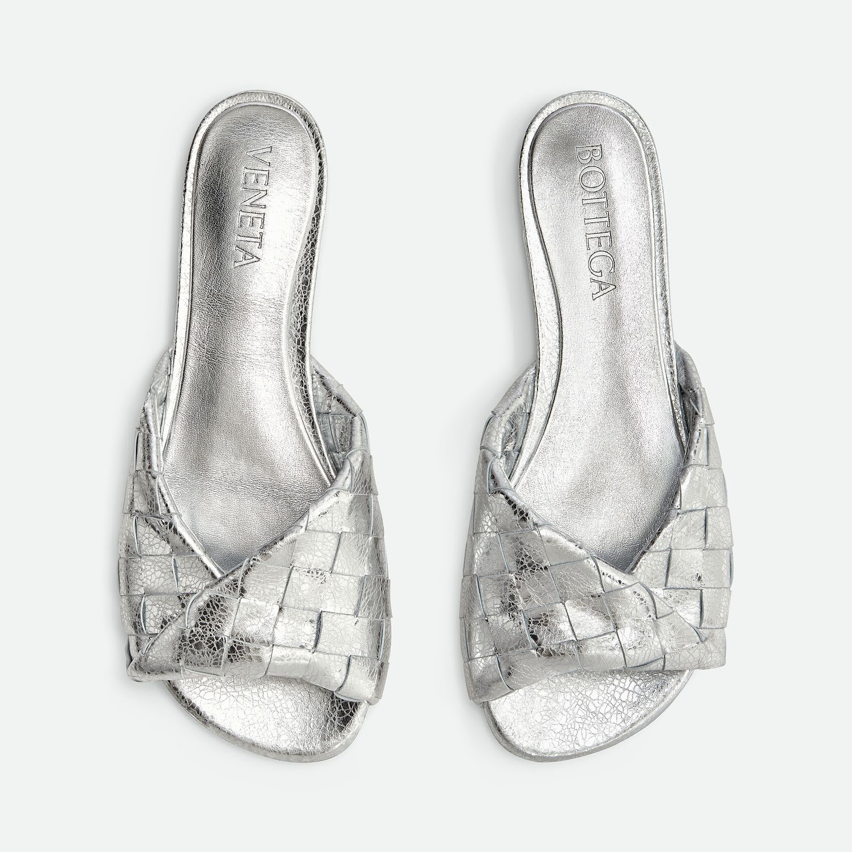 Bottega Veneta Blink Flat Mule In Silver Intrecciato Leather Flat Mule