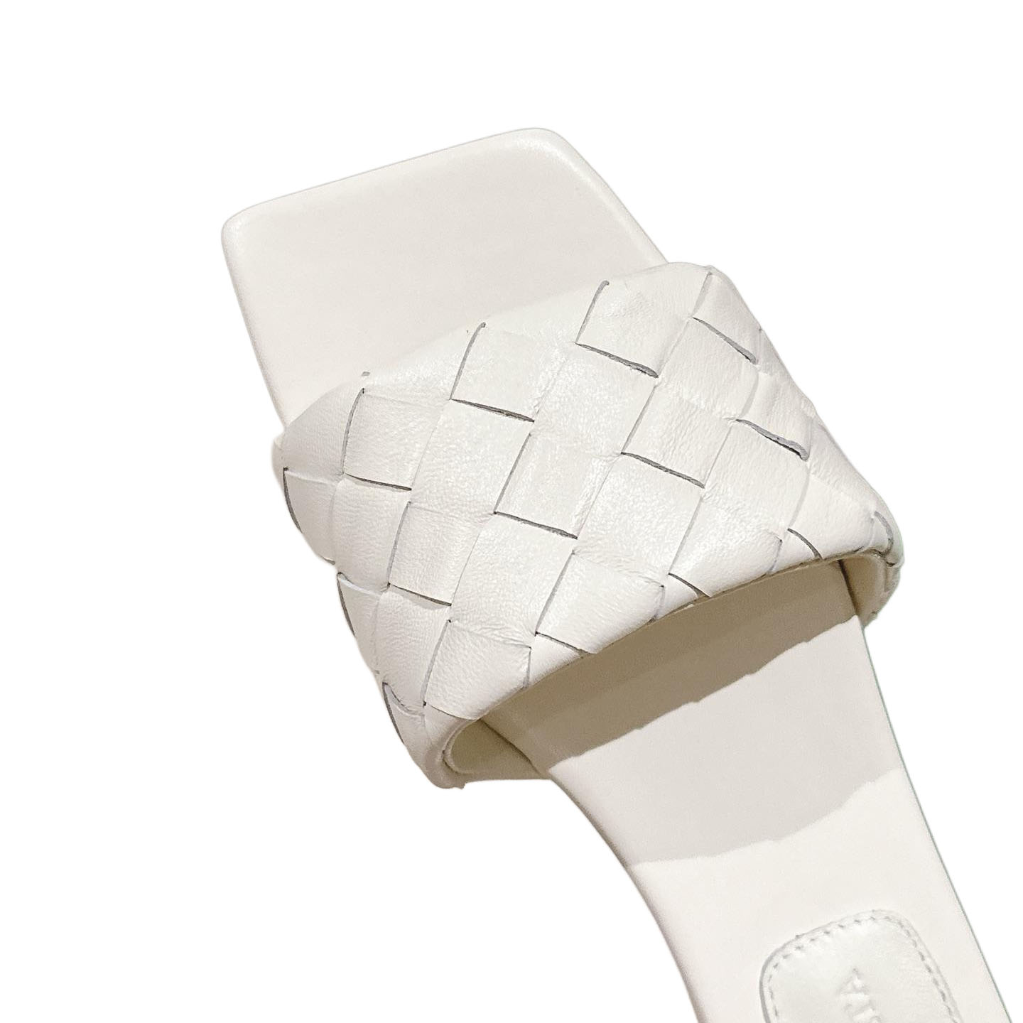 Bottega Veneta Parco Mule In White Intrecciato Leather Flat Mule Sandal