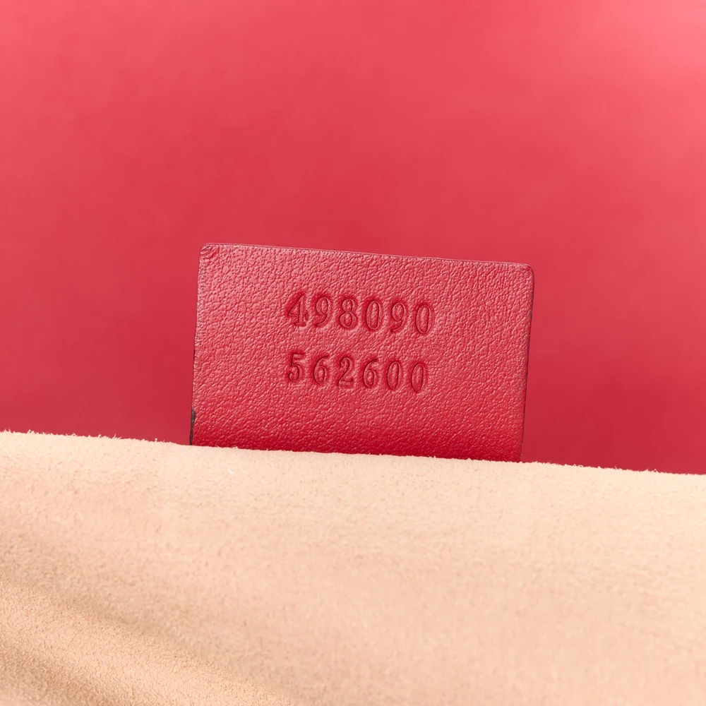 Gucci Large GG Marmont Shoulder Bag Hibiscus Red Calfskin Matelassé Leather Aged Gold Hardware