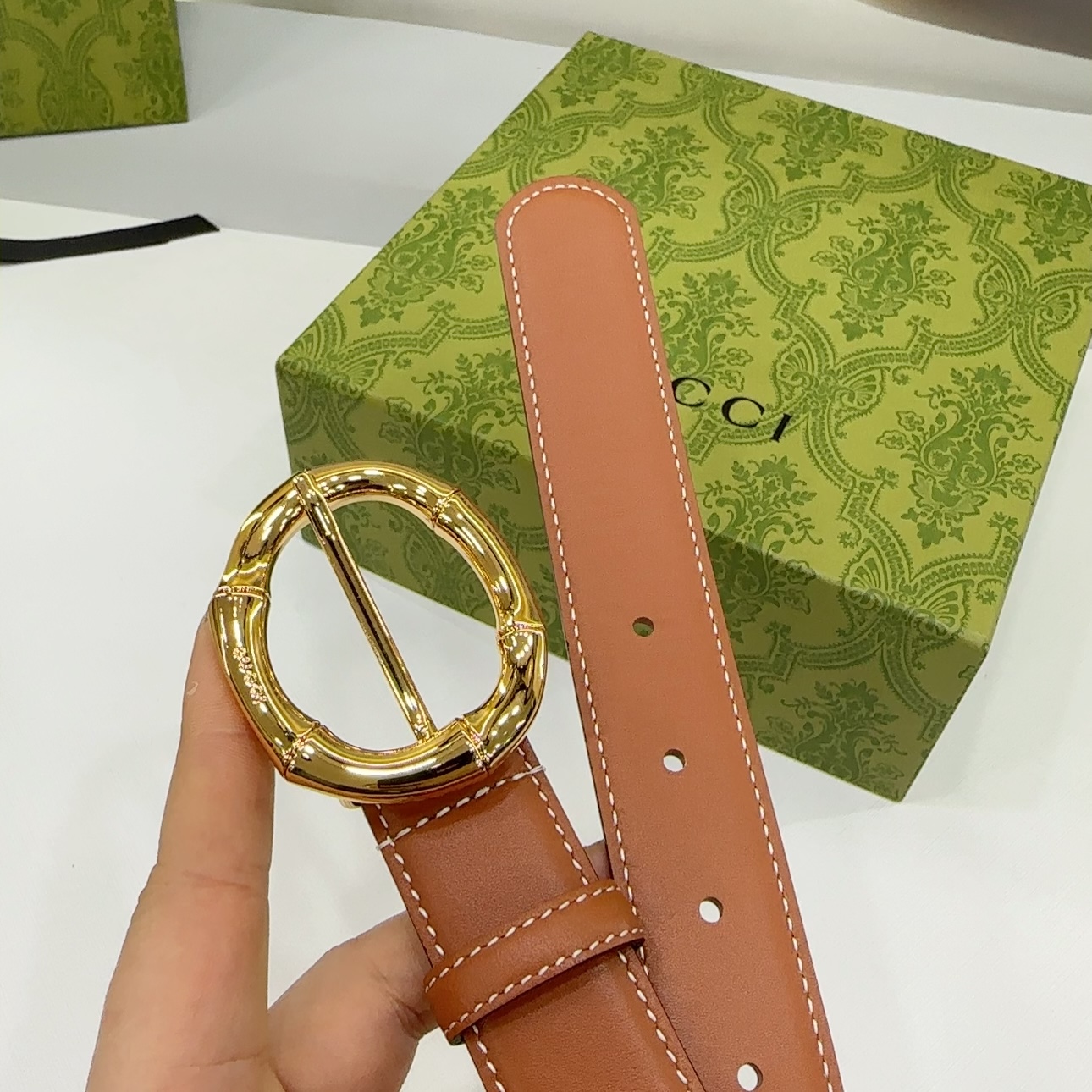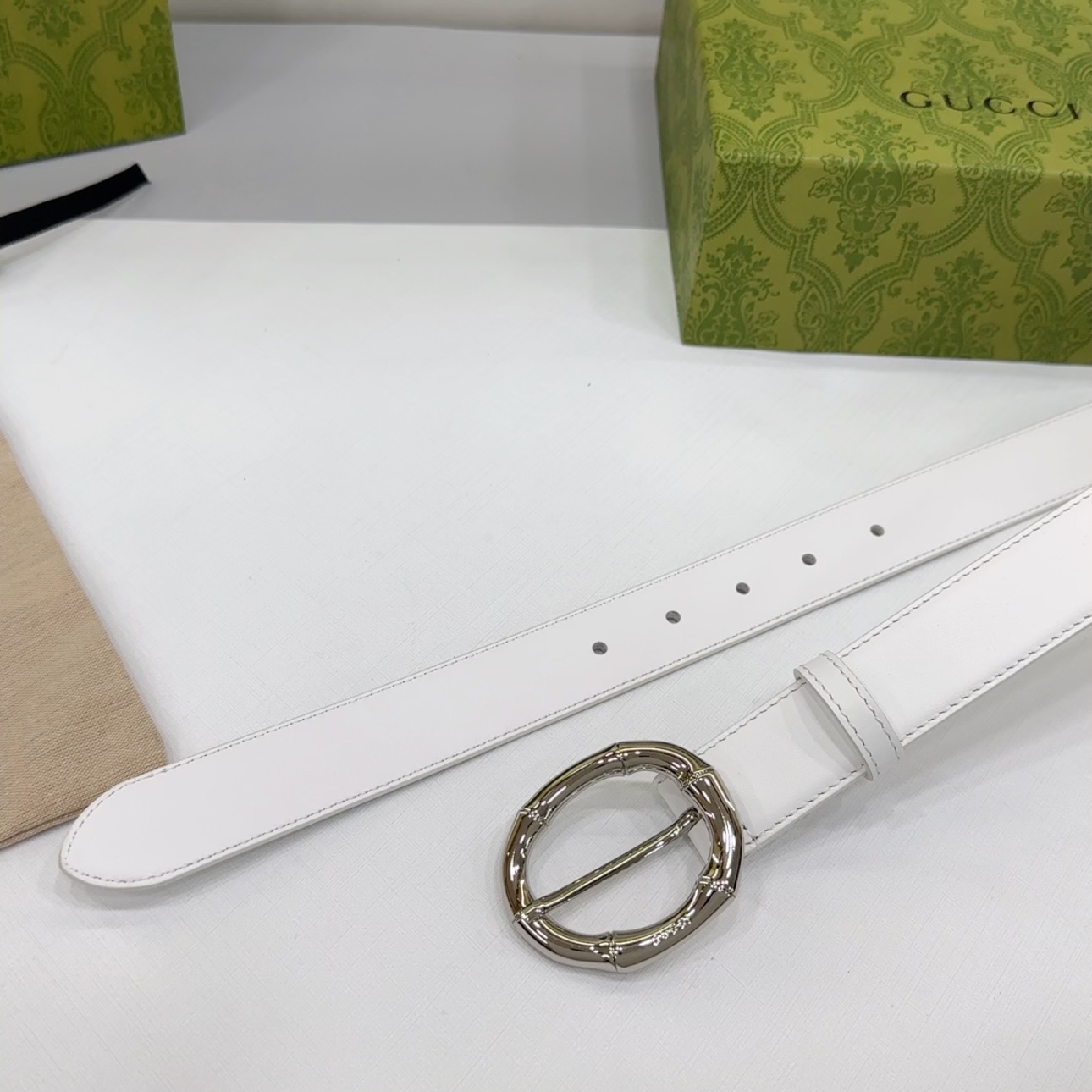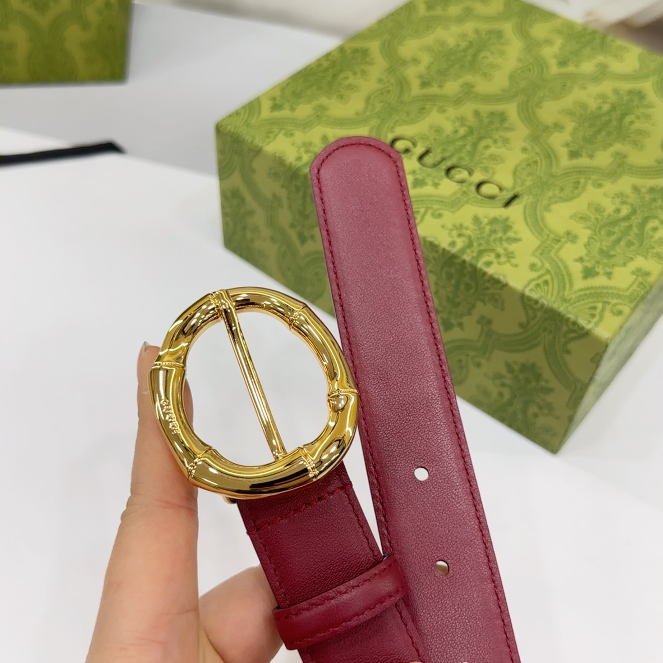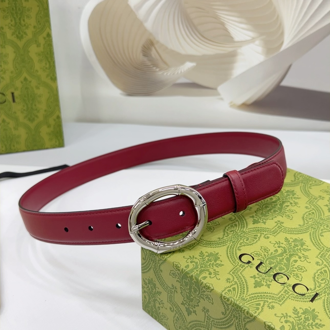 Gucci Women's Round Bamboo Buckle Belt In Black/Red/White/Brown/Coffee Smooth Calfskin With Gold/Silver Hardware 30mm