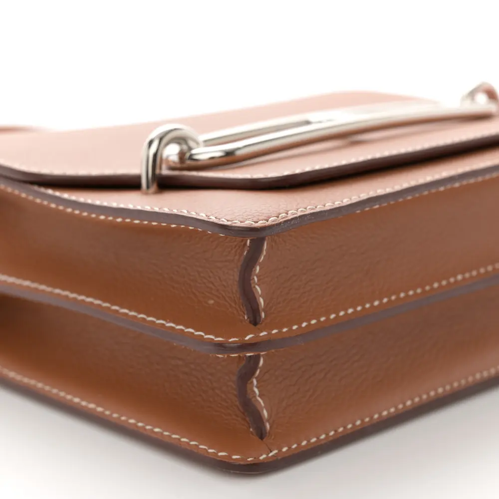 Lushentic Hermès Mini Sac Roulis Brown Evercolor Leather Palladium Silver Hardware