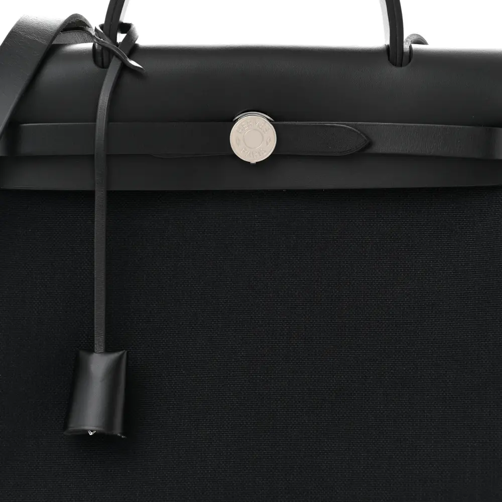 Hermès Herbag Zip PM 31 Black Military Toile & Vache Hunter Leather Palladium Silver Hardware