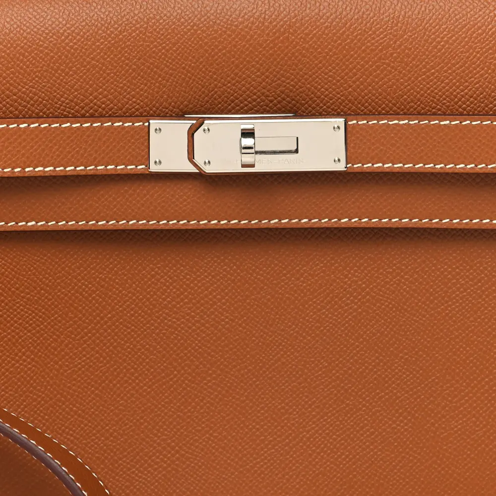 Hermès Kelly Dépêches 25 Pouch Brown Epsom Leather Silver Hardware
