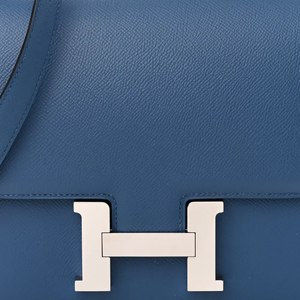 Hermès Constance Verso 24 Bleu Agate / Gris Mouette Epsom Leather Palladium Silver Hardware