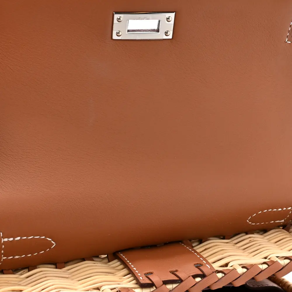 Hermès Picnic Mini Kelly 20 Naturel/Brown Wicker & Swift Leather Palladium Silver Hardware