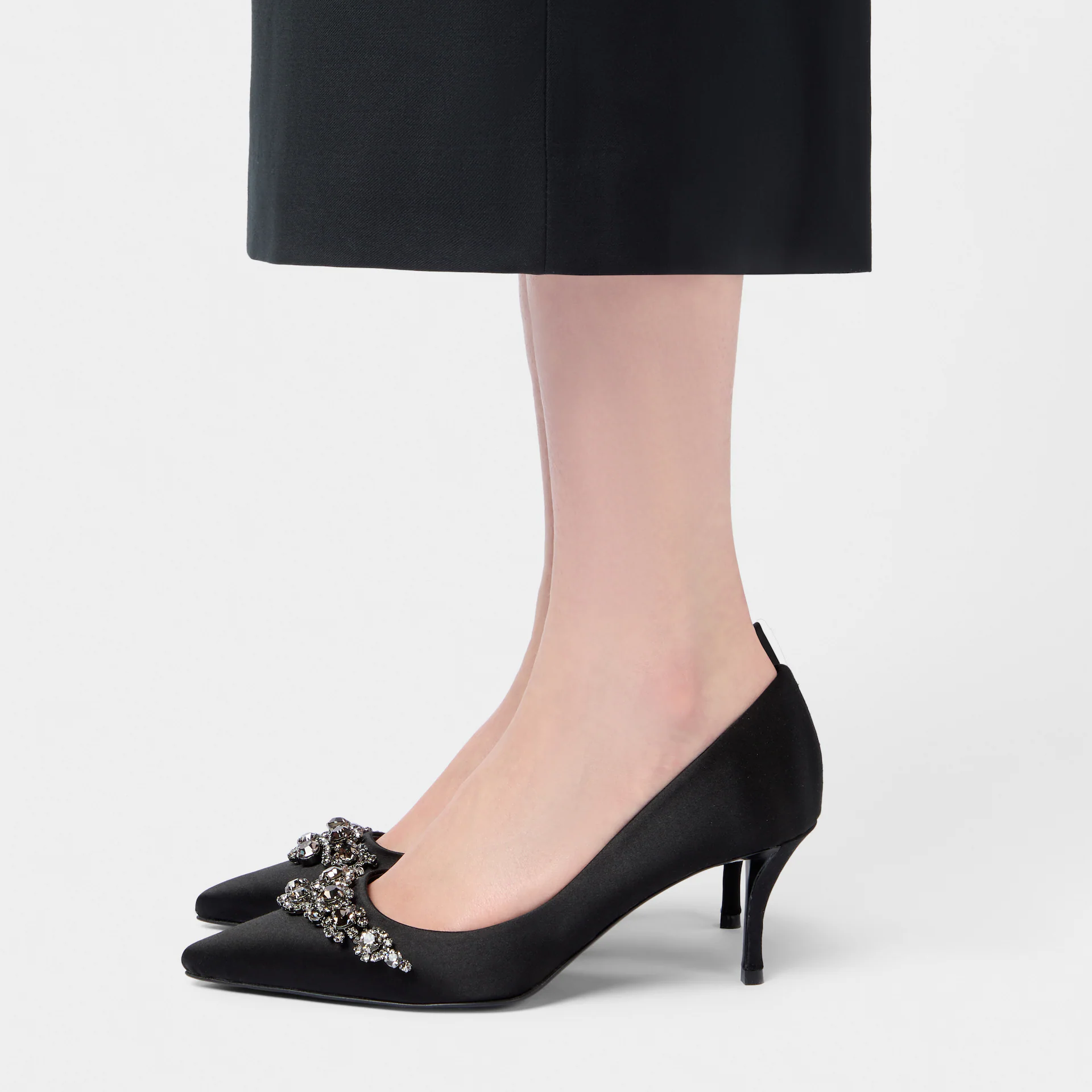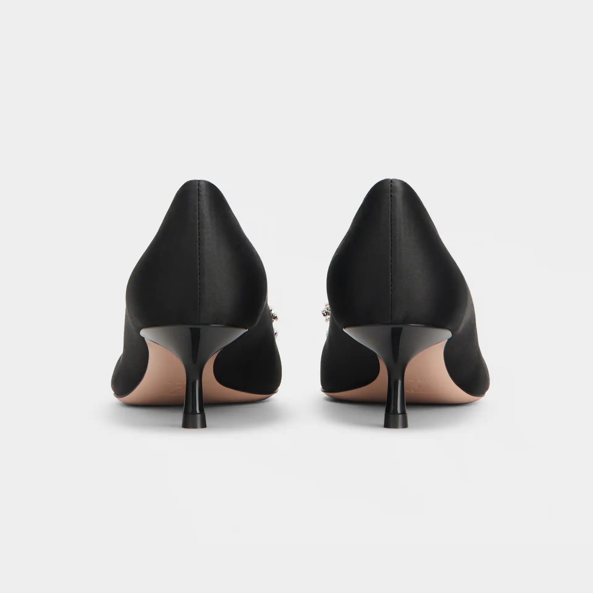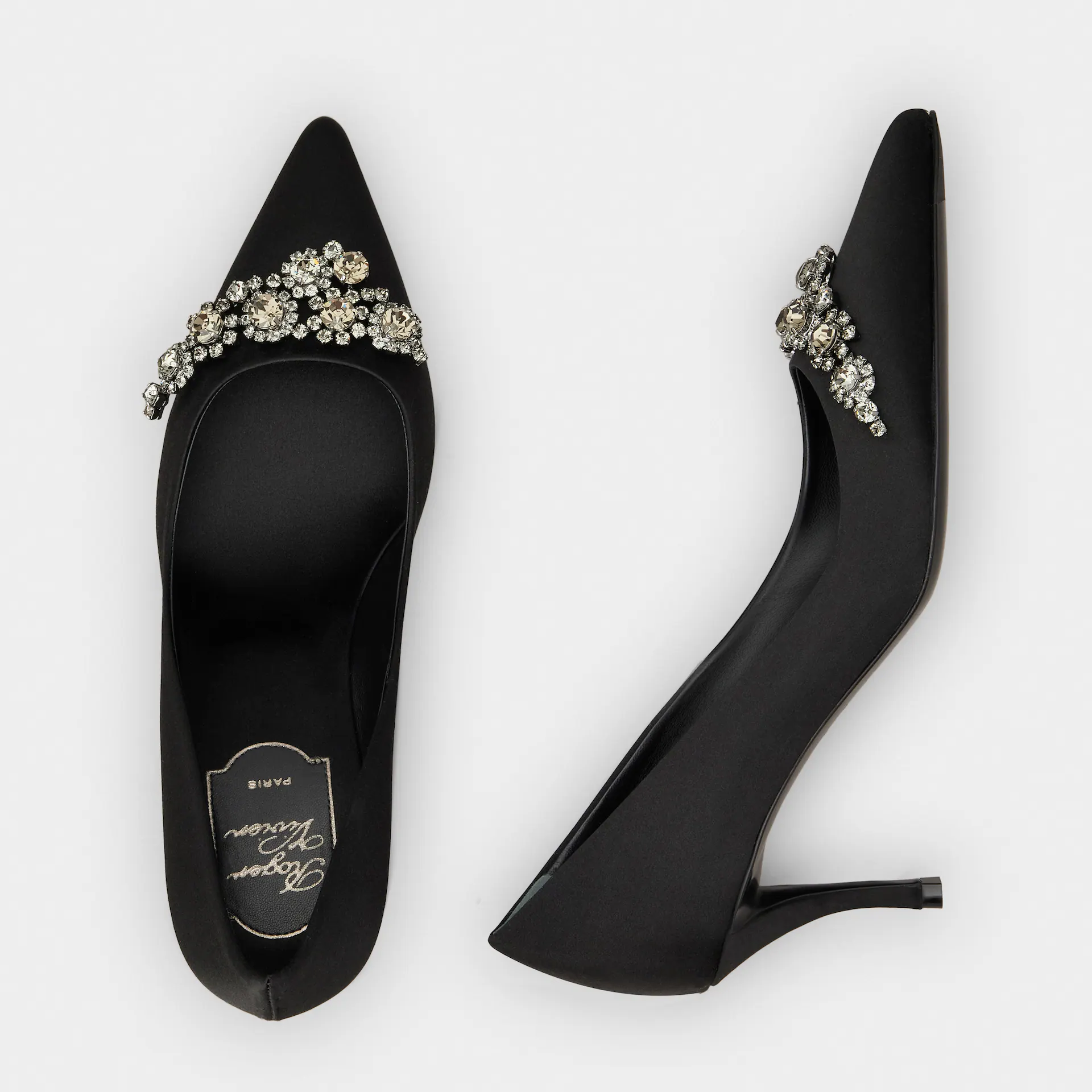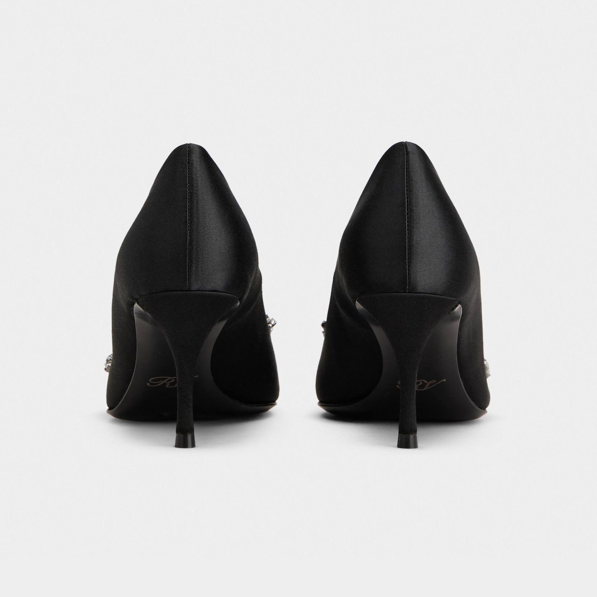 Roger Vivier Efflorescence Pumps High Heels In Black Satin With Crystal Buckle (Heel Height 4.5cm)