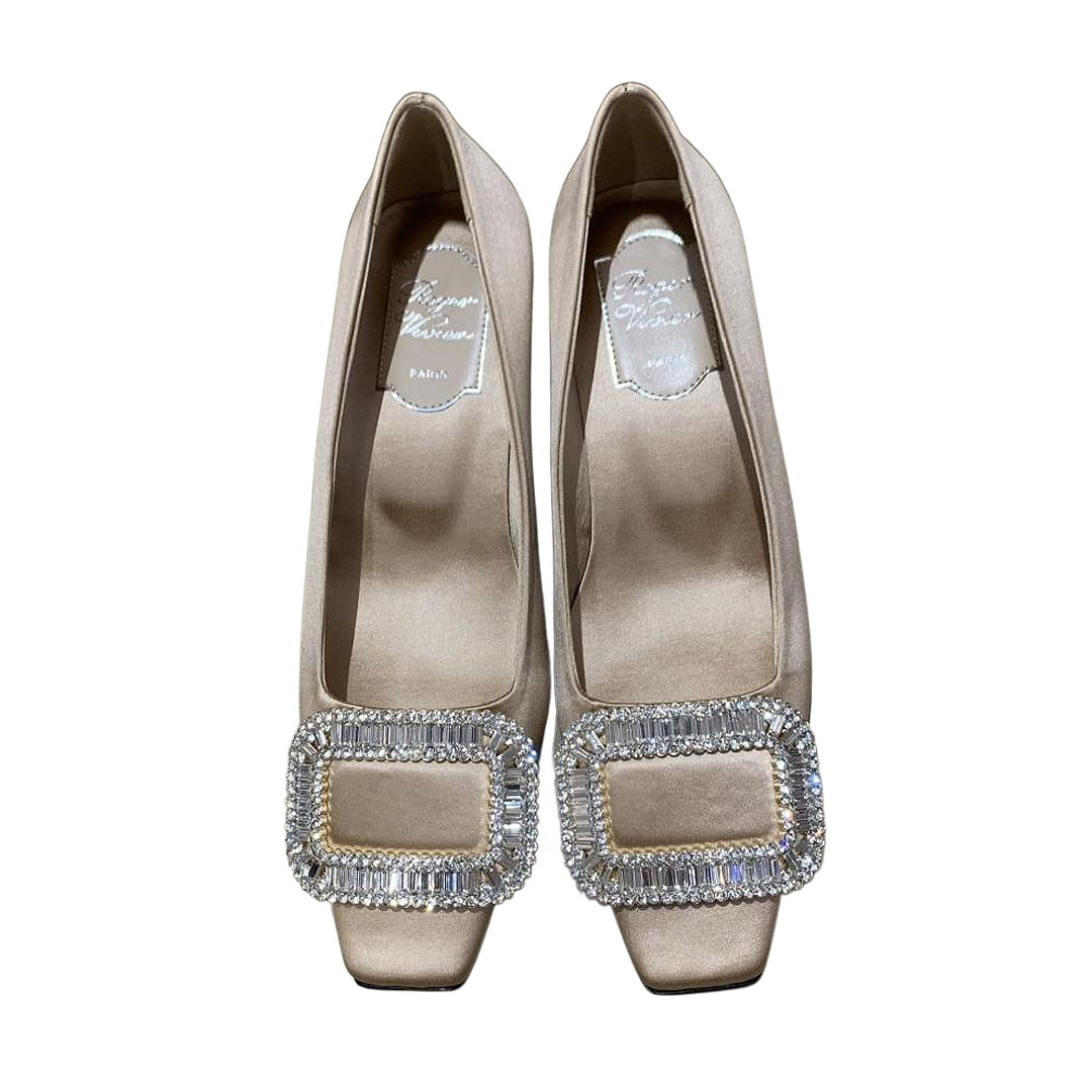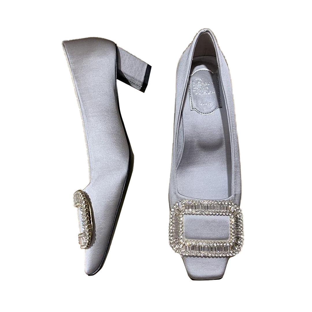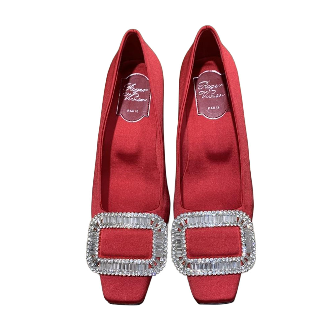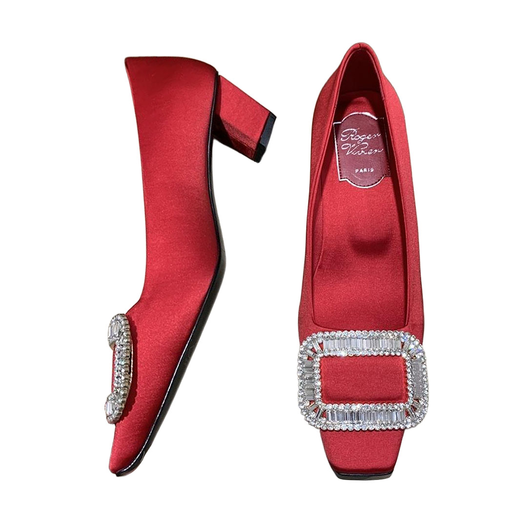 Roger Vivier Belle Vivier Pumps High Heels In Silver/White/Red/Beige Satin With Crystal Buckle (Heel Height 4.5cm)