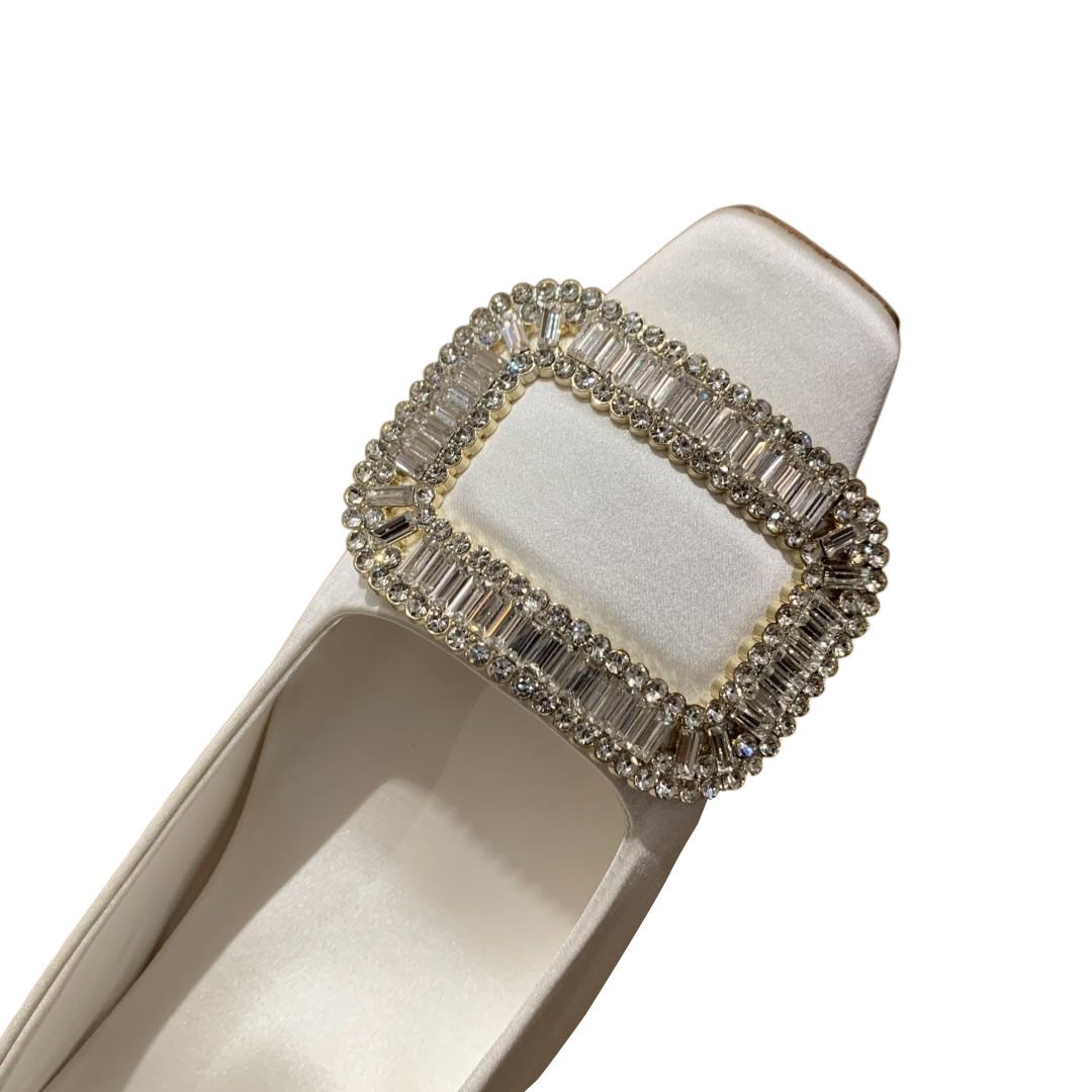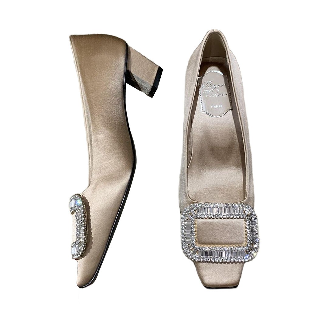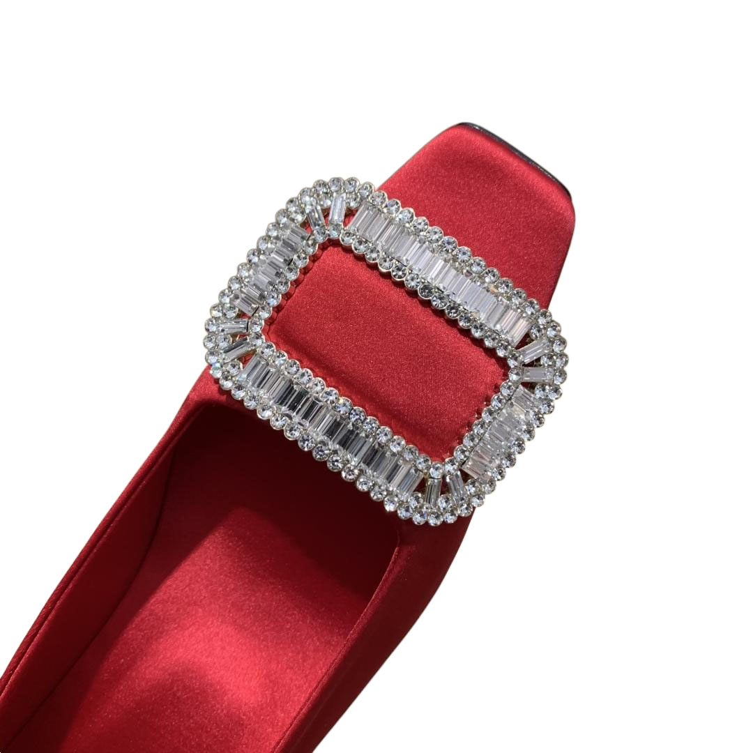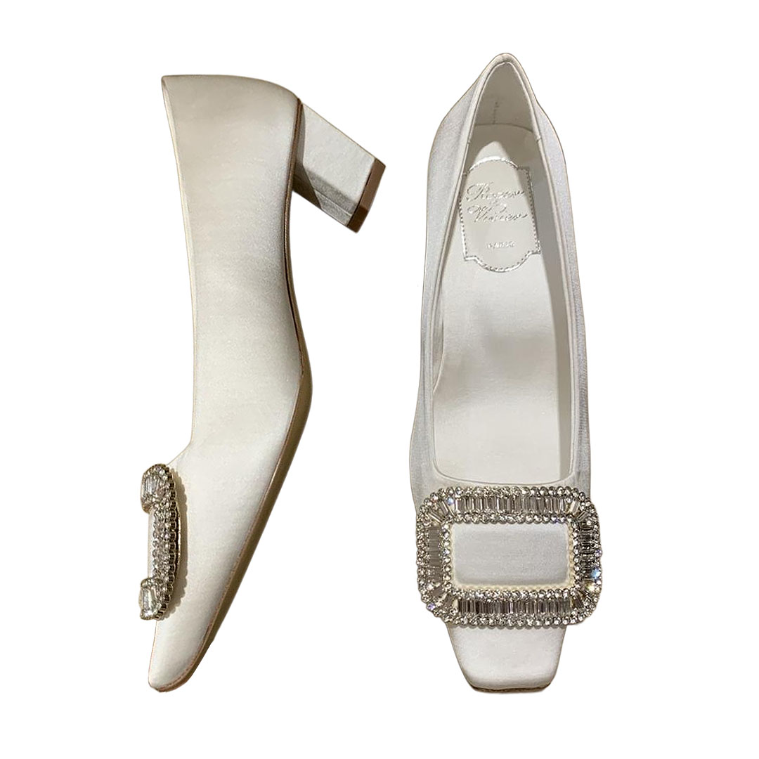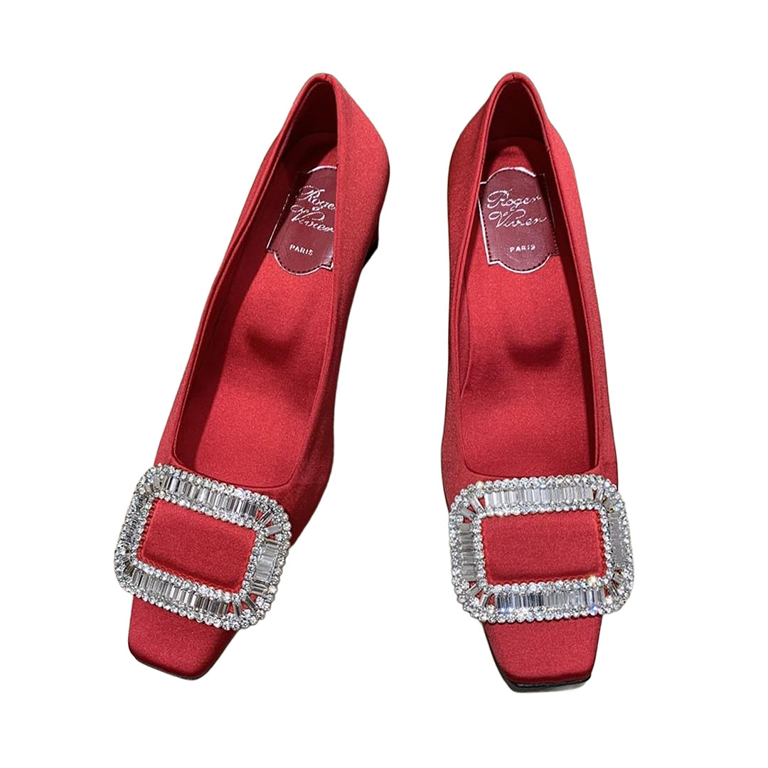 Roger Vivier Belle Vivier Pumps High Heels In Silver/White/Red/Beige Satin With Crystal Buckle (Heel Height 4.5cm)